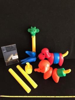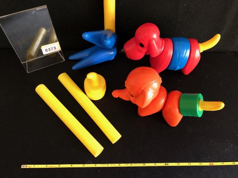 Vintage Plastic Stacking Toys Elephant Giraffe Red Dog