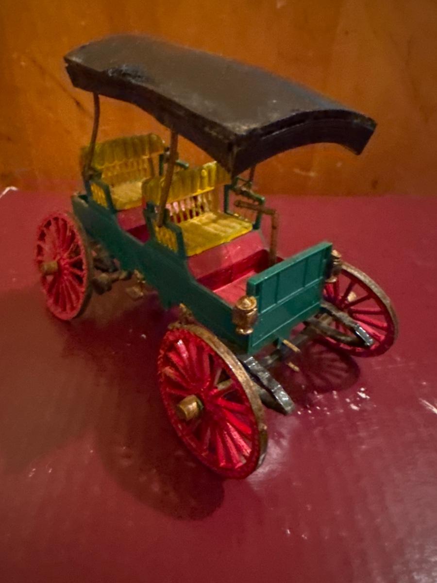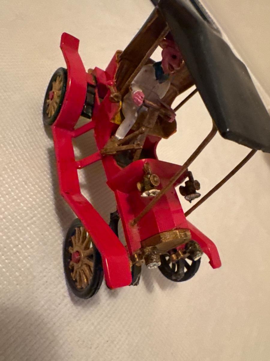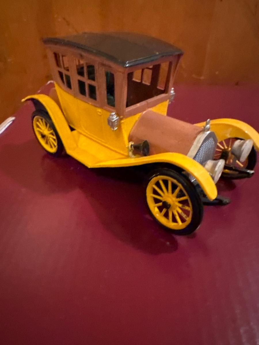 Includes 5 plastic vintage toy cars. Made more for displaying vs playing with them. Broken: the driver is unhooked from the steering column on the small yellow car.