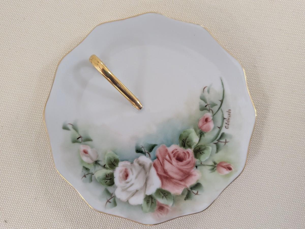 Vintage Coffee Saucer With Handle & Hand Painted Lefton China Leaf (LR)