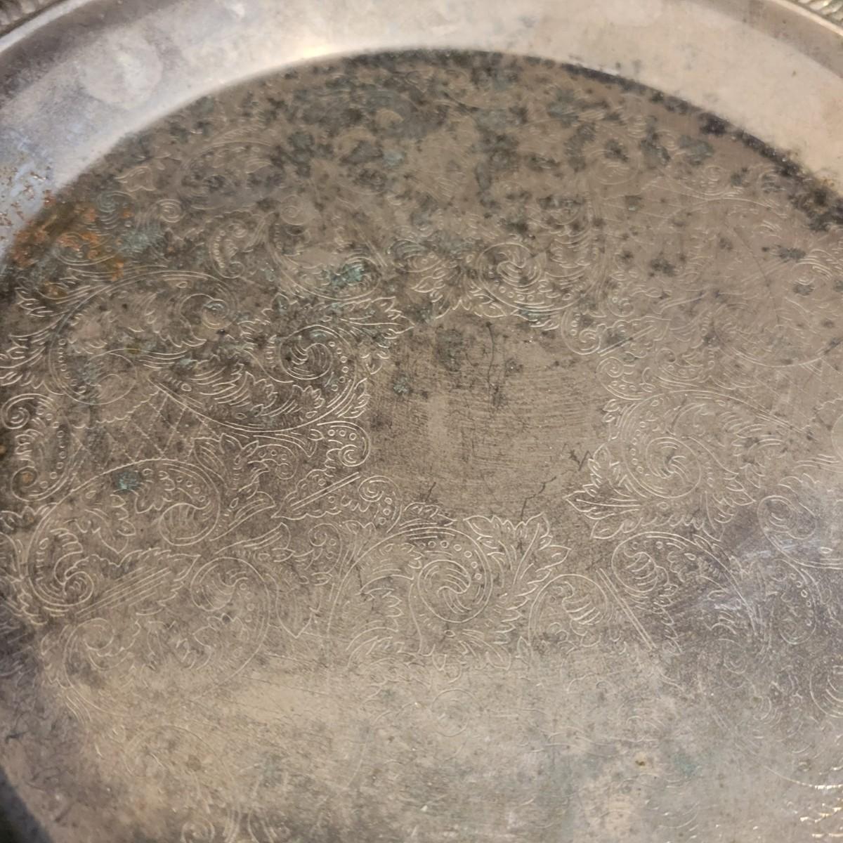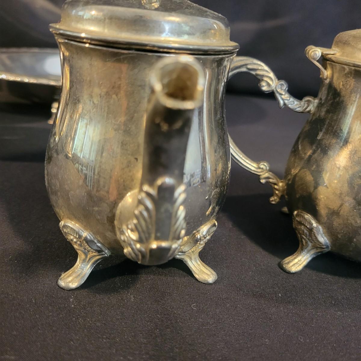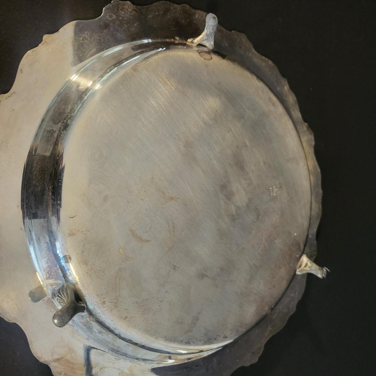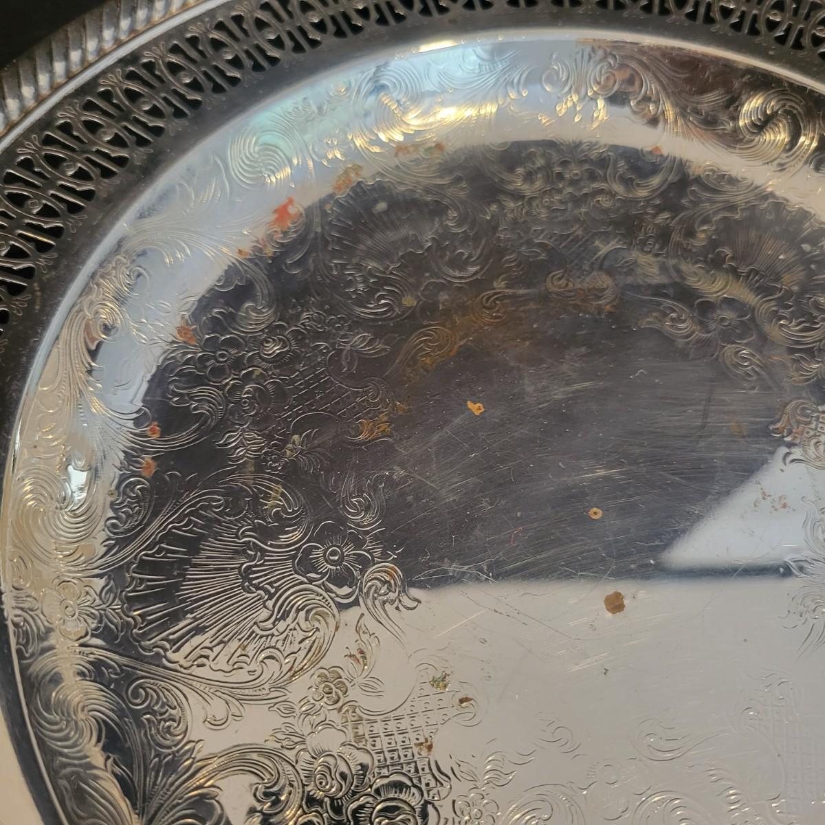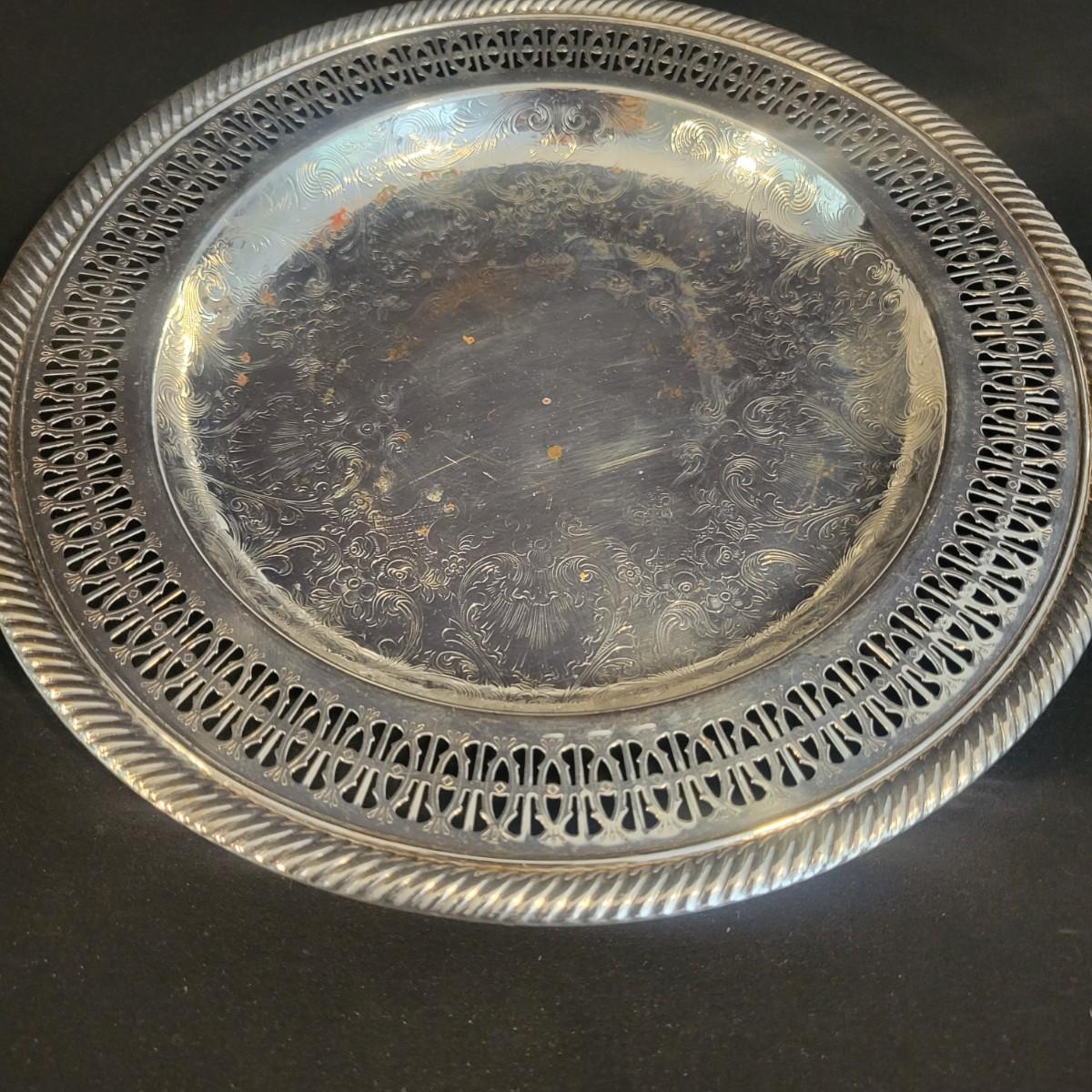 A large assortment of silver plated serving dishes, salt & pepper shakers, gravy boats, serving platters and trivets. Pieces range from good to fair in condition. All show some use and minor scratches. One small teapot is missing its handle. Some have a heavy patina and some show very little oxidation. See attached pictures for more detail. Largest serving platter measures approximately 14" x .5". Shipping available. Shipping can be costly, please call UPS store at 828-252-6930 for quote.