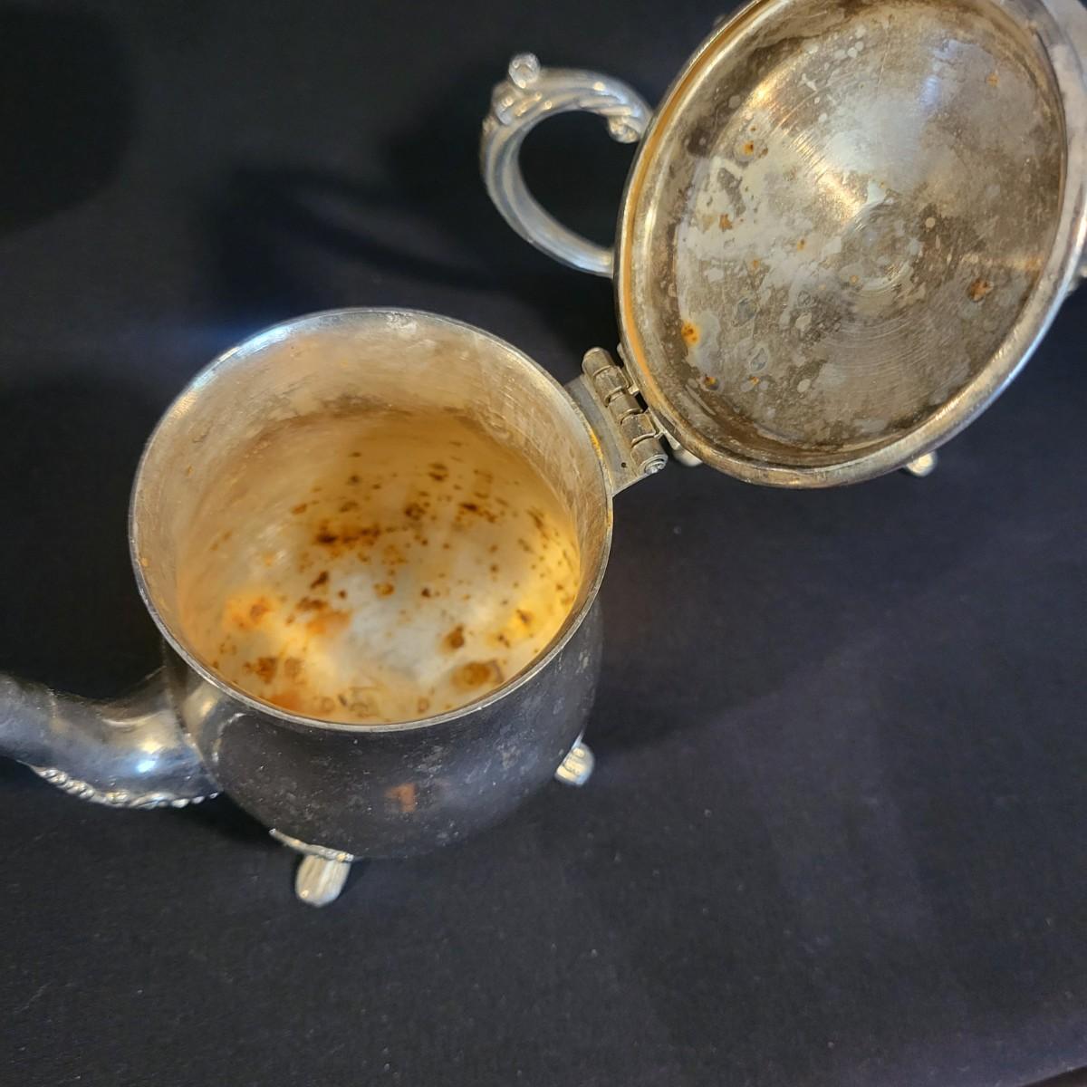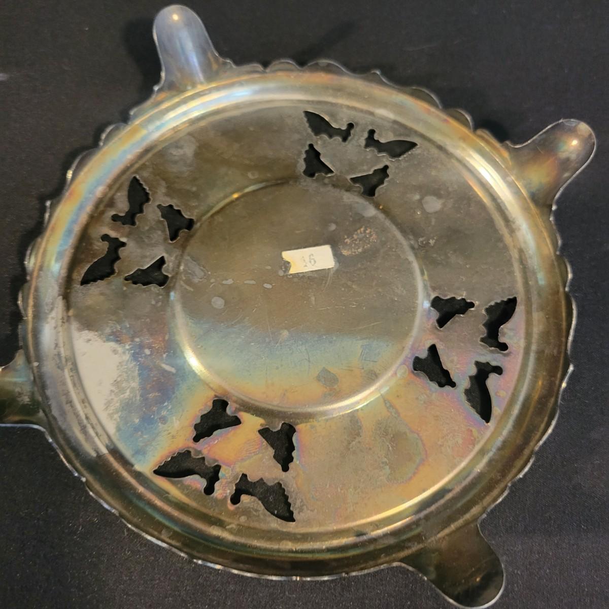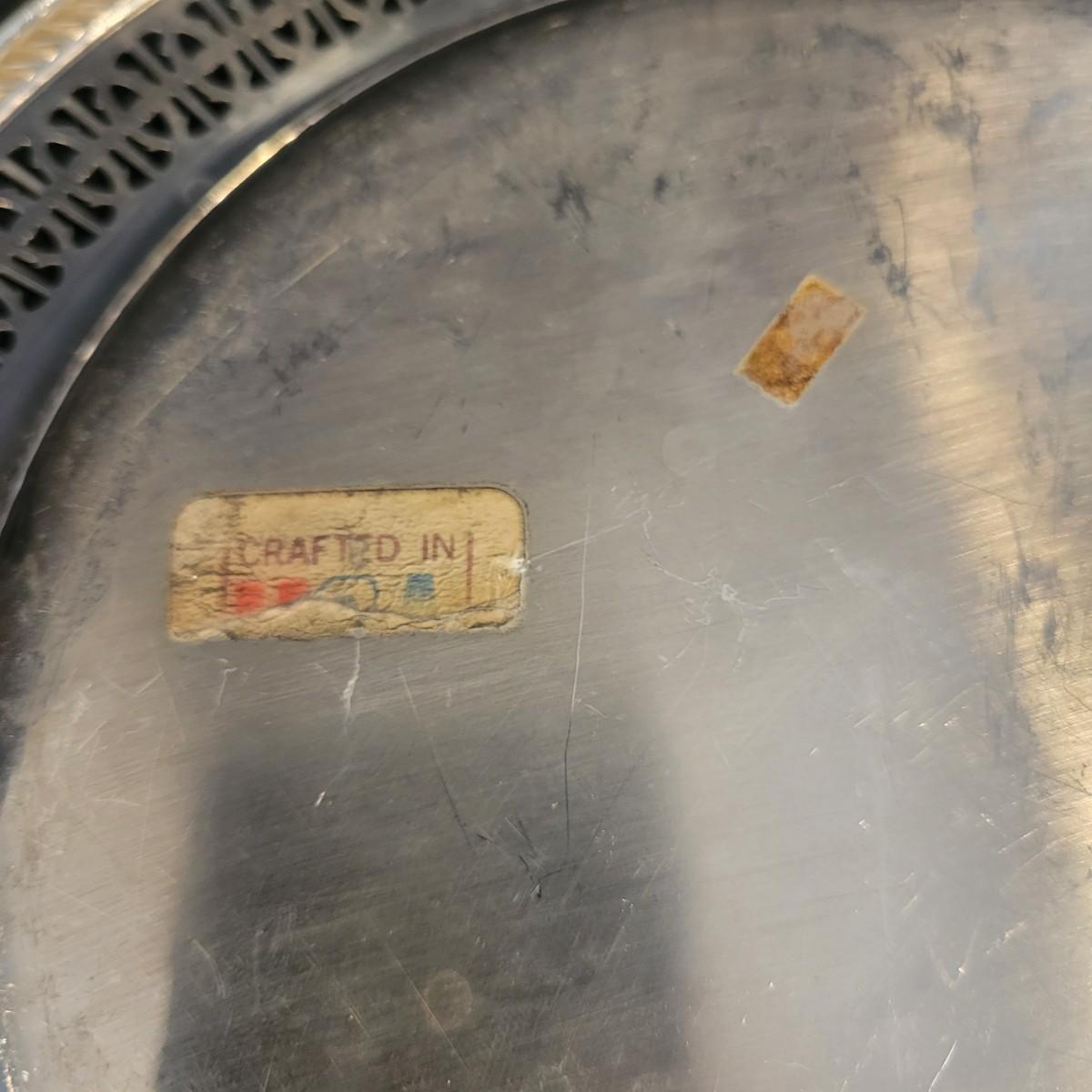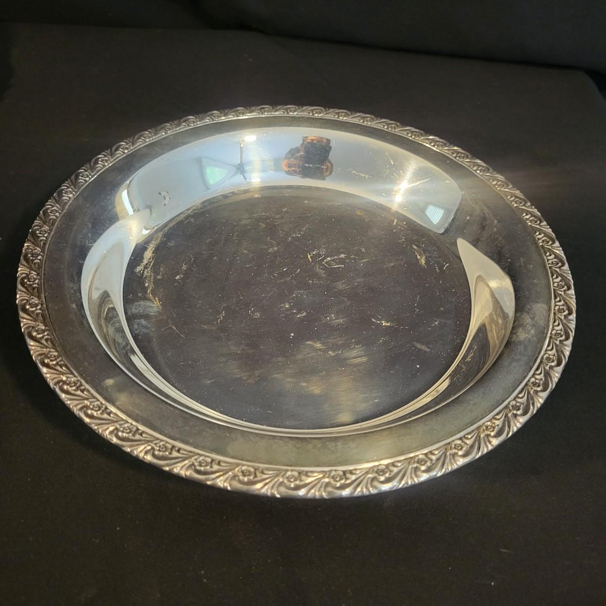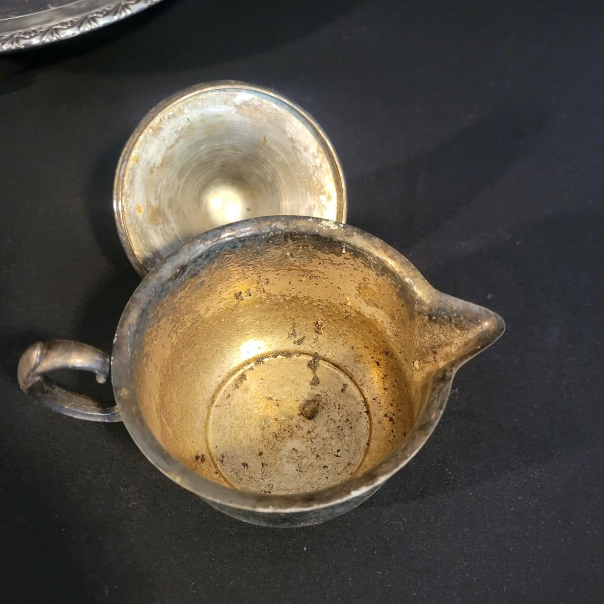 A large assortment of silver plated serving dishes, salt & pepper shakers, gravy boats, serving platters and trivets. Pieces range from good to fair in condition. All show some use and minor scratches. One small teapot is missing its handle. Some have a heavy patina and some show very little oxidation. See attached pictures for more detail. Largest serving platter measures approximately 14" x .5". Shipping available. Shipping can be costly, please call UPS store at 828-252-6930 for quote.