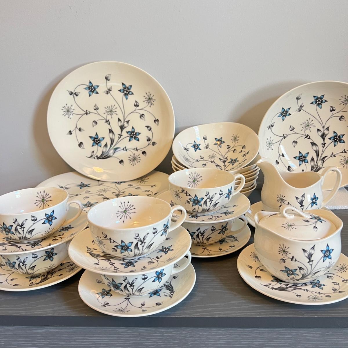 Vintage MCM Johnson Bros. Titania Blue Dinnerware 32 Pc Set