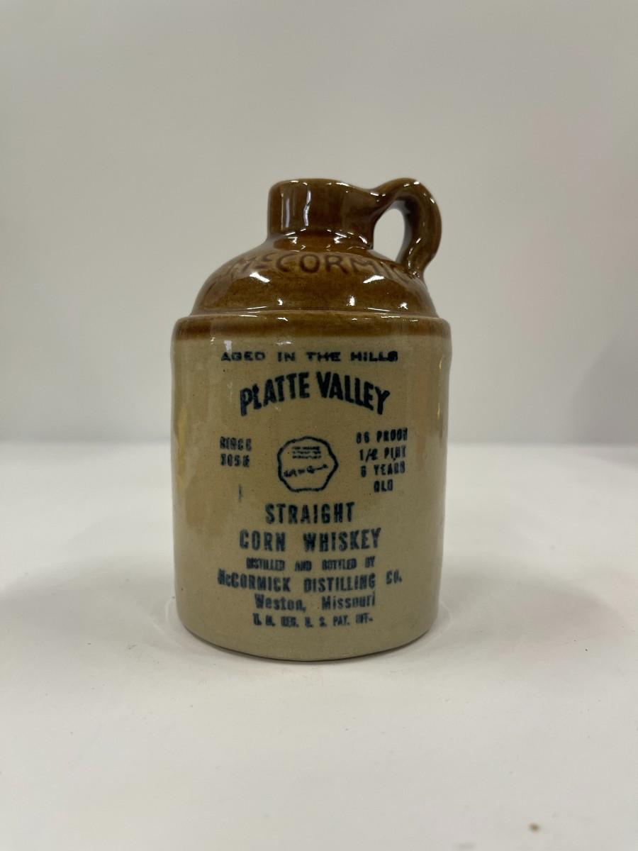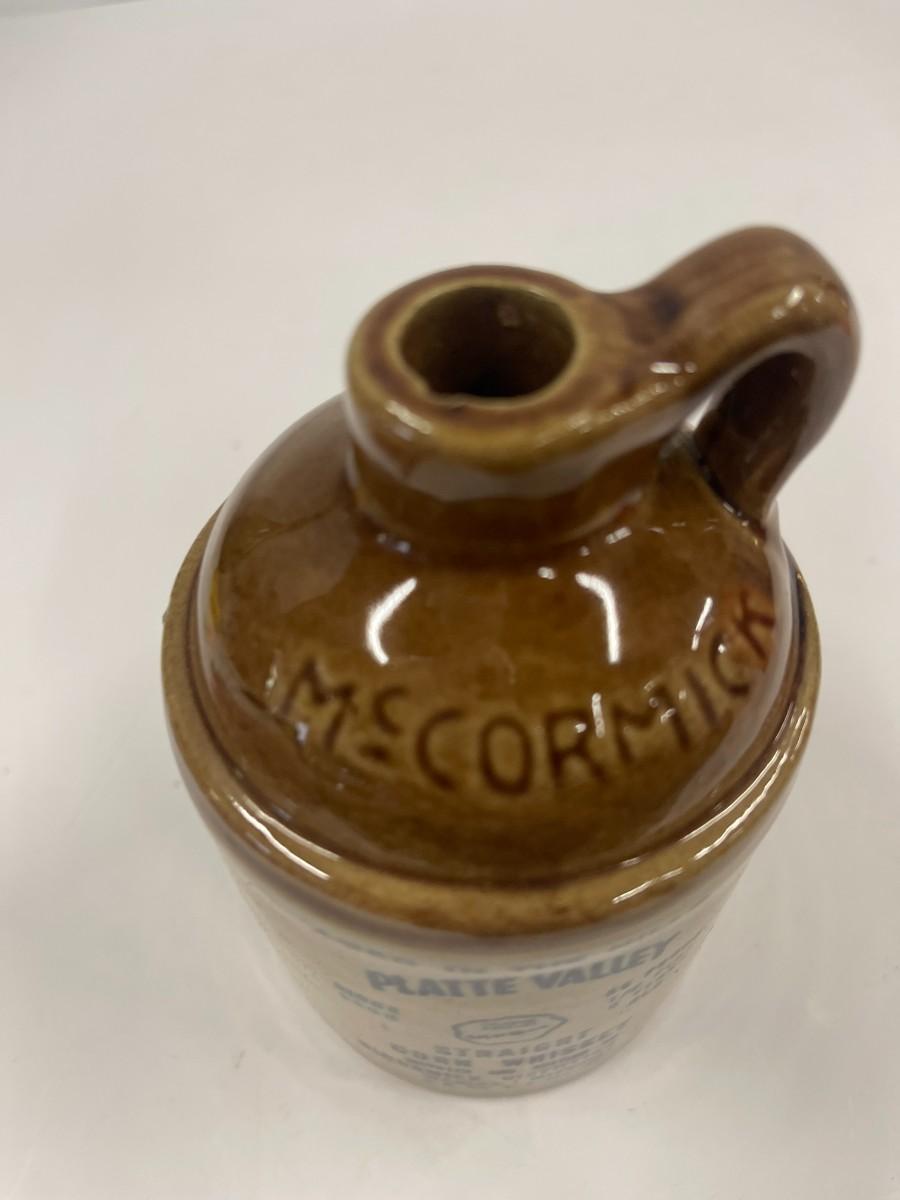 Vintage Platte Valley Straight Corn Whiskey McCormick Pottery Crock/Jug, 5", EMPTY