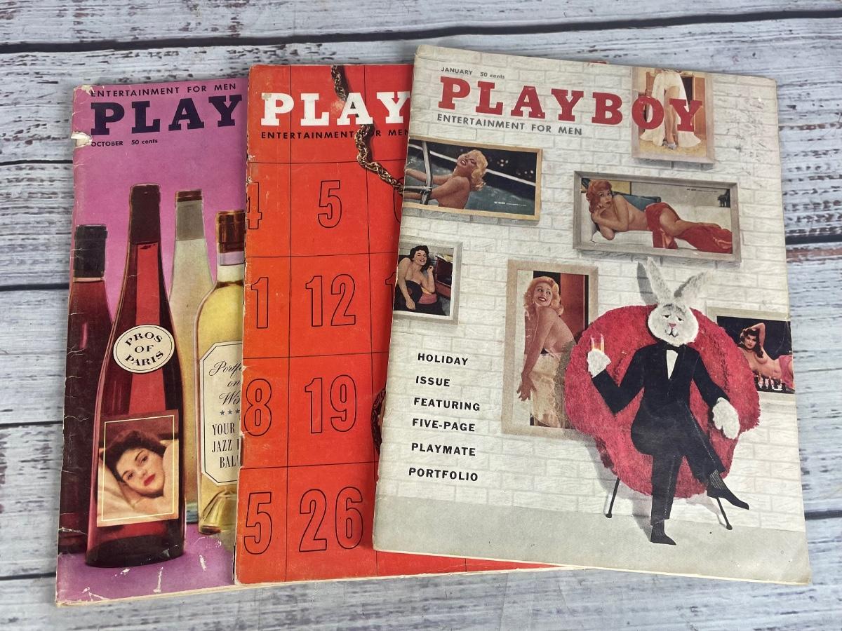 All three magazines are Playboy. This set of magazines are in decent condition. Some magazines have rips on it due to years of ownership.