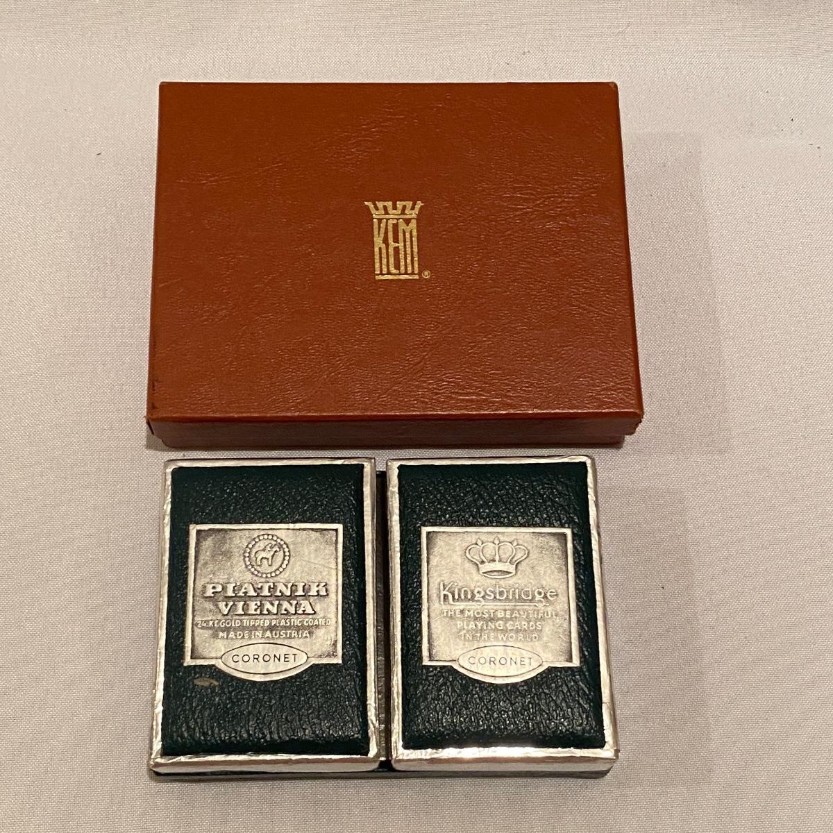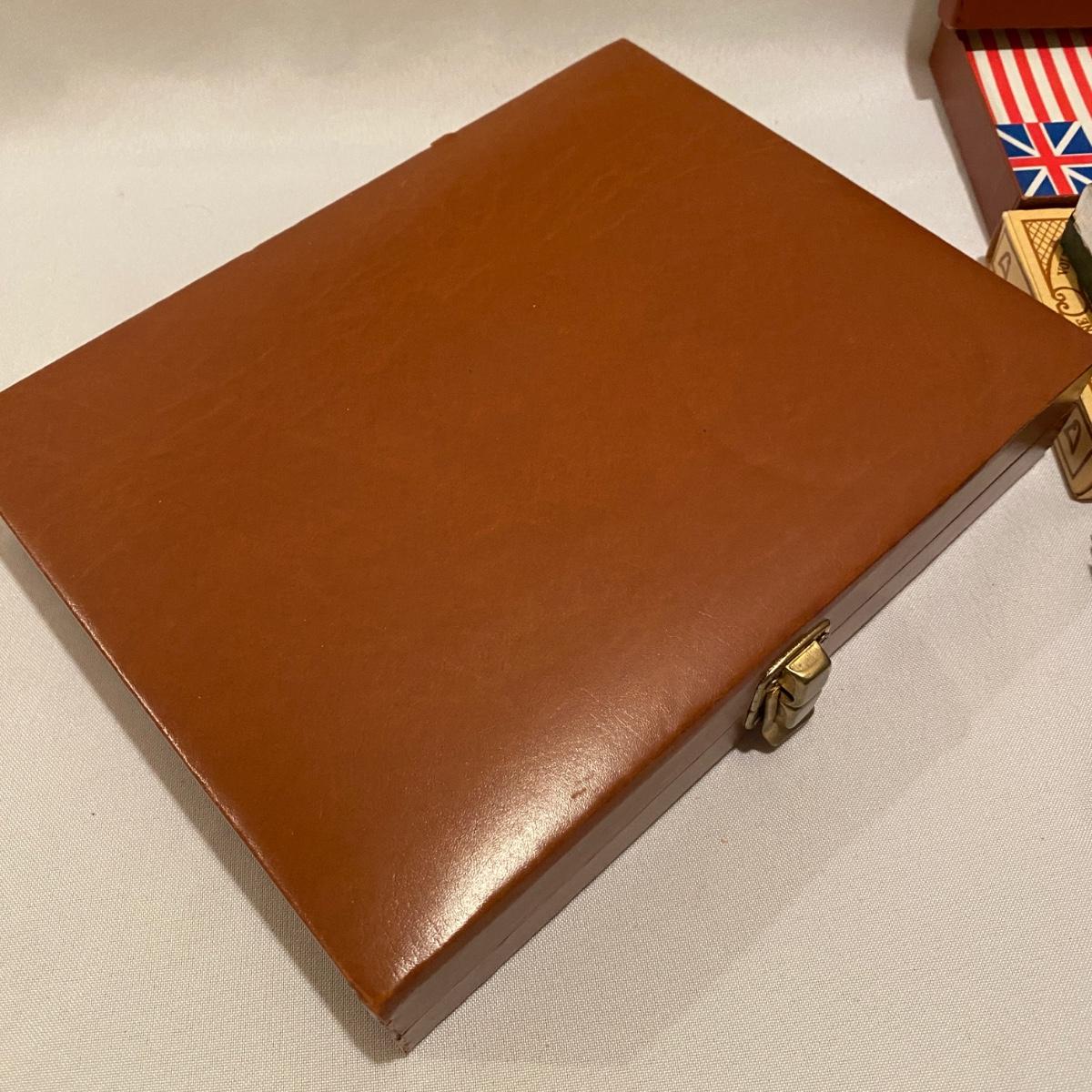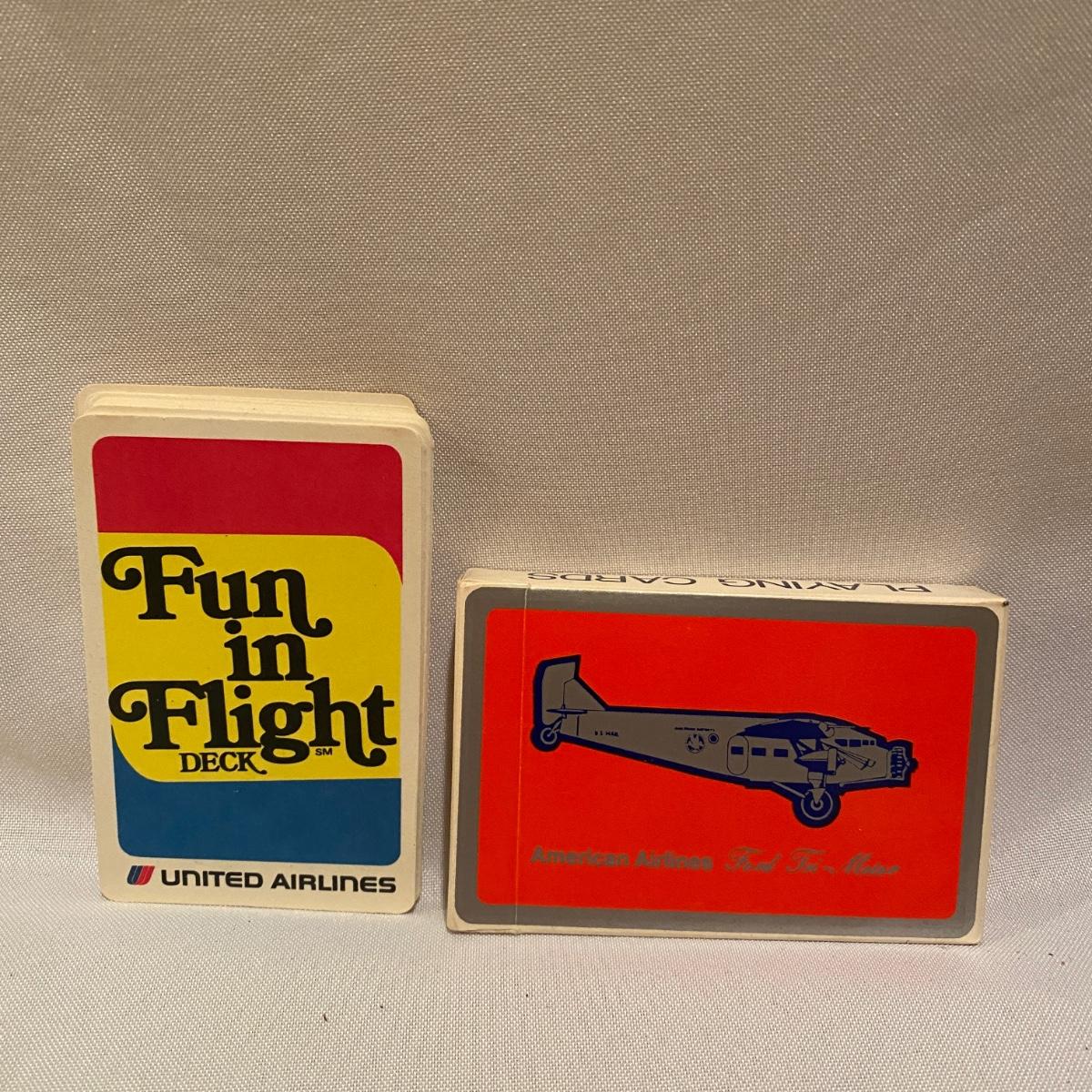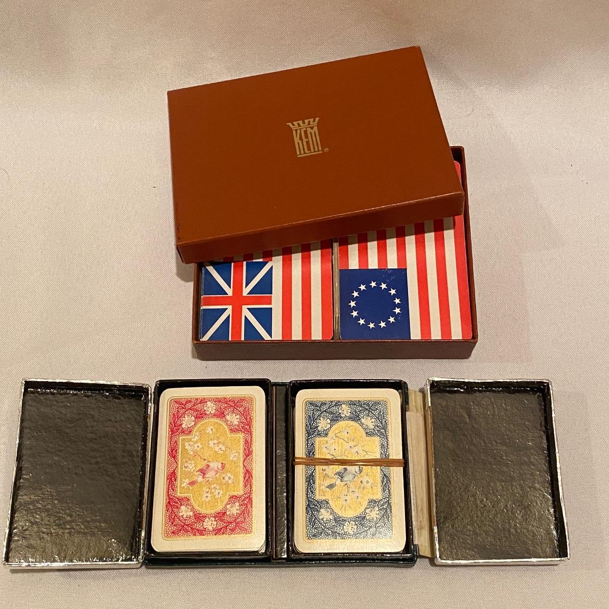 Almost 50 sets of playing cards. About half of which are unopened. Many old airline cards. Some from travels. Can not guarantee that the open ones are complete decks. Lot also includes a travel backgammon set, electric card shuffler (not tested), two mugs and two books. Shipping available.