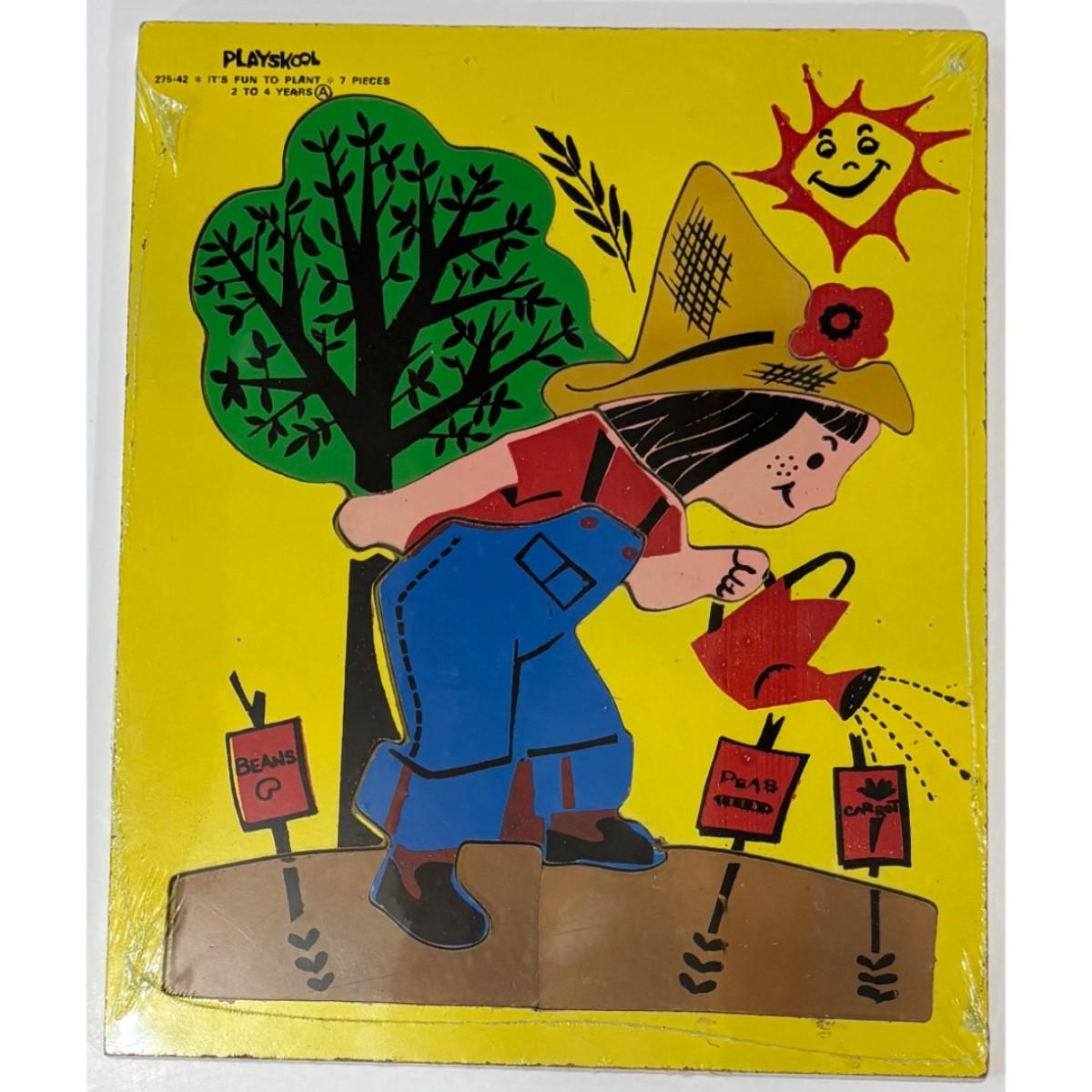 Vintage Playskool 275-42 It's Fun To Plant 7 Piece Wood Puzzle 2 to 4 Years