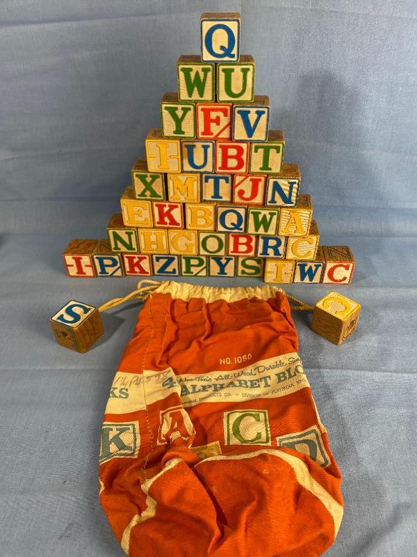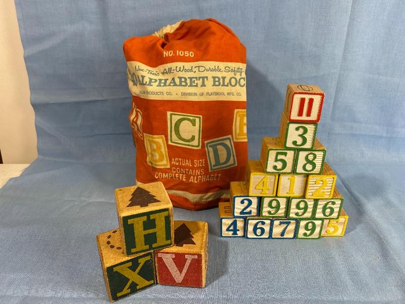 Vintage Playskool Blocks No. 1050 Bag 16 1” Blocks PaInted Blocks