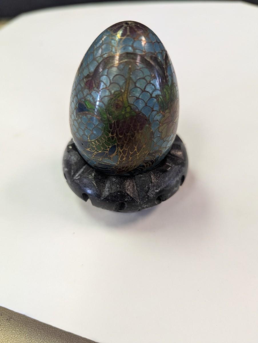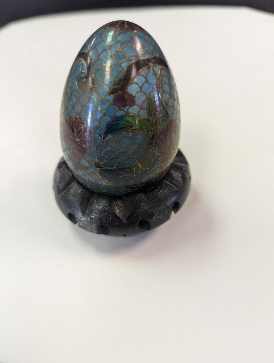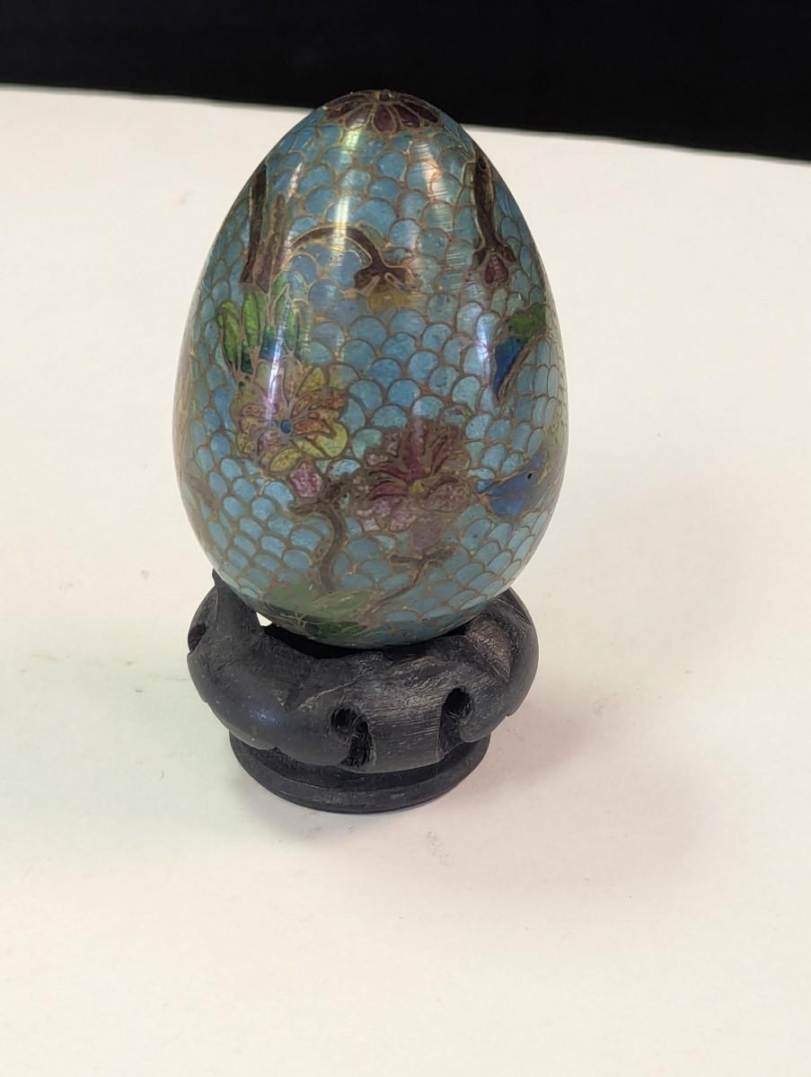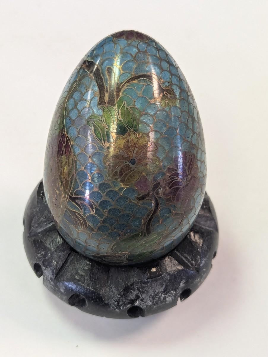 Vintage Plique a Jour Egg Figurine With Floral Design