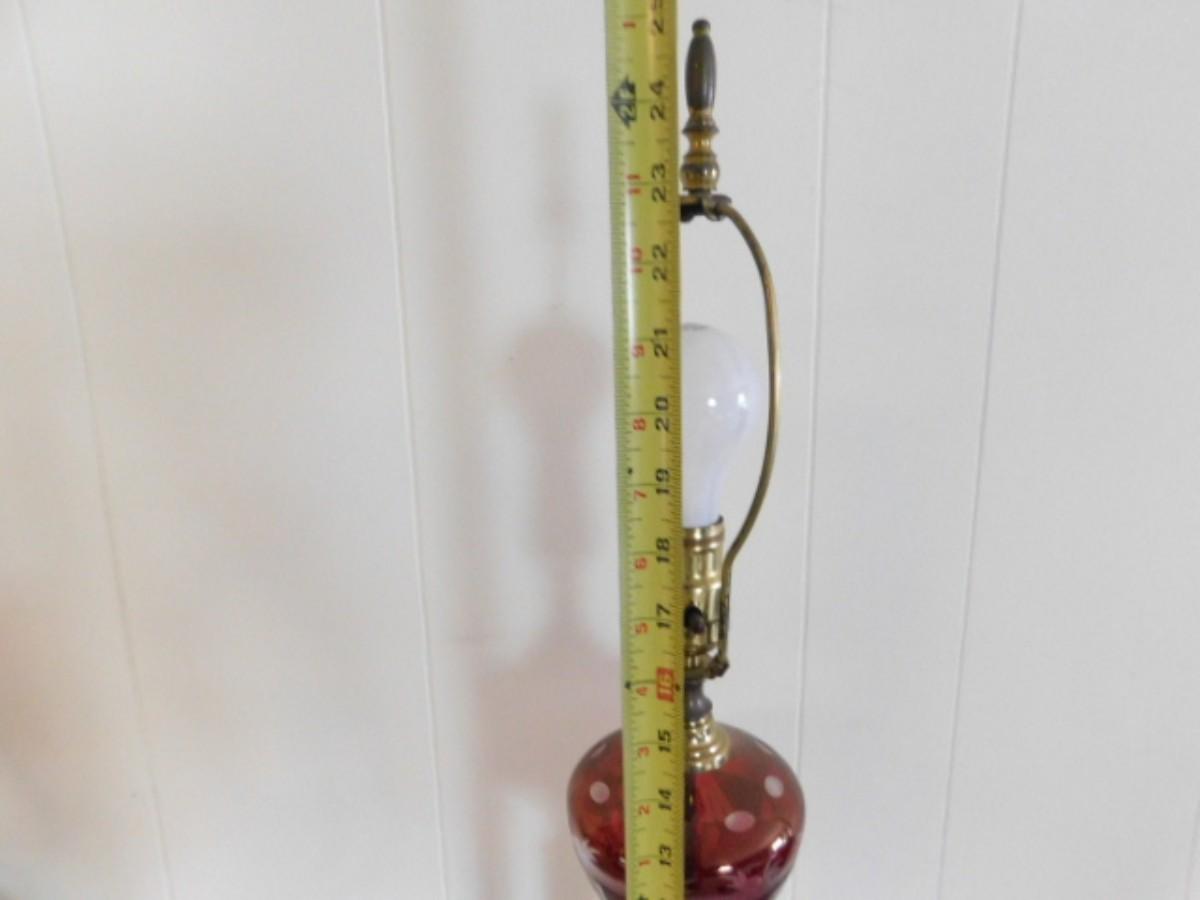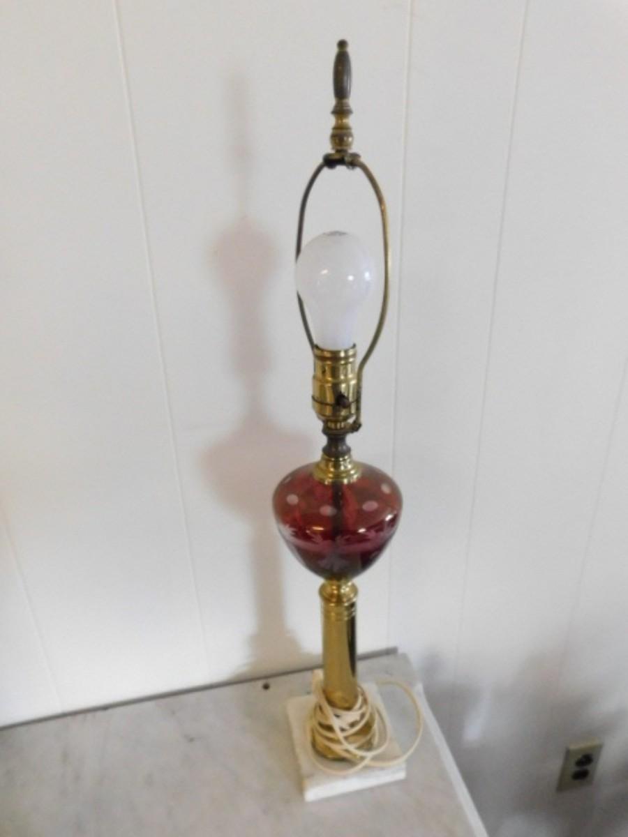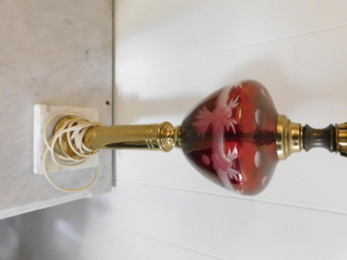 Vintage Plum Etched Glass Post Lamp with Brass Finish Pedestal  (L27)