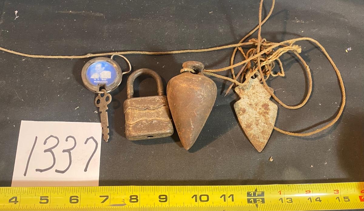 Vintage Plumb Bob and Lock and Key