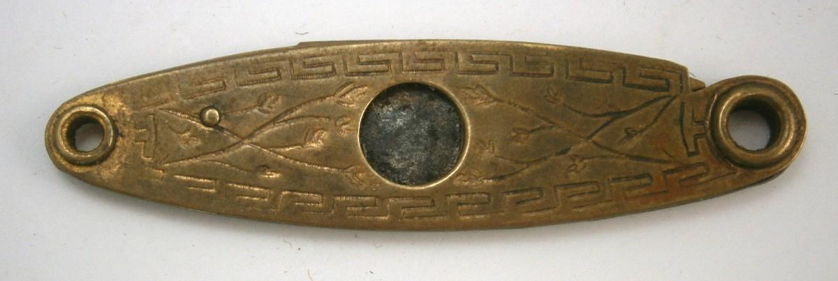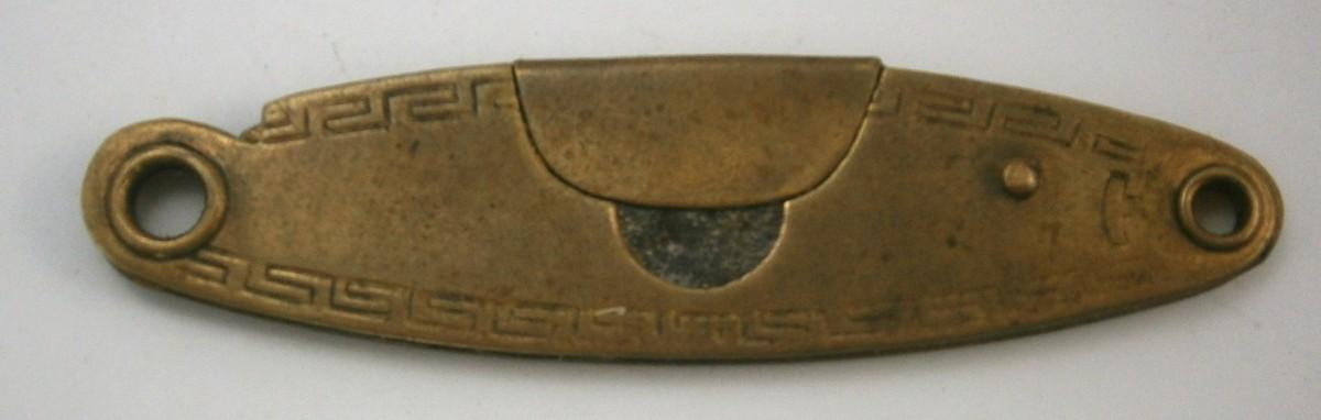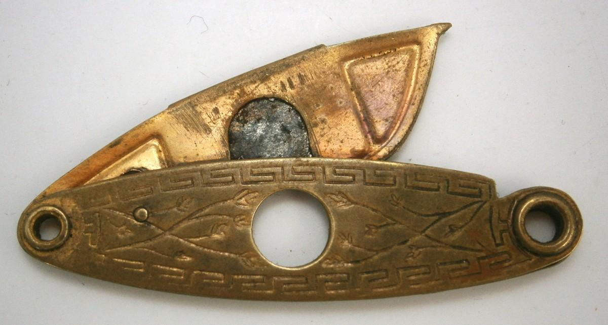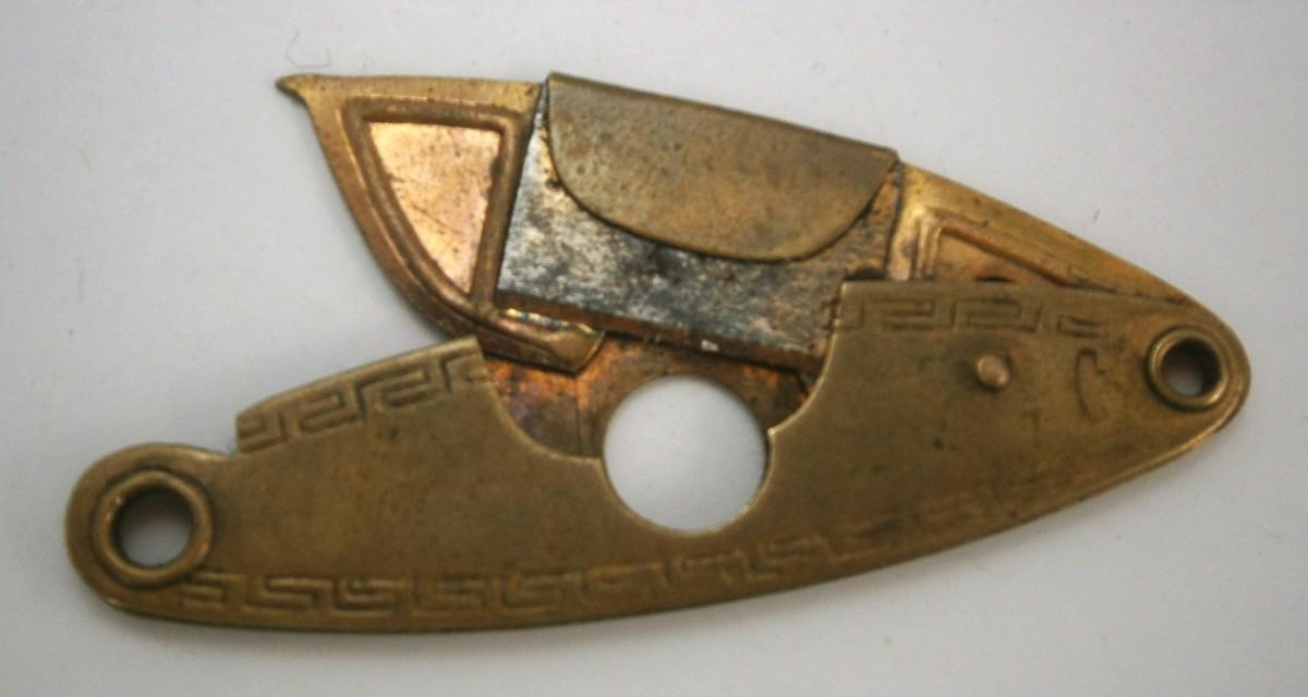 Vintage Pocket Cigar Cutter from the Early 1900's, 2 1/4 in. long, brass frame, for pocket, key chain, or as pocket watch fob.