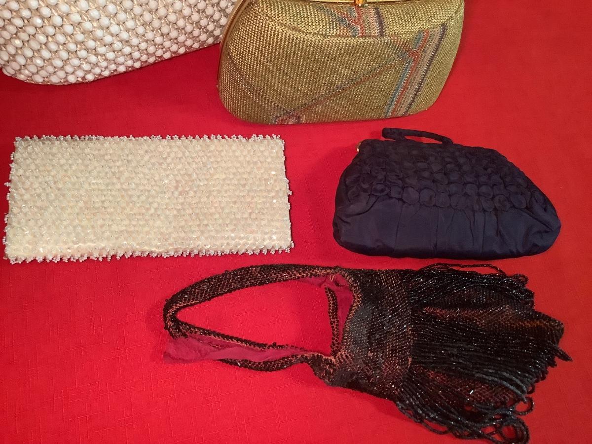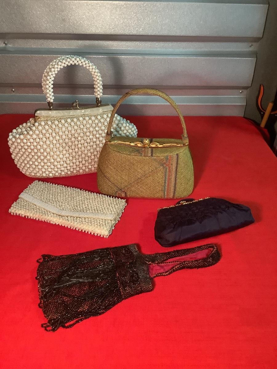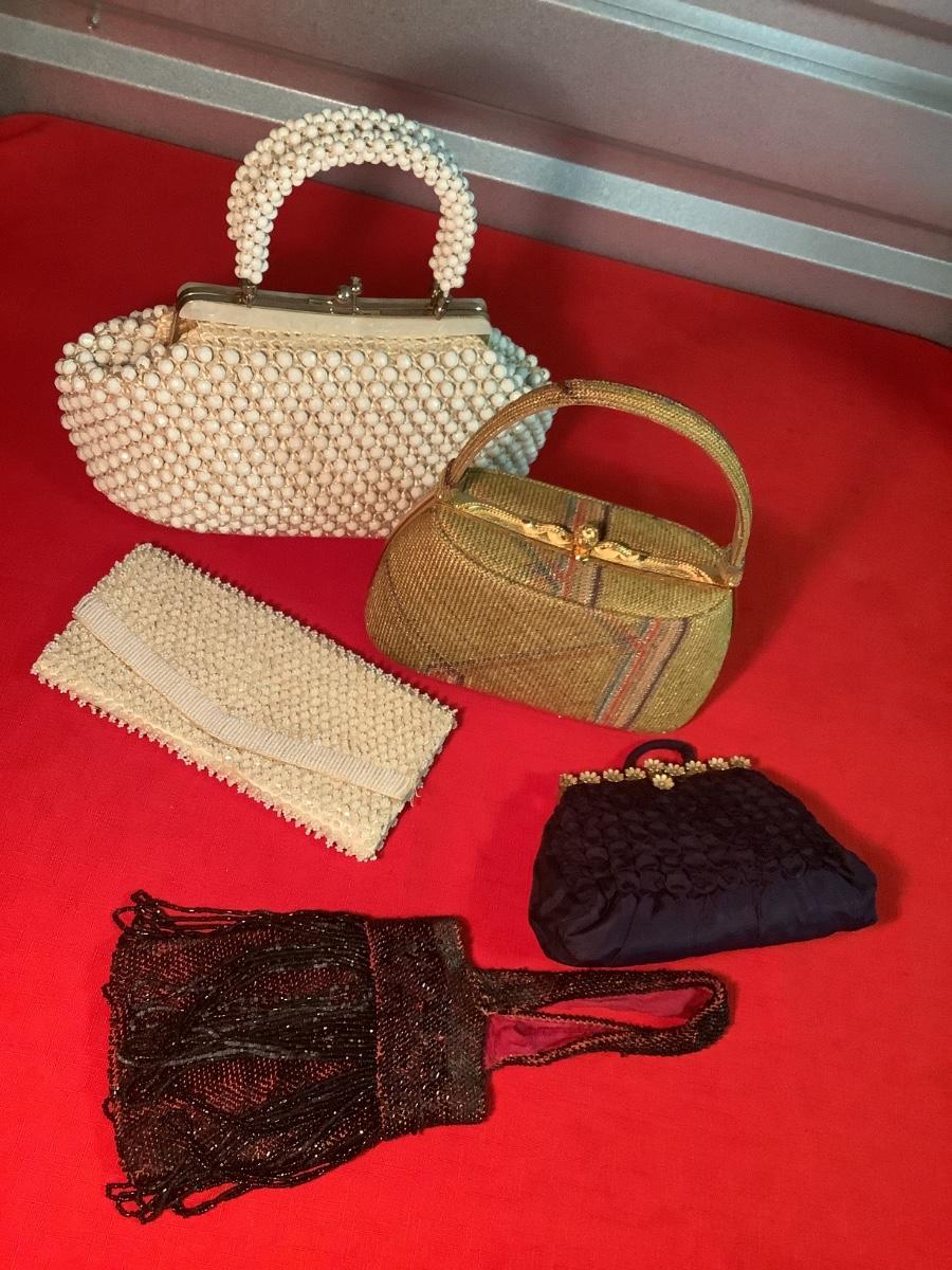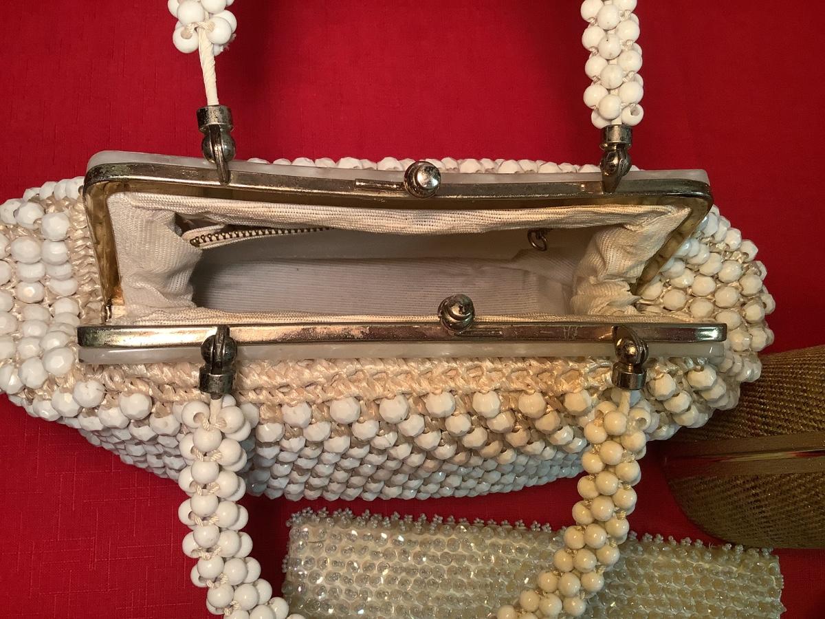 Vintage Pocketbooks-lot of 5- Japan White Lucite, Beaded, Crochet Raffia, Evening