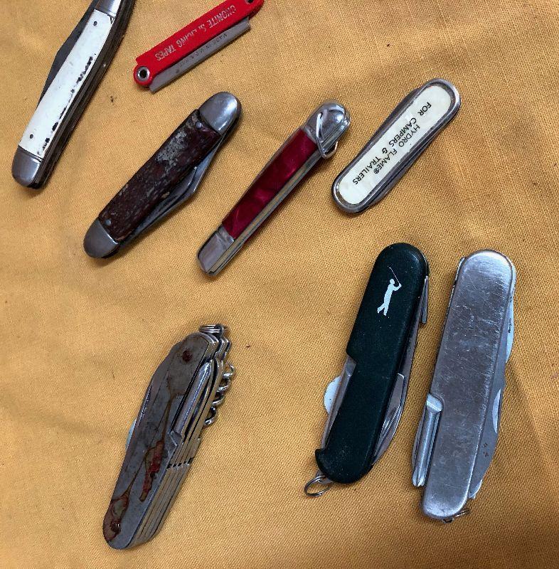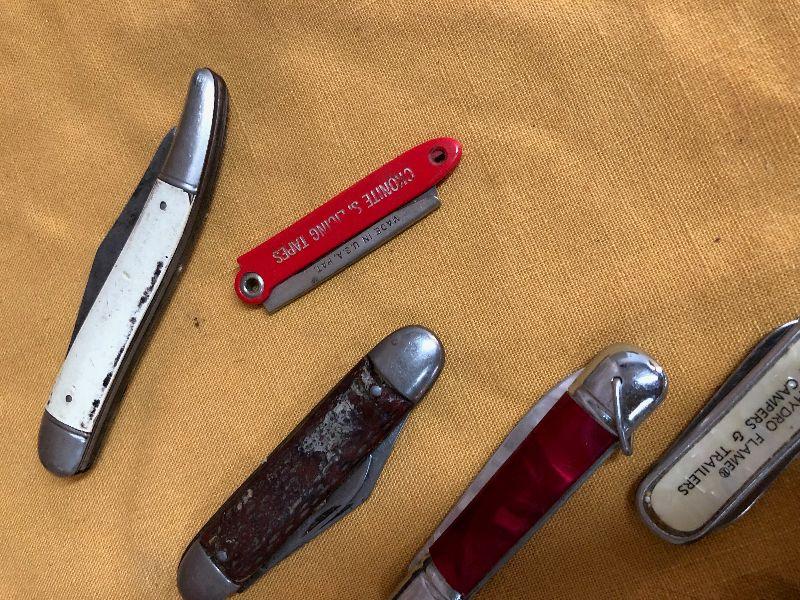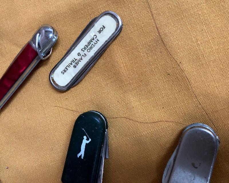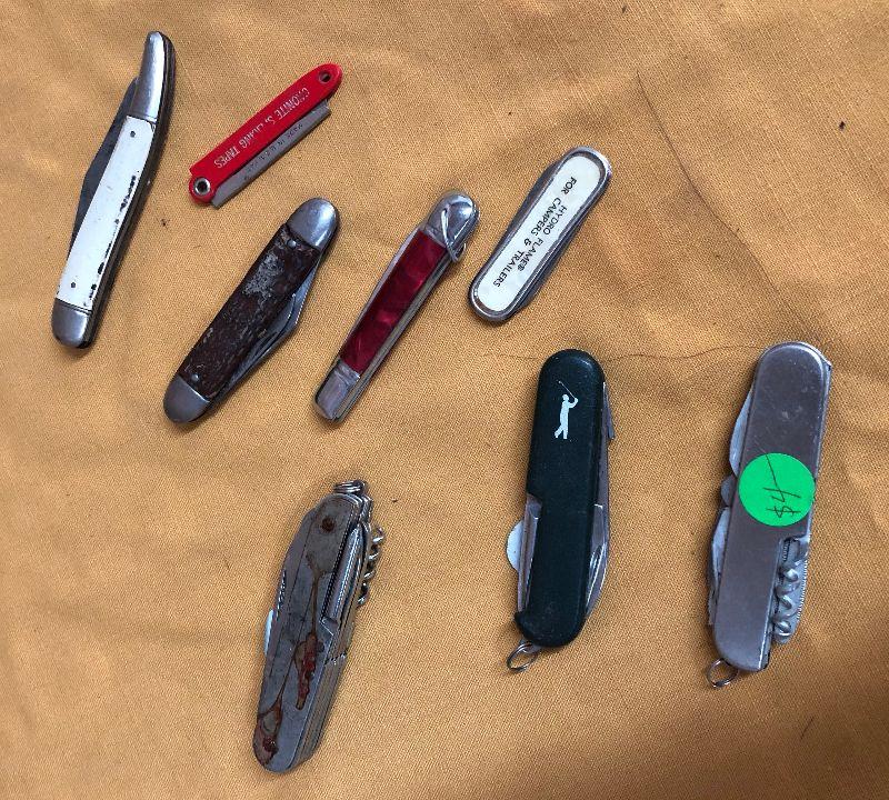 Here is a group of vintage pocketknife...fisherman, camper and multi-tool