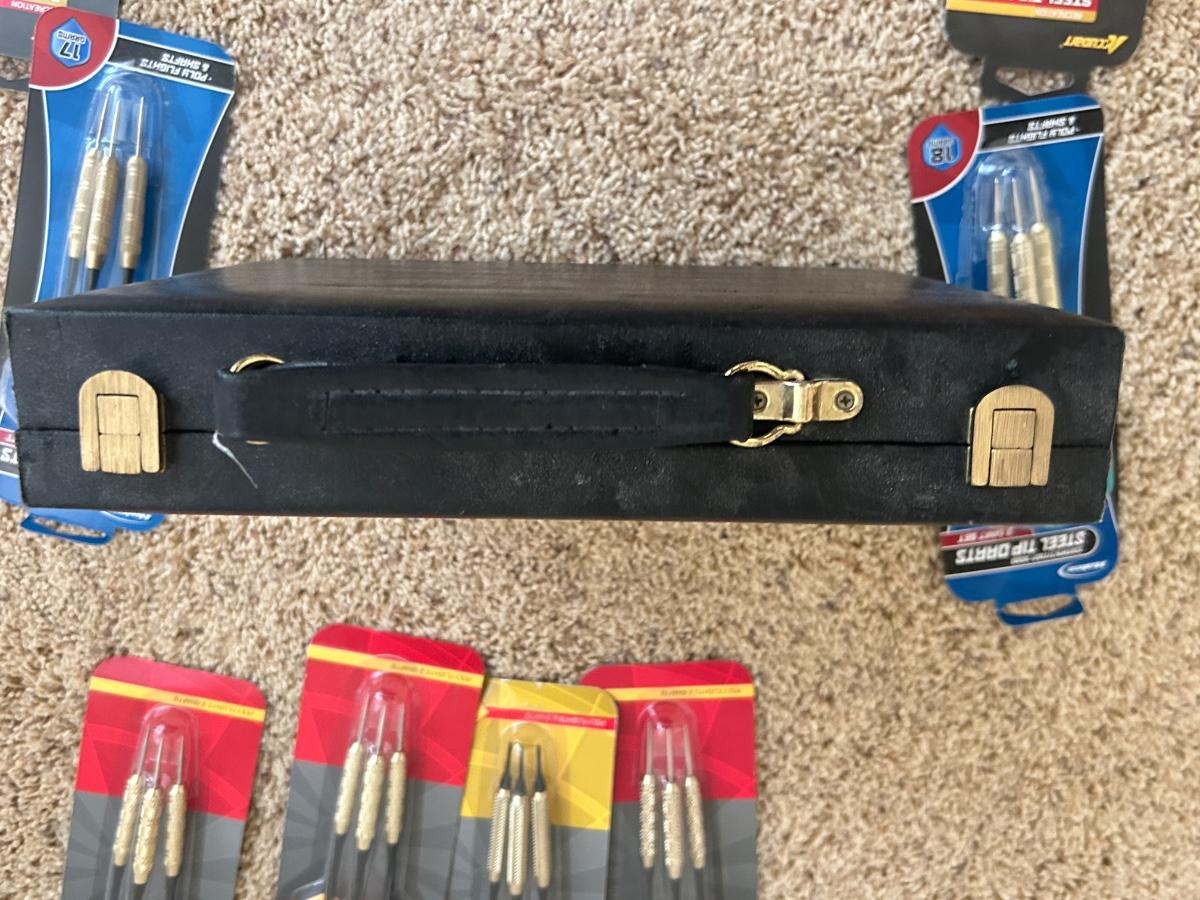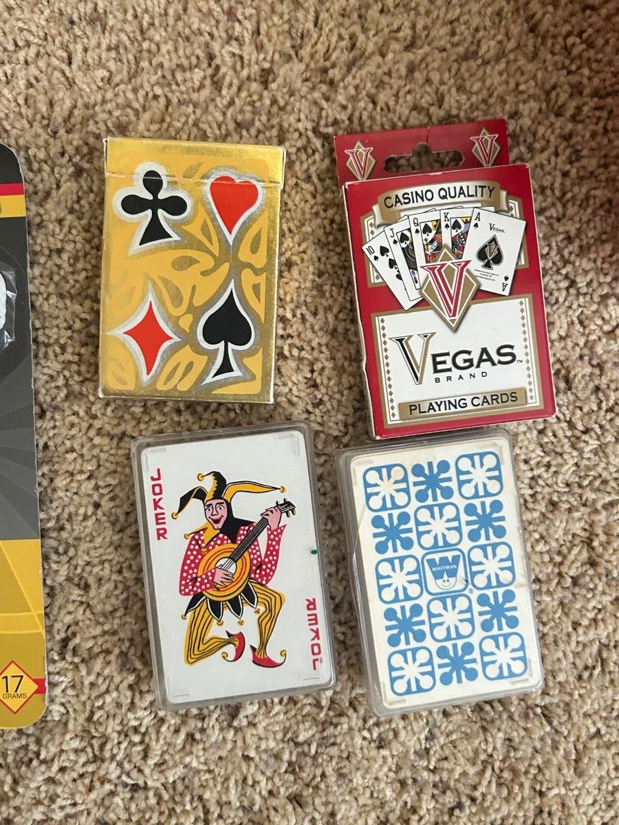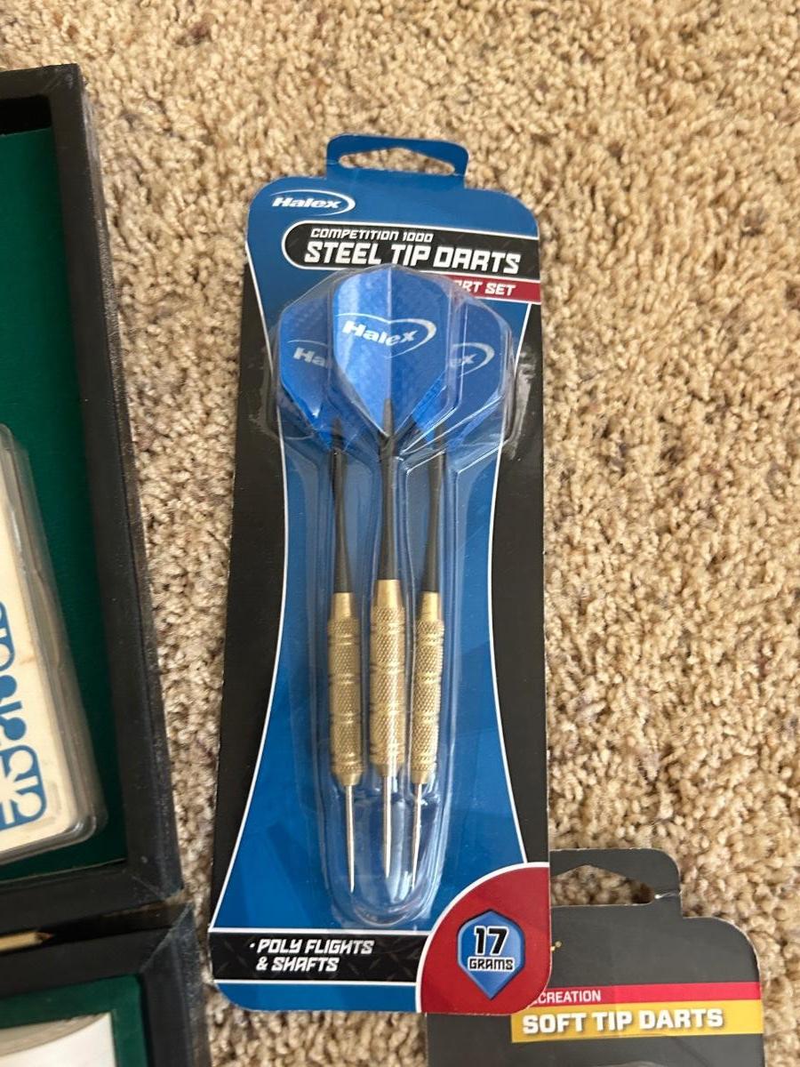 VINTAGE POKER CHIPS, DECKS OF CARDS AND A BUNCH OF DARTS