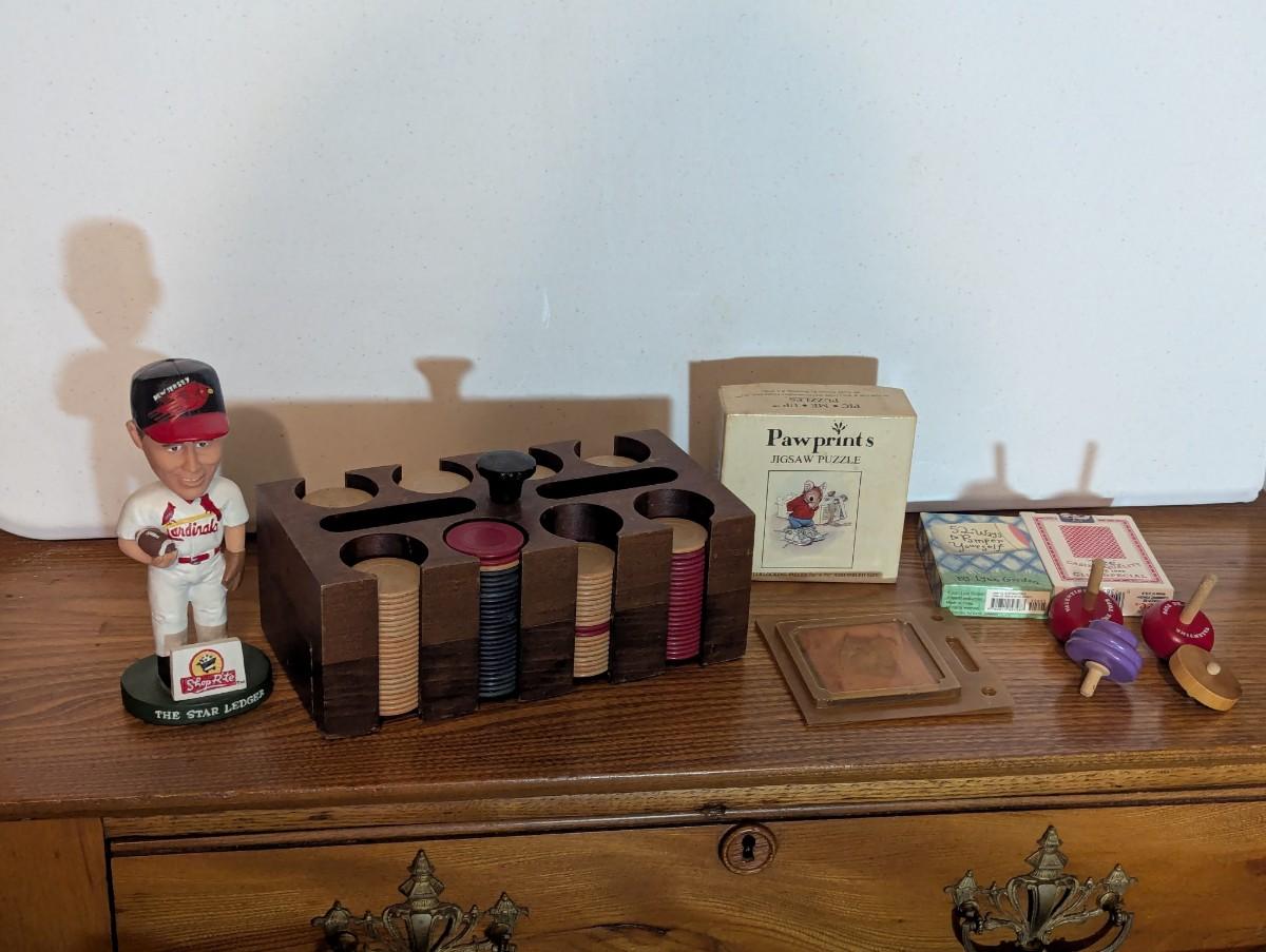 Vintage Poker Chips Tops Cards Puzzles Nodder