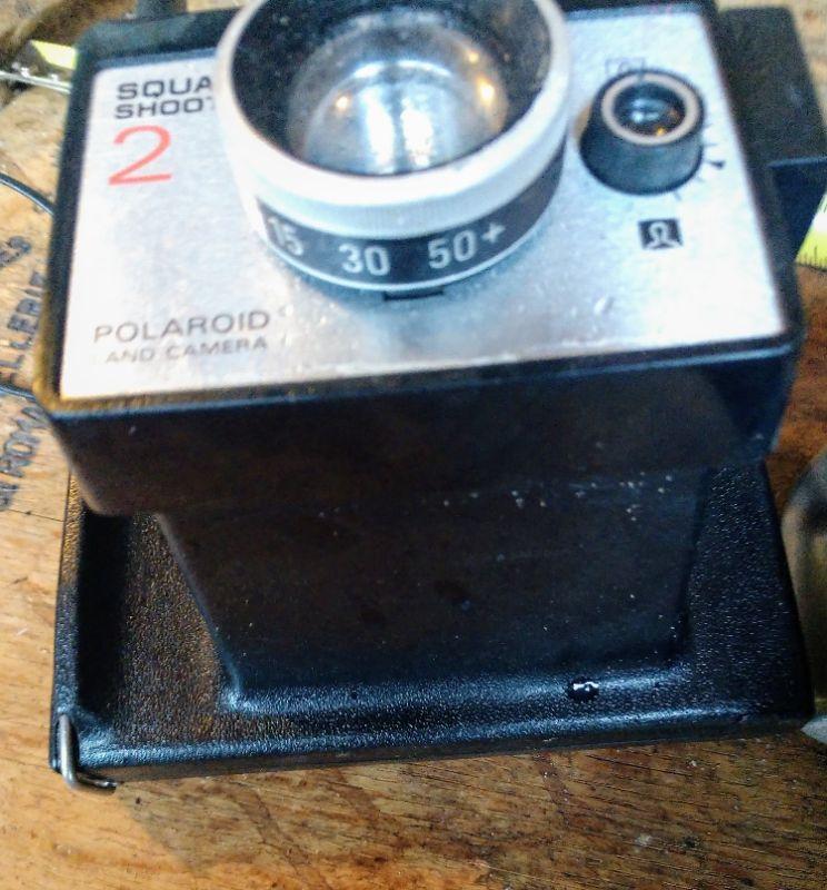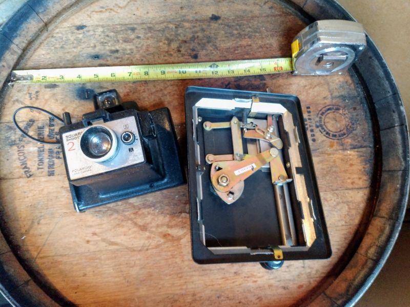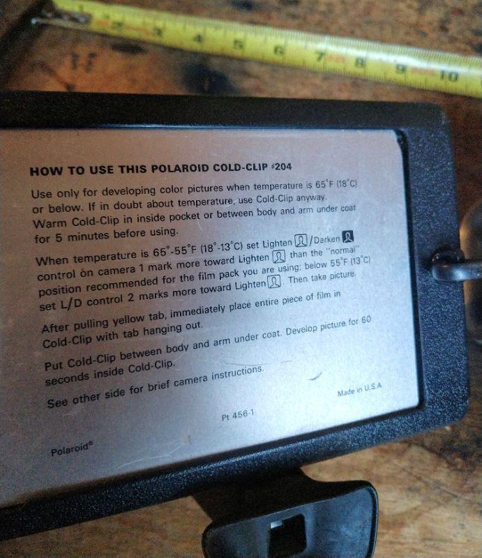 Look closely at photos of course. Two misc pieces. One says Polaroid cold-clip. Assume these are camera pieces, not whole.