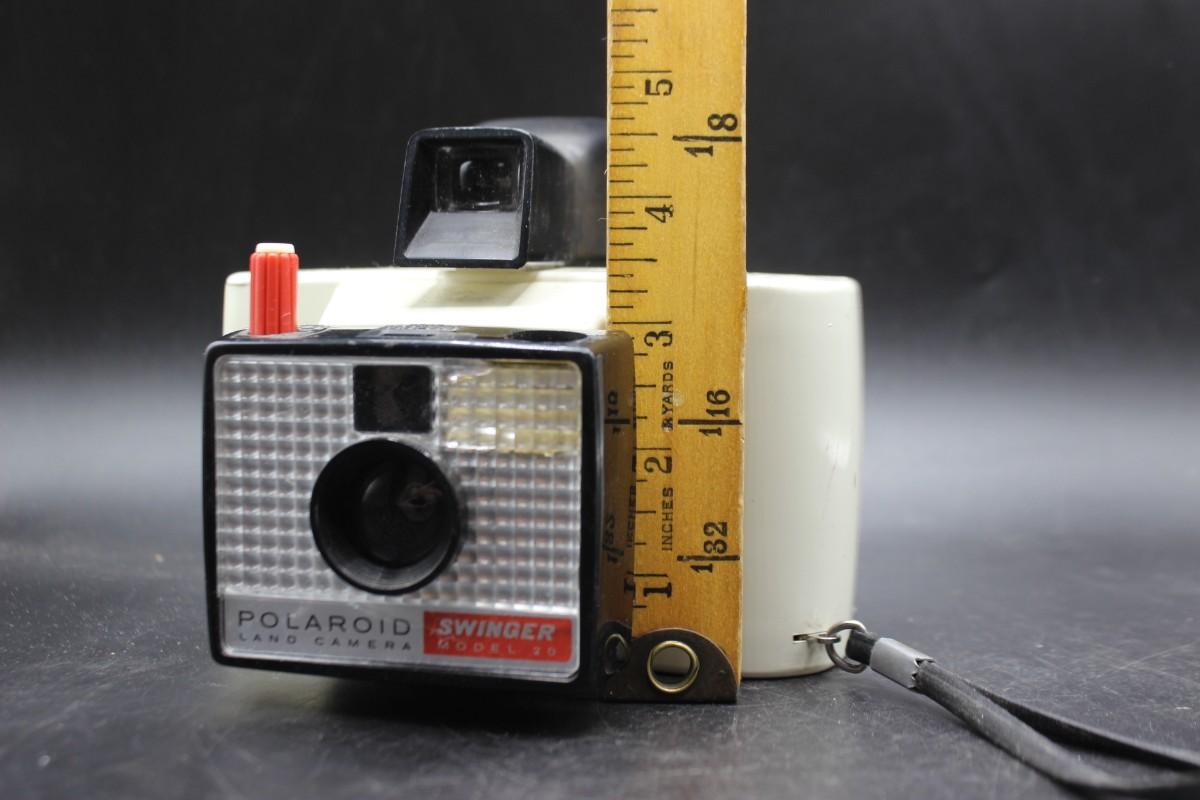 Vintage Polaroid Land Camera Swinger Model 20, there is no significant damage to the camera and is in good vintage condition. Has not been tested, check pictures for more details and for sizing.
