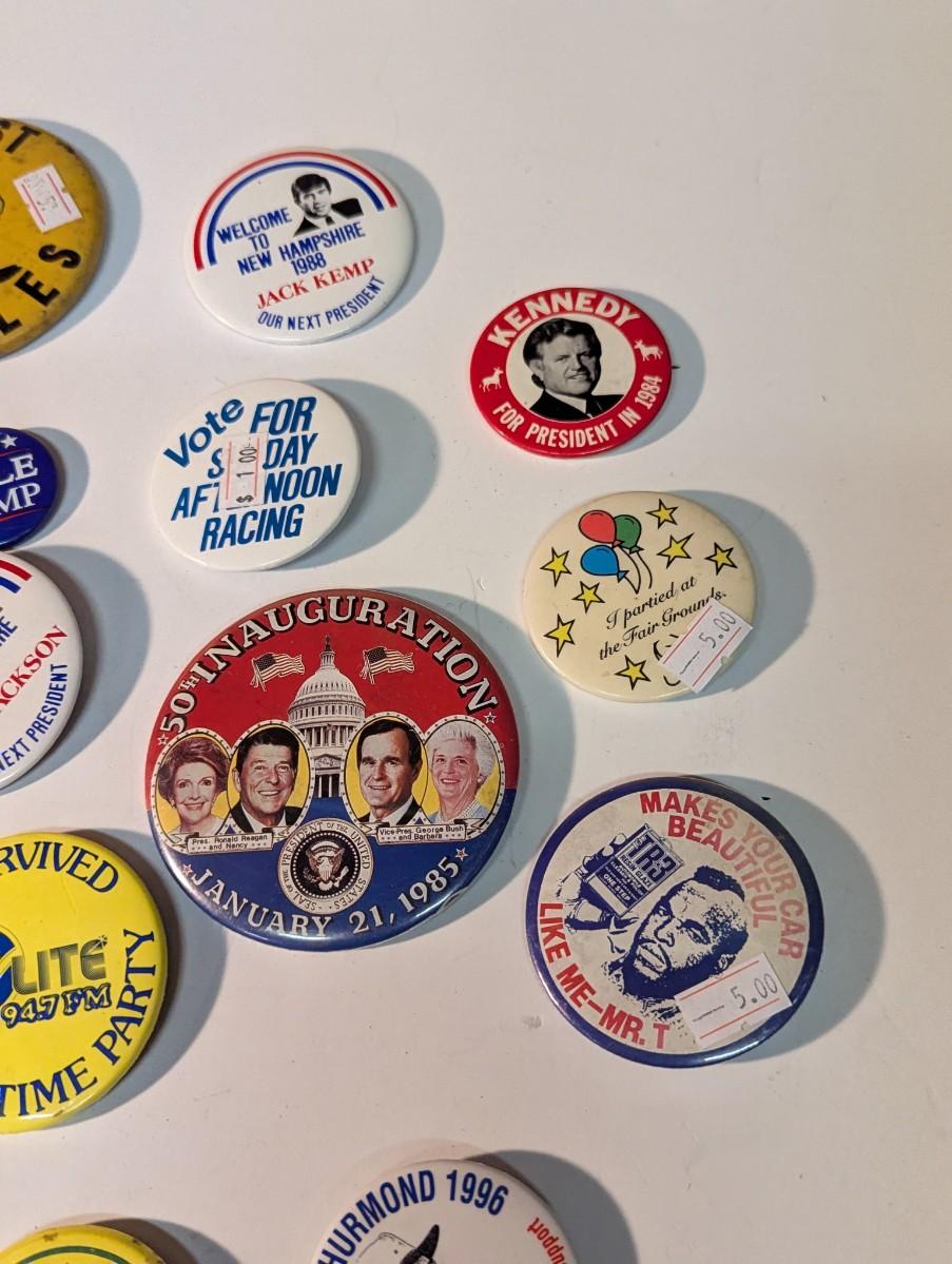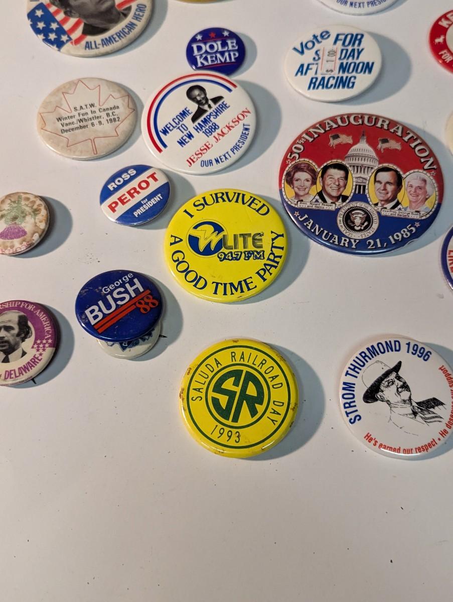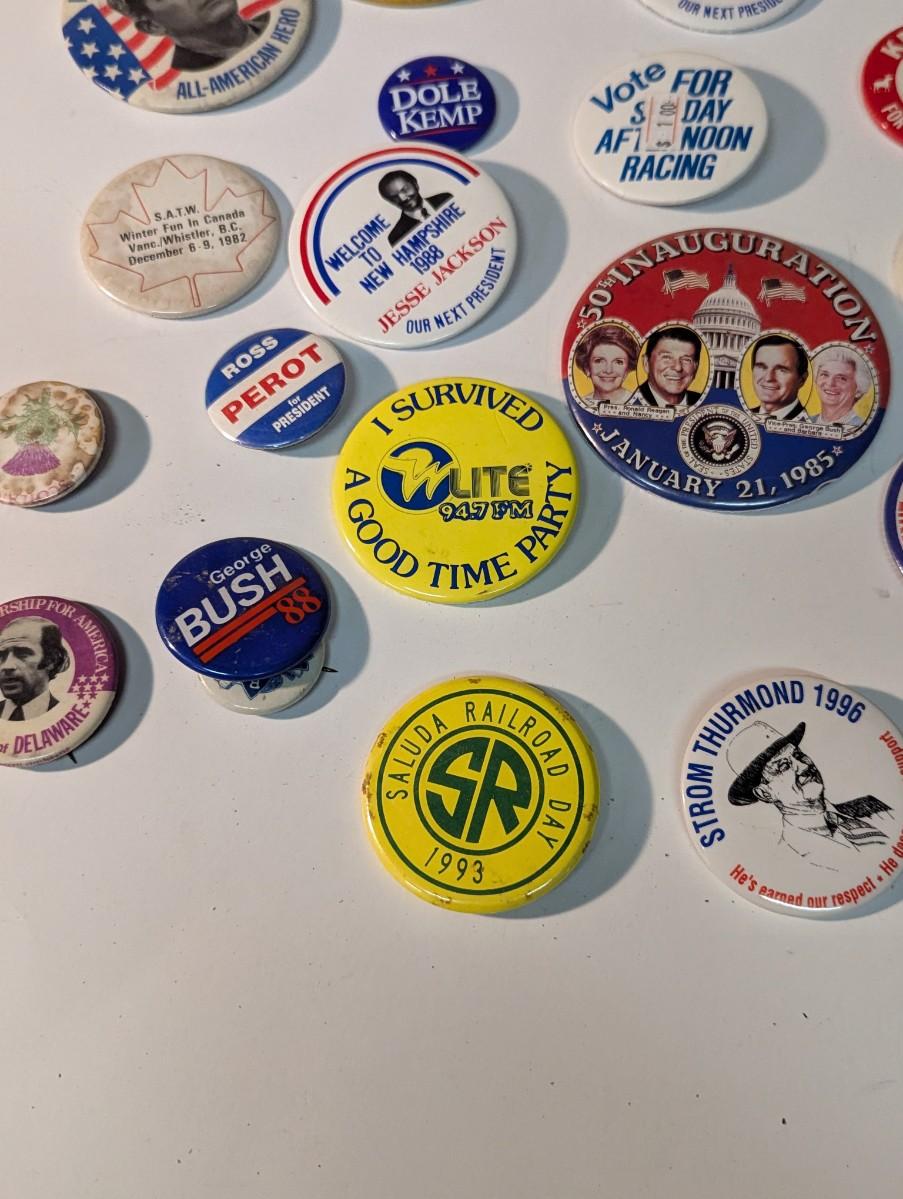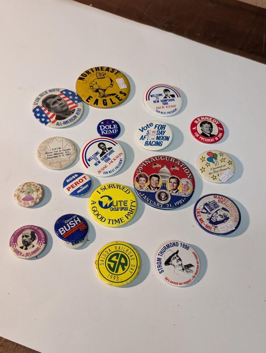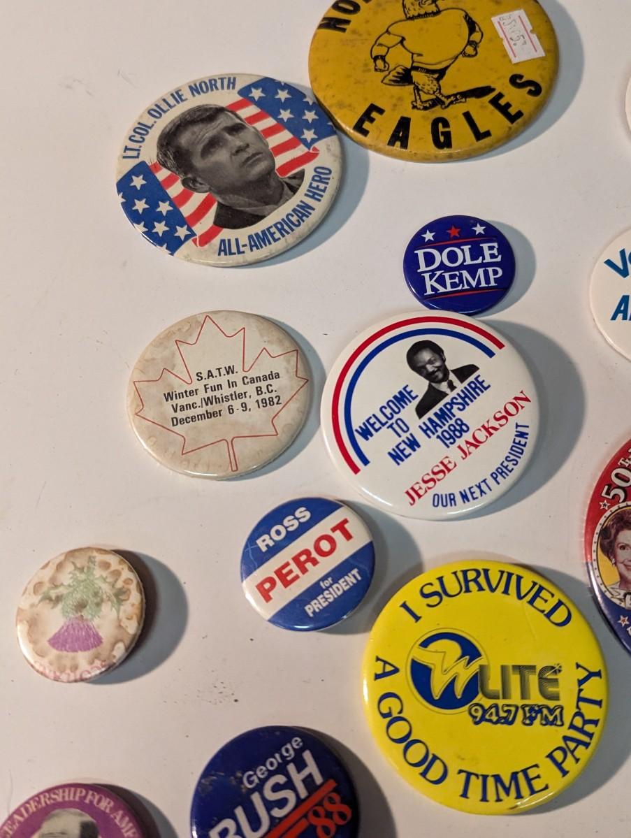 Vintage Political & Advertising Pins Joe Biden George Bush Ollie North