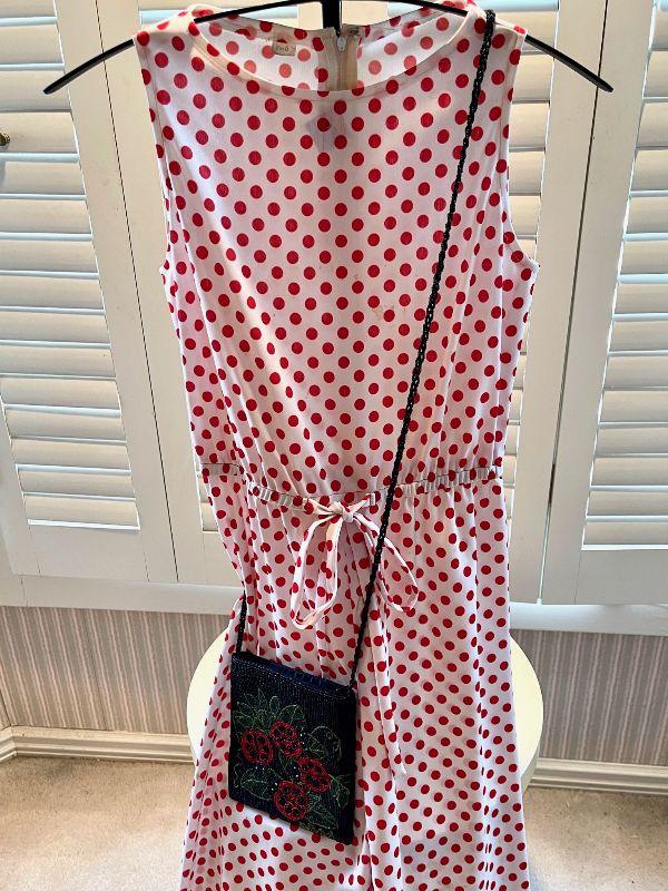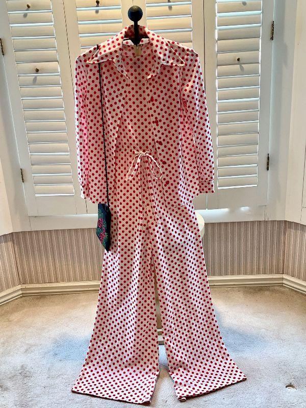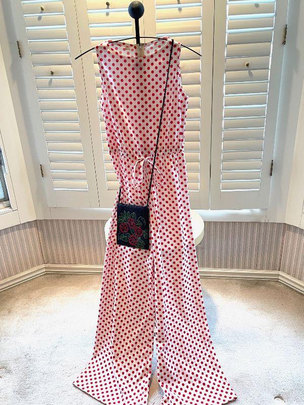 Vintage Polkadot 2pc Pantsuit Jumpsuit with Ladybug Bag