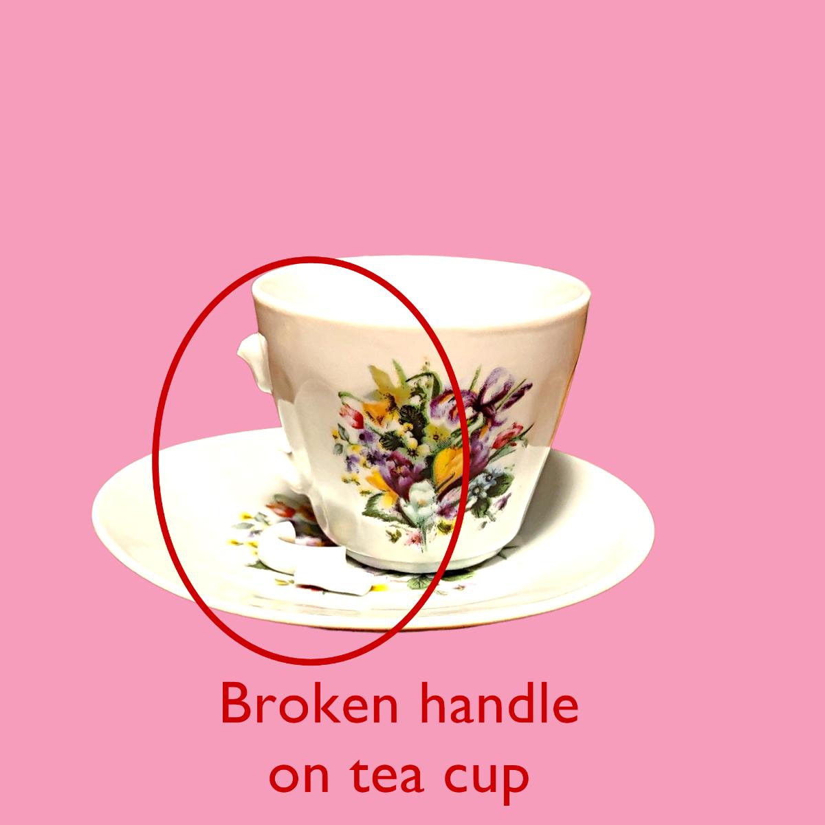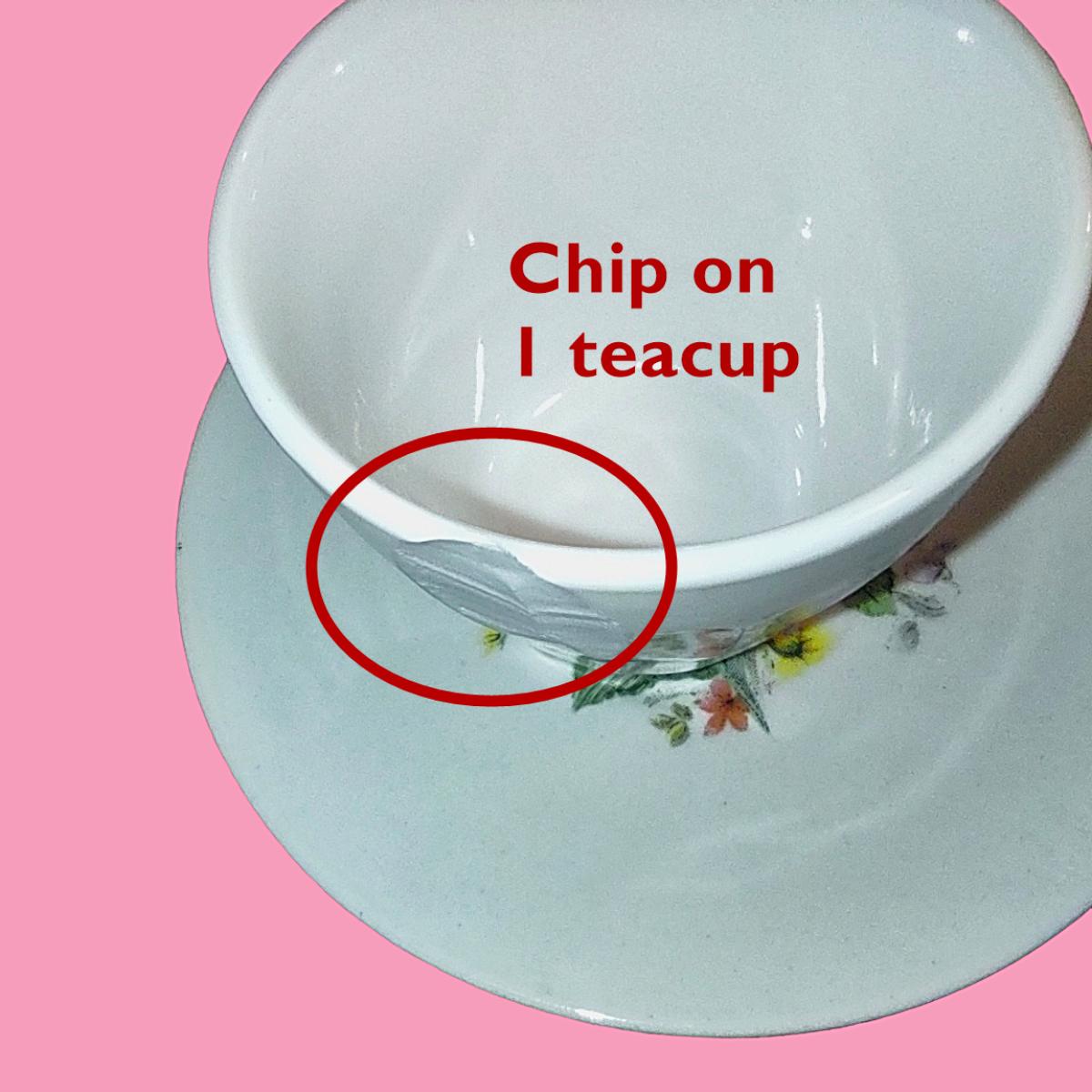 6 - 2"H x 2"W Teacups (1 with a chip on the rim & 1 with no handle. See photos)