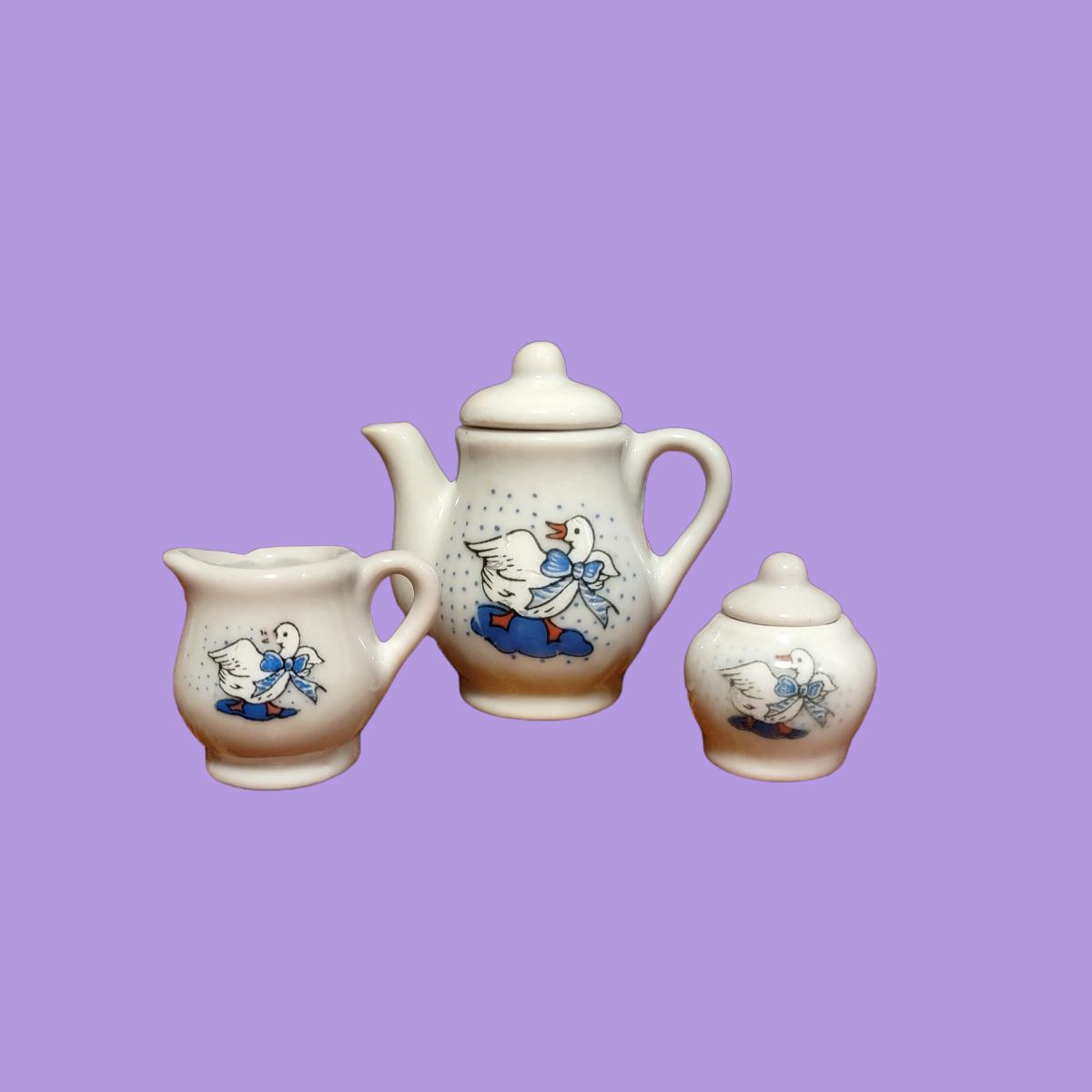 Vintage Porcelain Goose Miniature Tea Set
