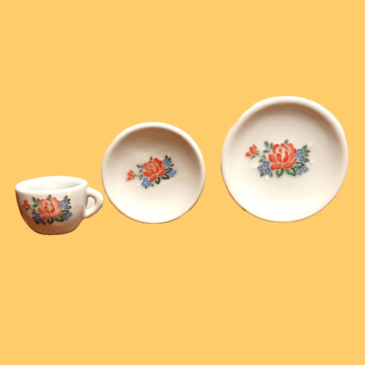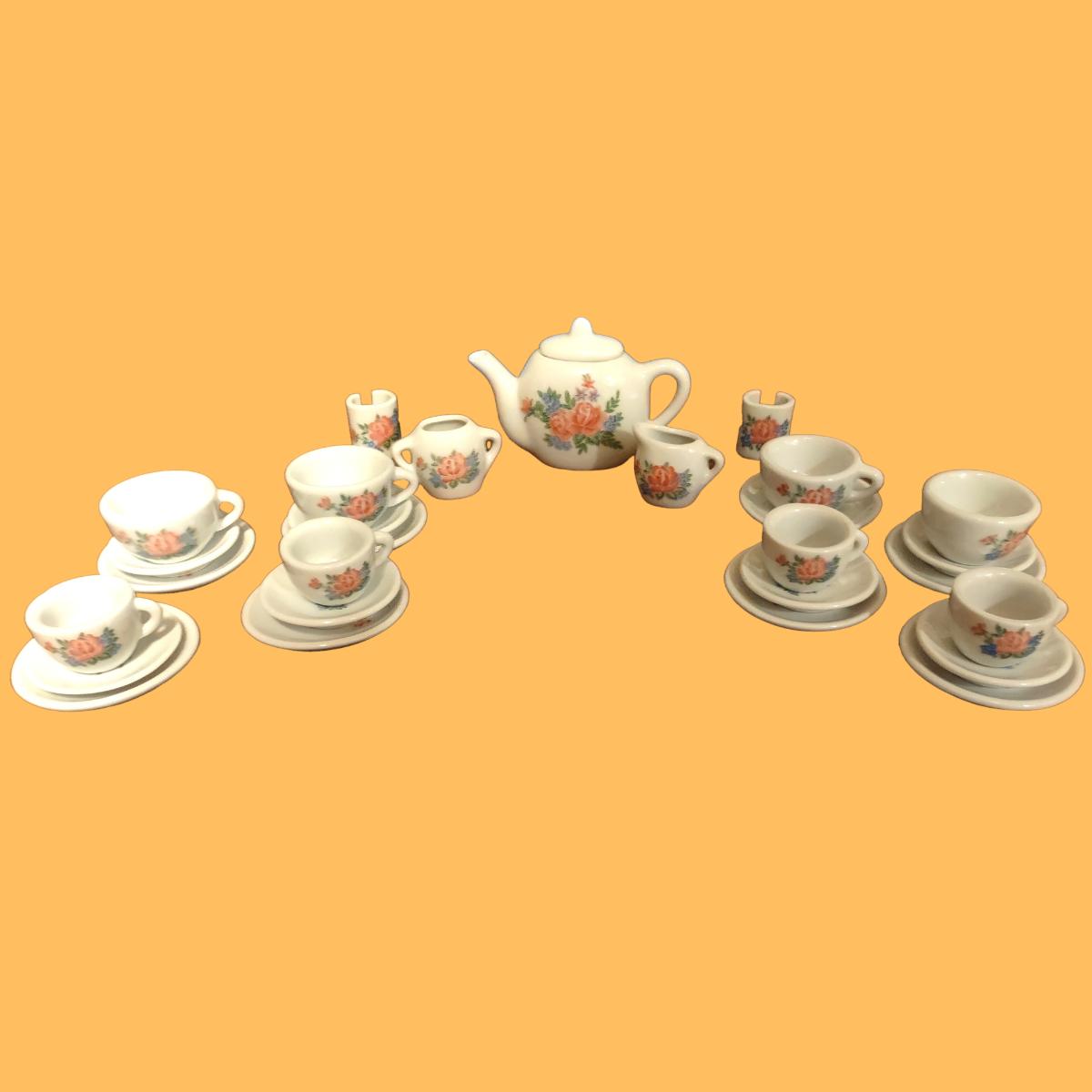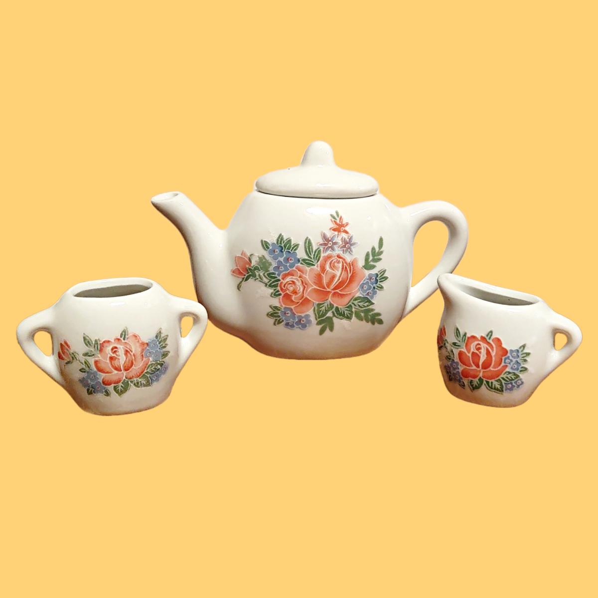 Vintage Porcelain Orange & Blue Floral Miniature Tea Set