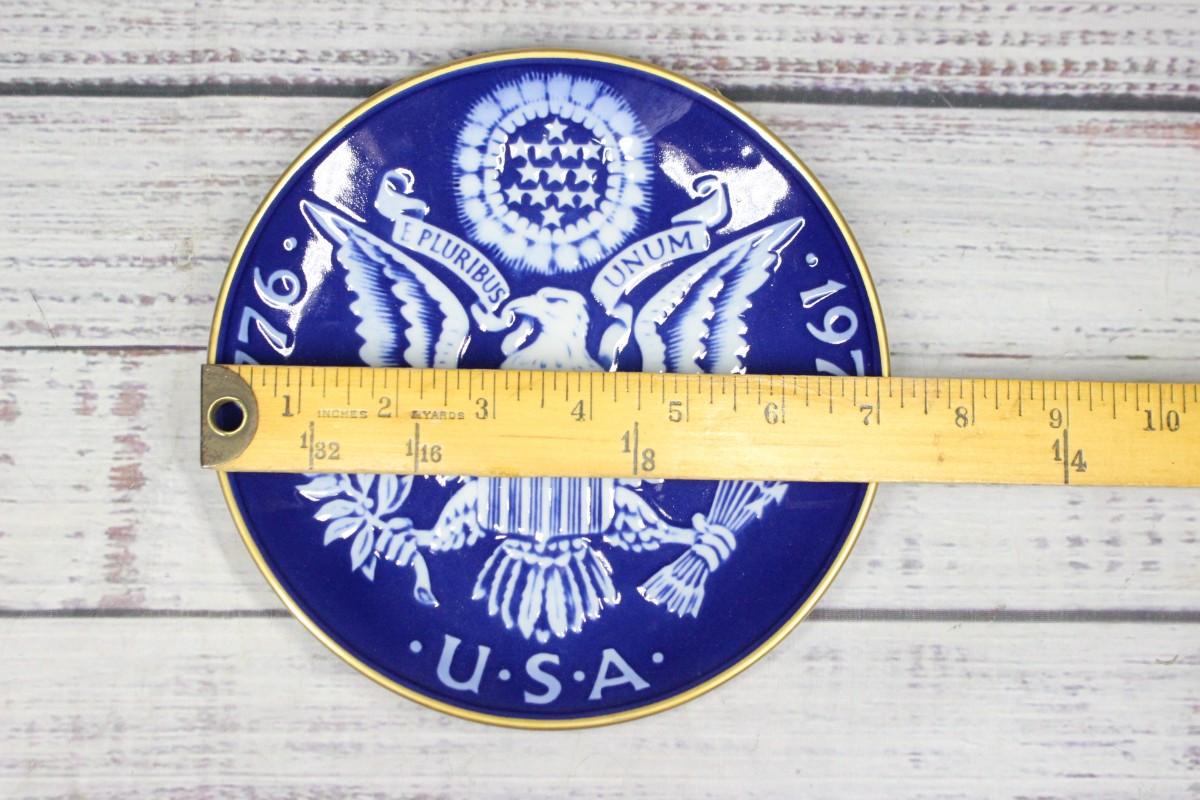 Vintage Porcelain American Eagle Memorabilia Collector Plate, there's no significant cracks or chips to the plate and is in good vintage condition. Check pictures for more details and for sizing.