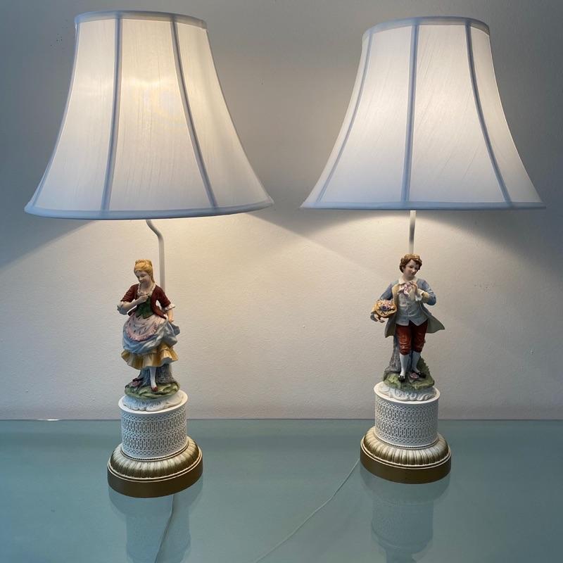 Vintage Porcelain Girl/Boy Matching Lamps