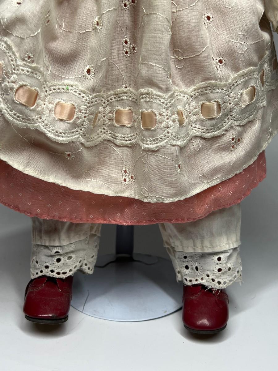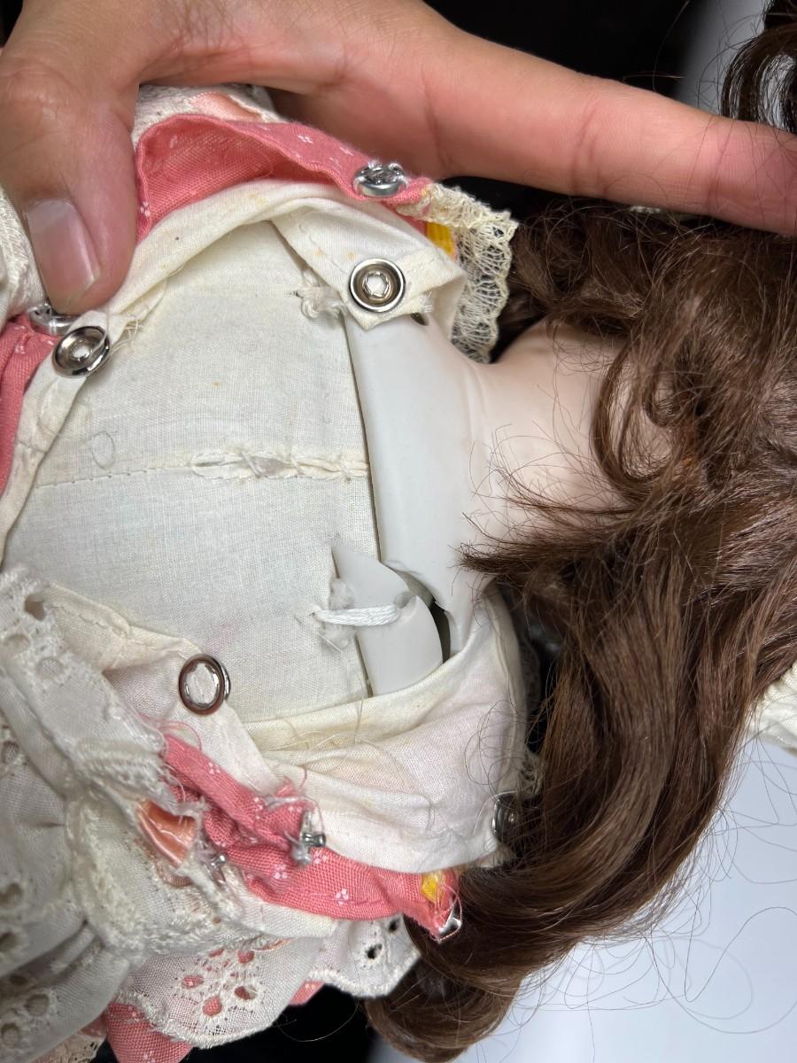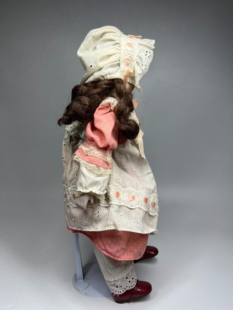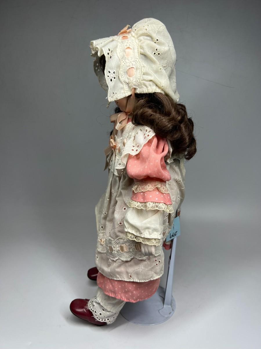 Vintage Porcelain Doll with Stand. Made in Taiwan. Displays nicely. Does have a broken shoulder piece under her dress. See photos.