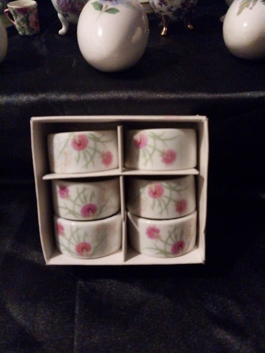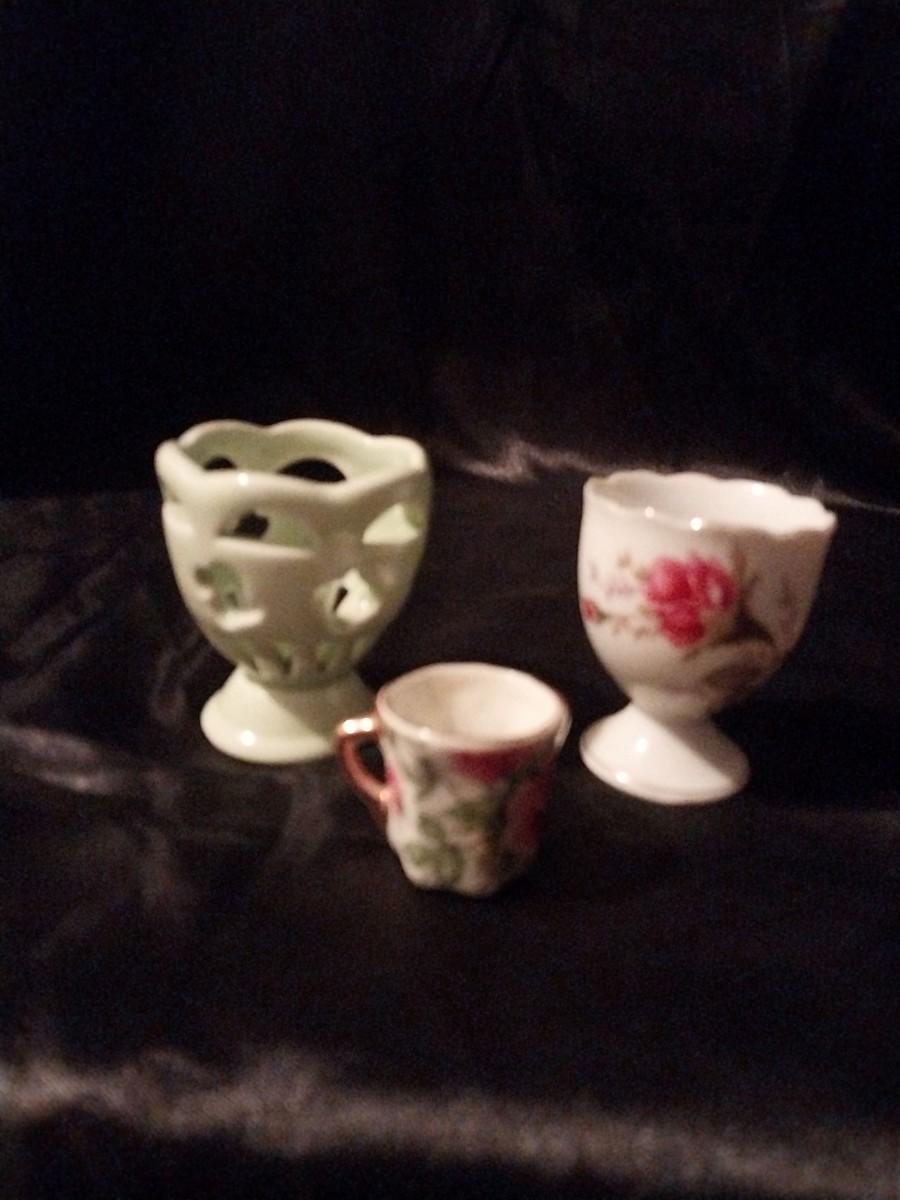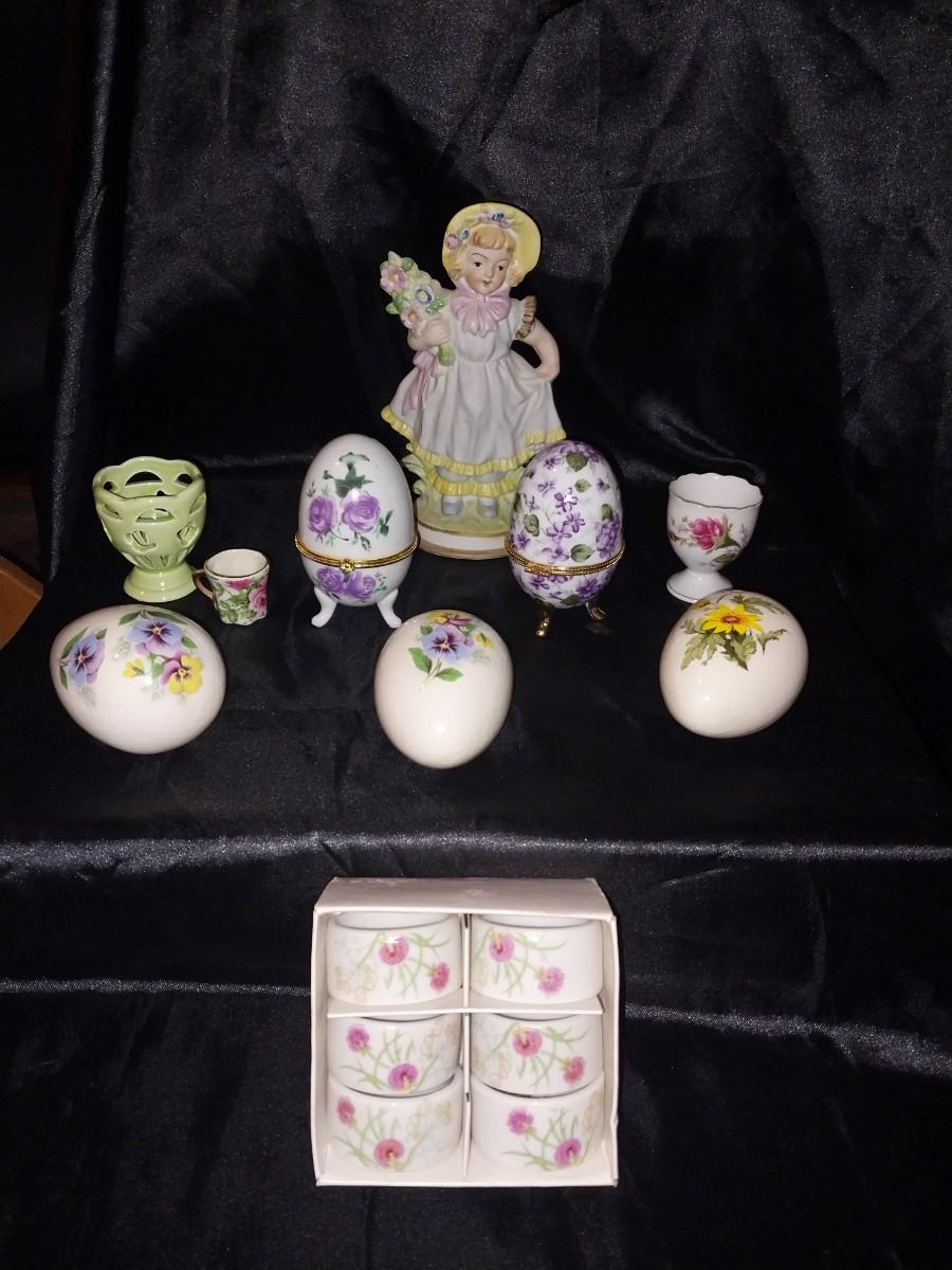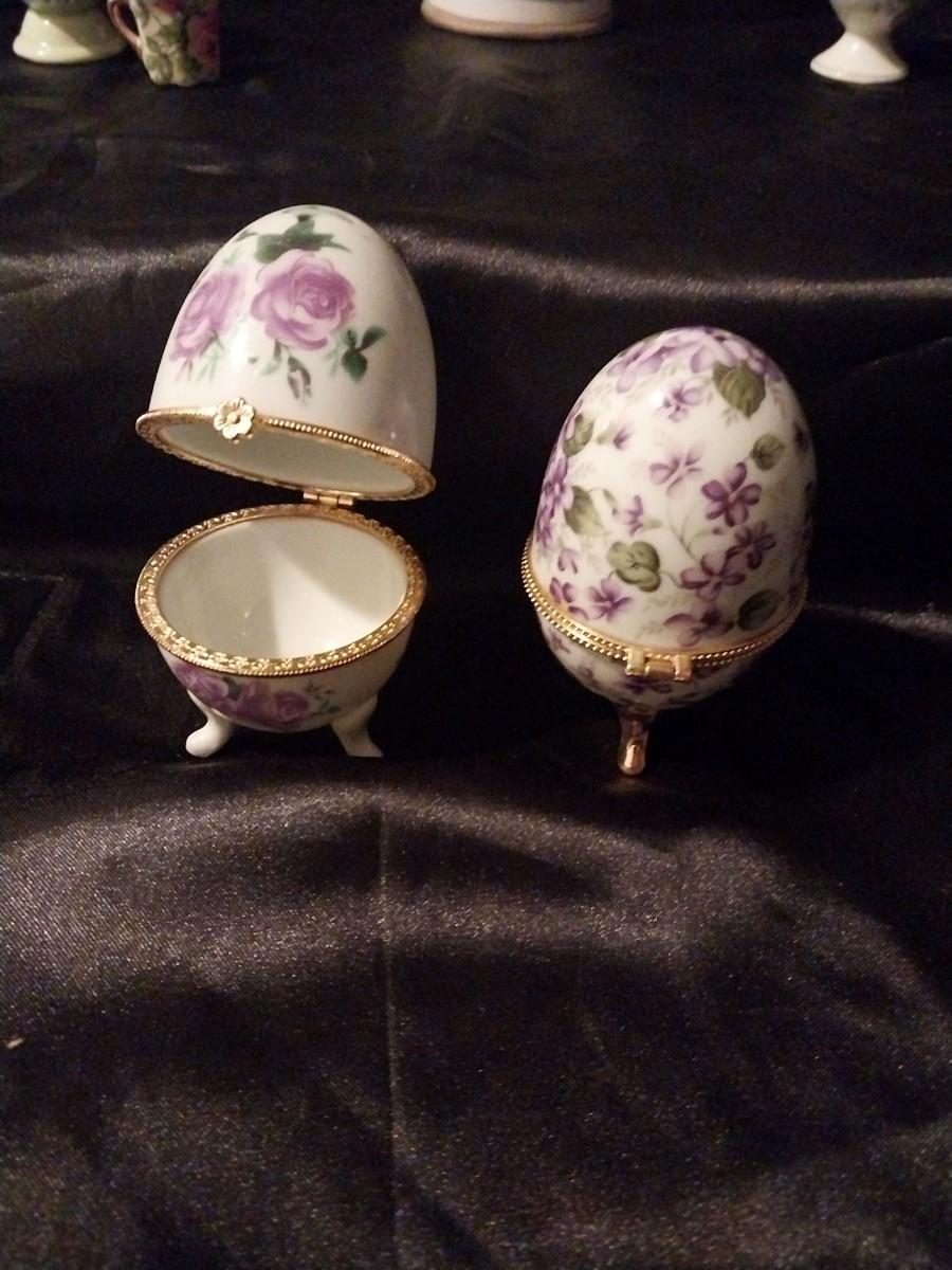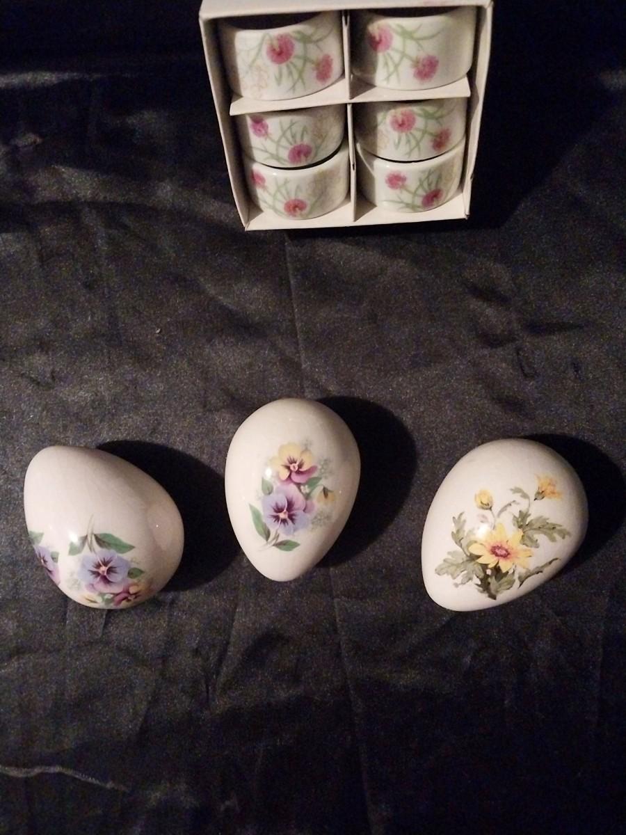 7" TALL EGG HOLDERS AND TRINKET BOX EGGS PAINTED ON FLOWERS