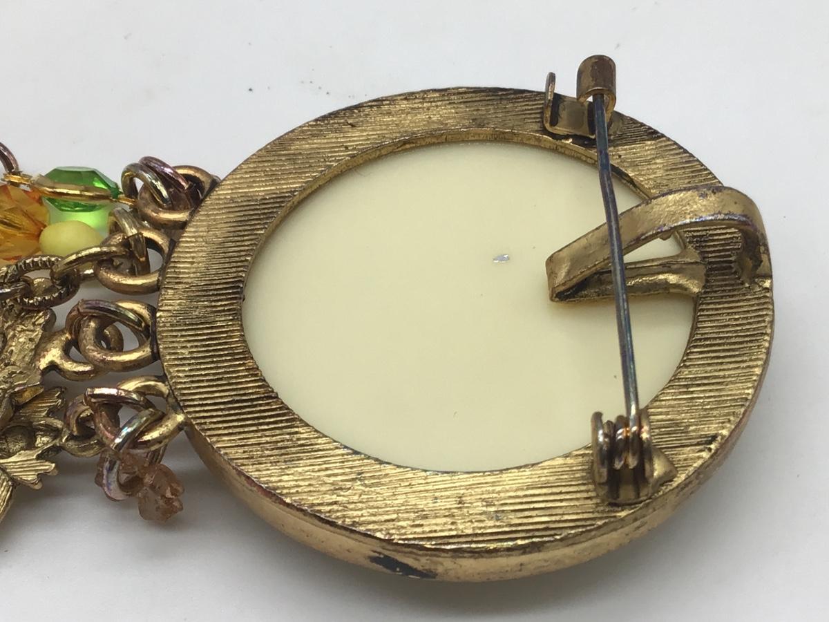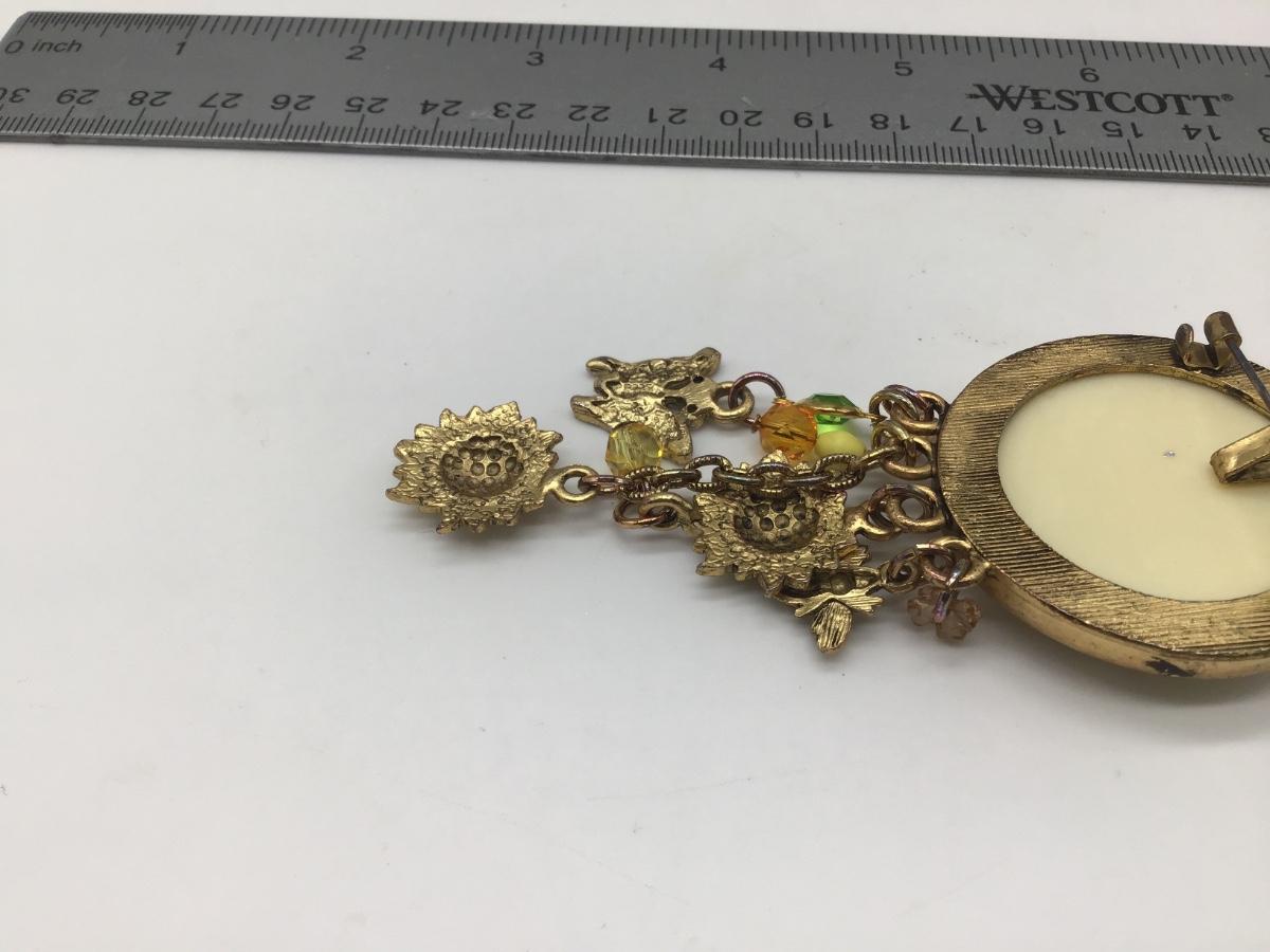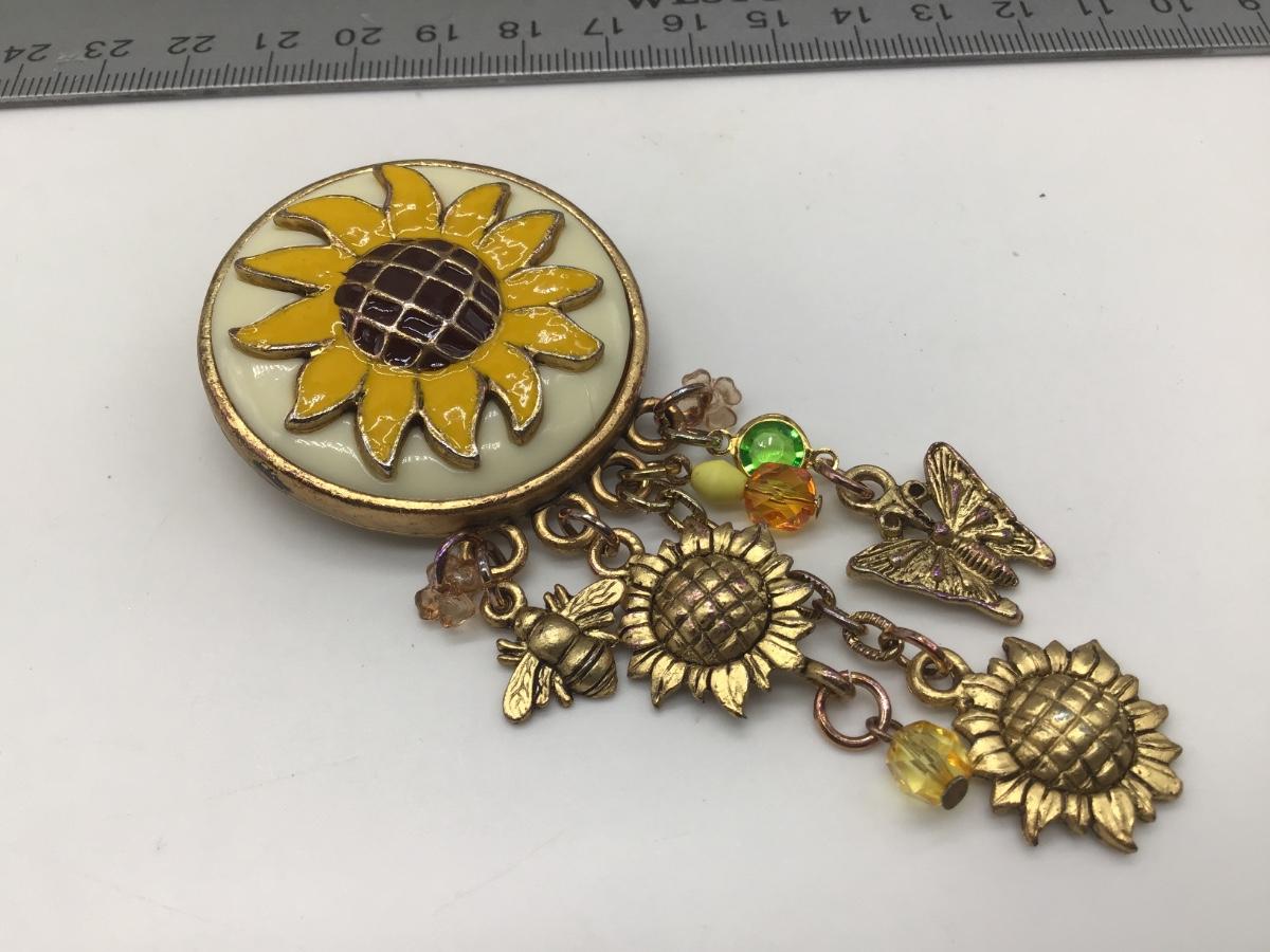 Vintage Porcelain Enamel Sunflower Charm Brooch or Pendant