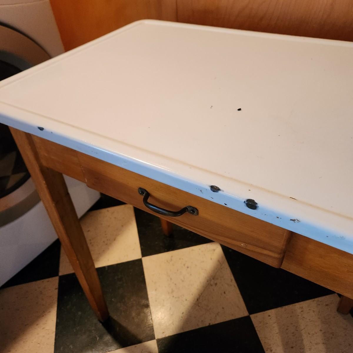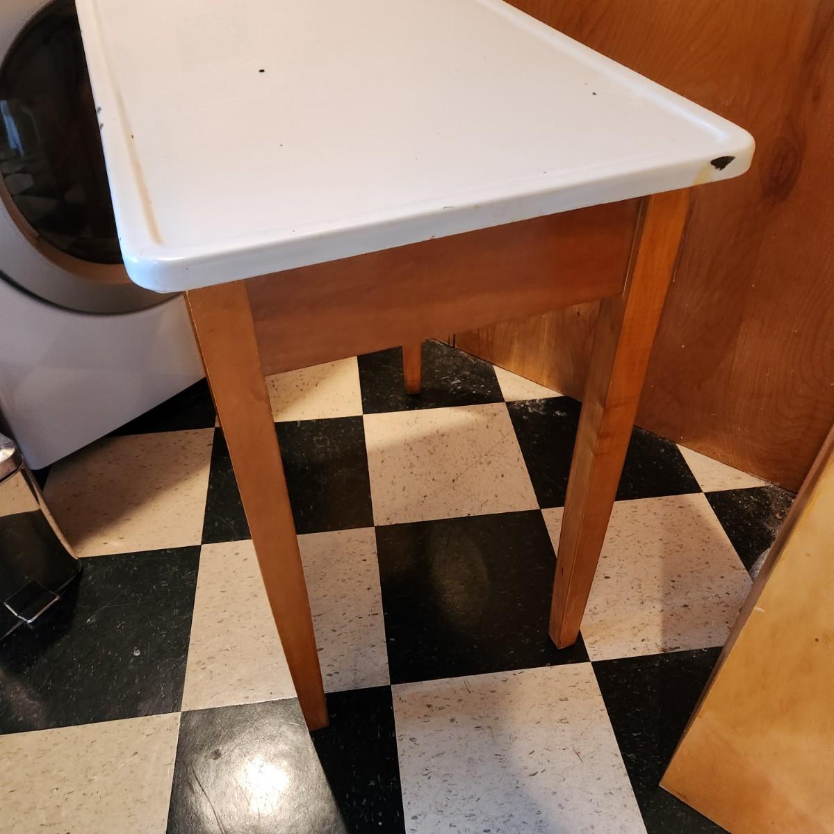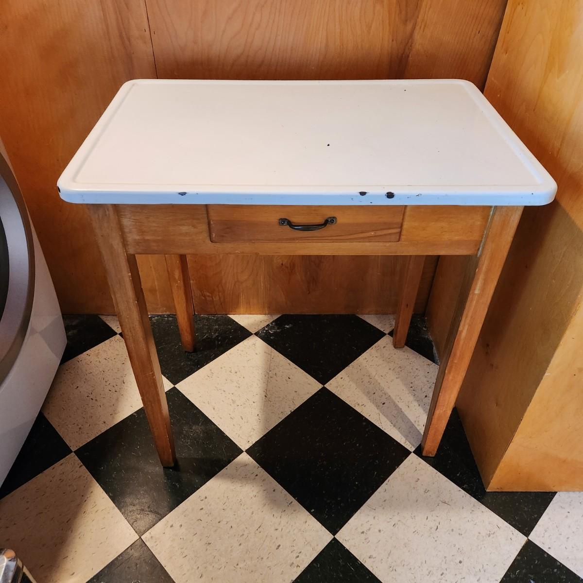 Vintage Porcelain Enamel Top Table 30x20x31