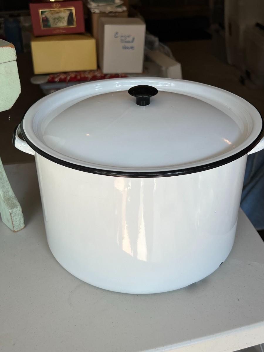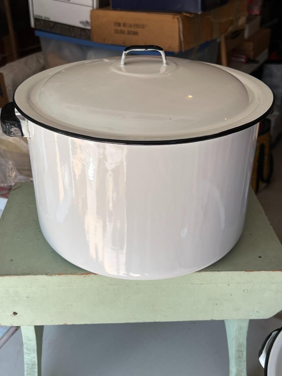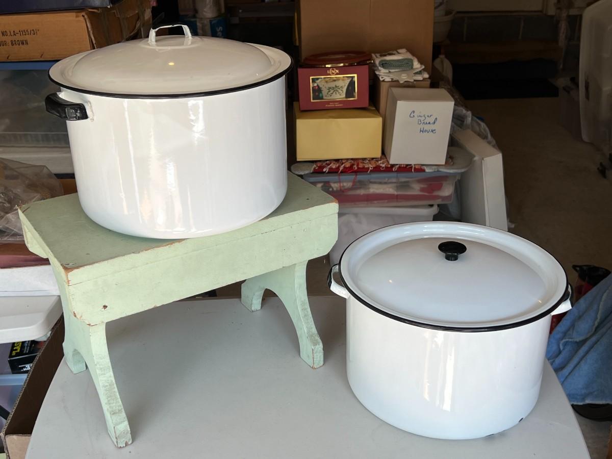 Vintage Porcelain Enamelware Stockpots- Set of 2