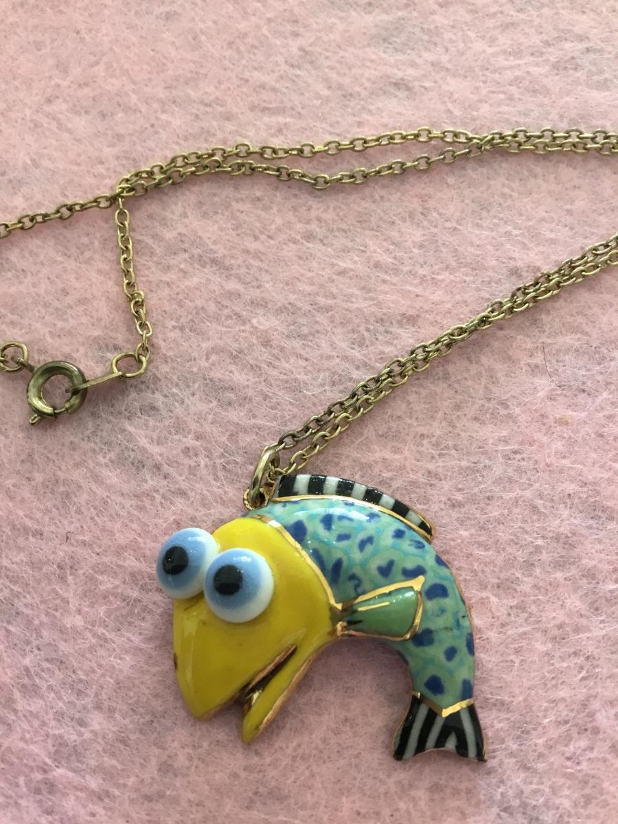 Vintage Porcelain Fish Necklace. Cute