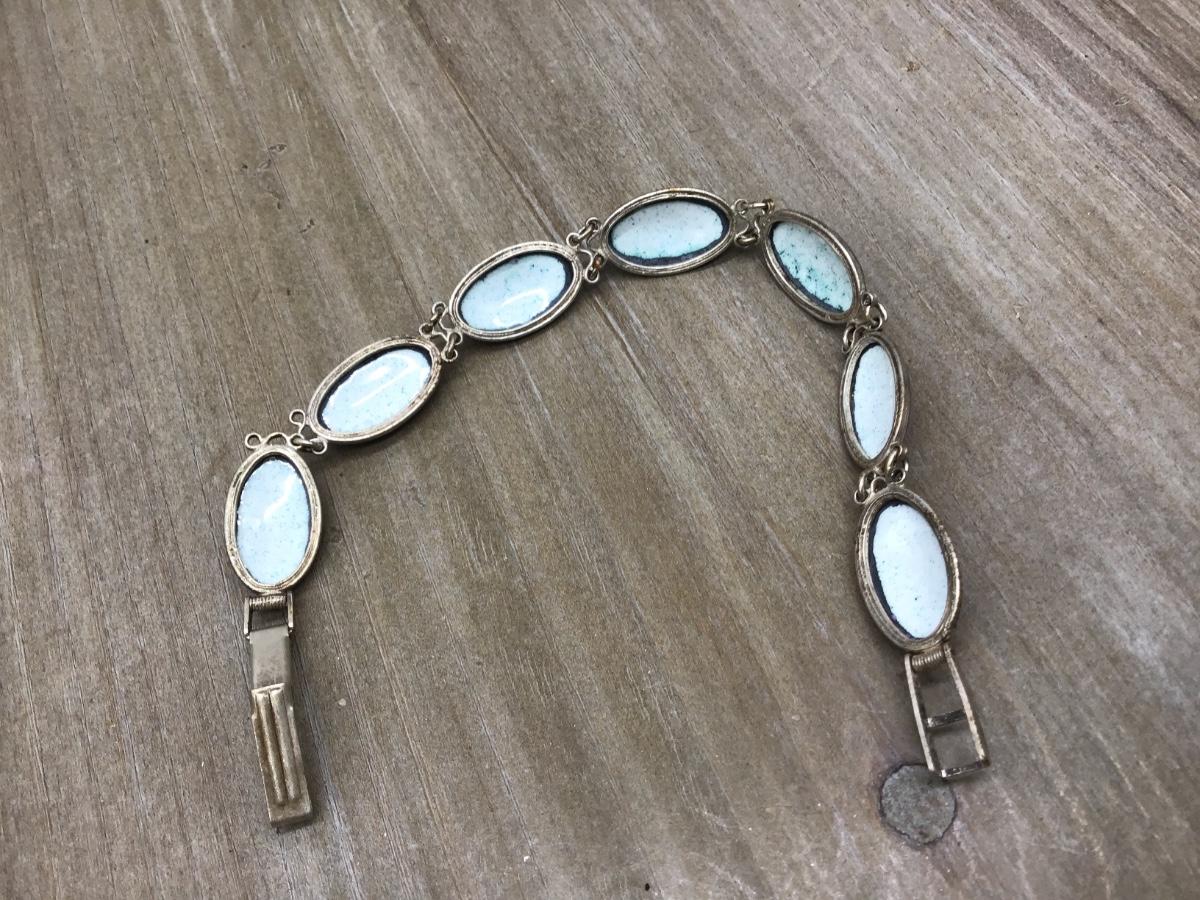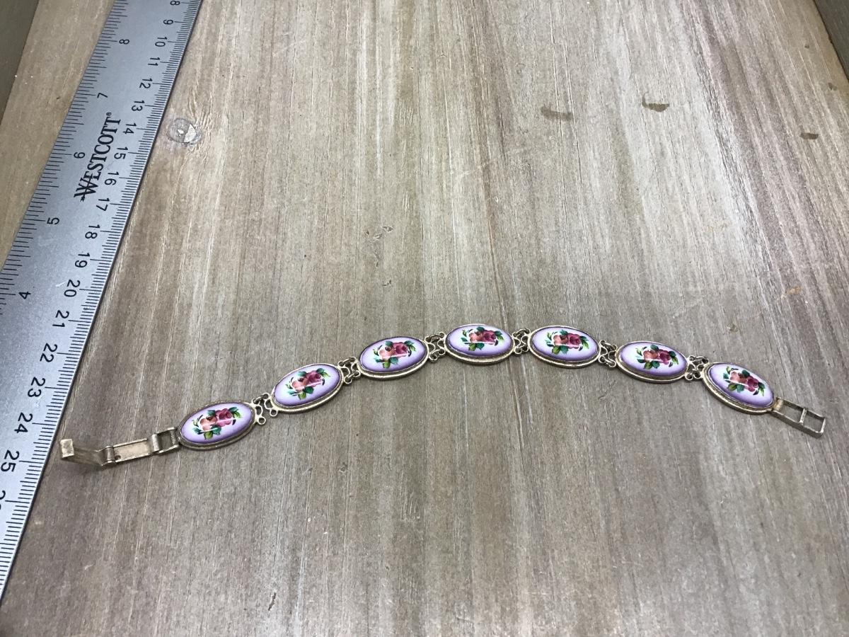 Vintage Porcelain Floral silver Tone Bracelet