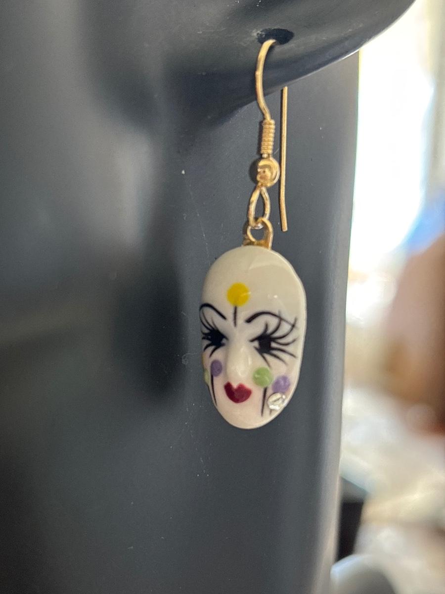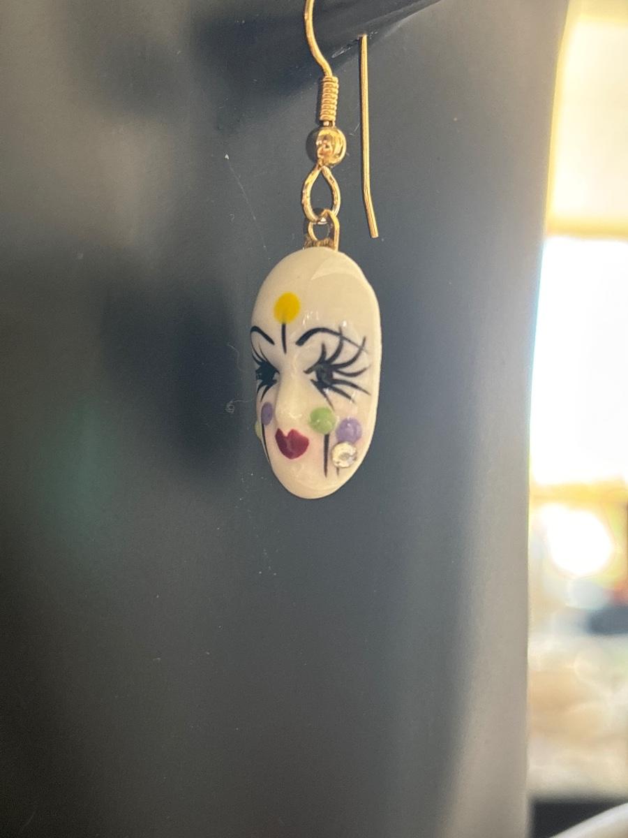 Vintage porcelain hand, painted earrings