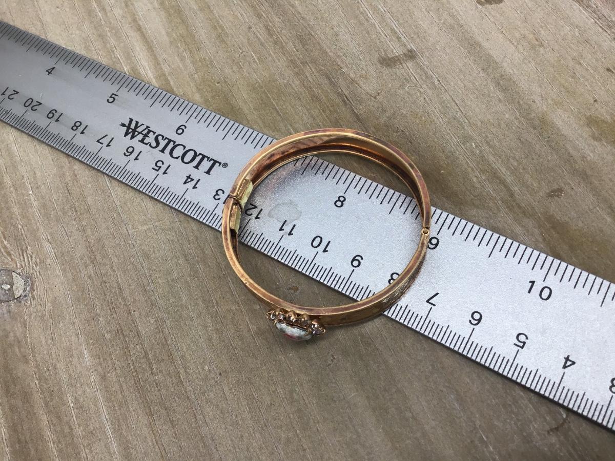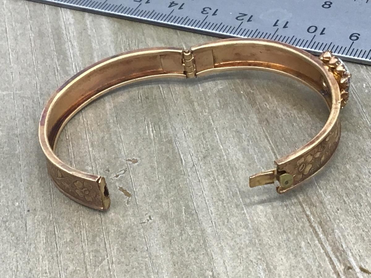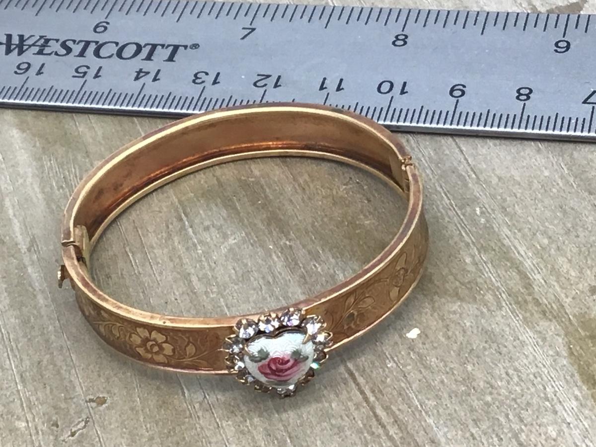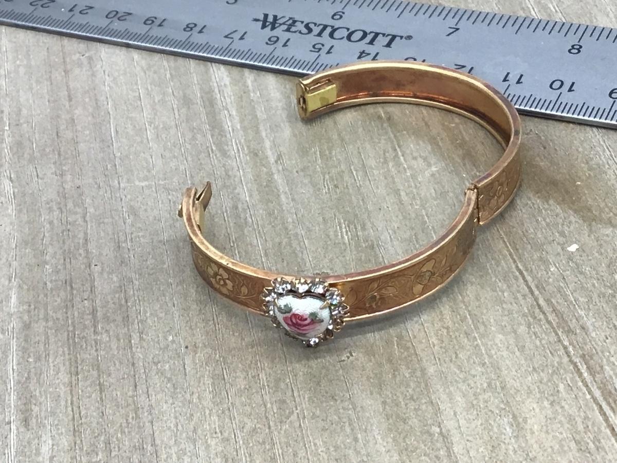 Vintage porcelain Heart Rhinestones Hinged Child Cuff