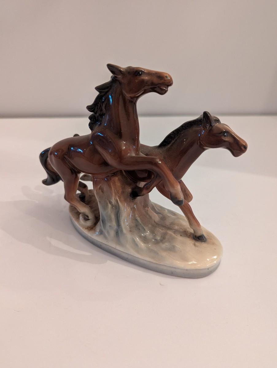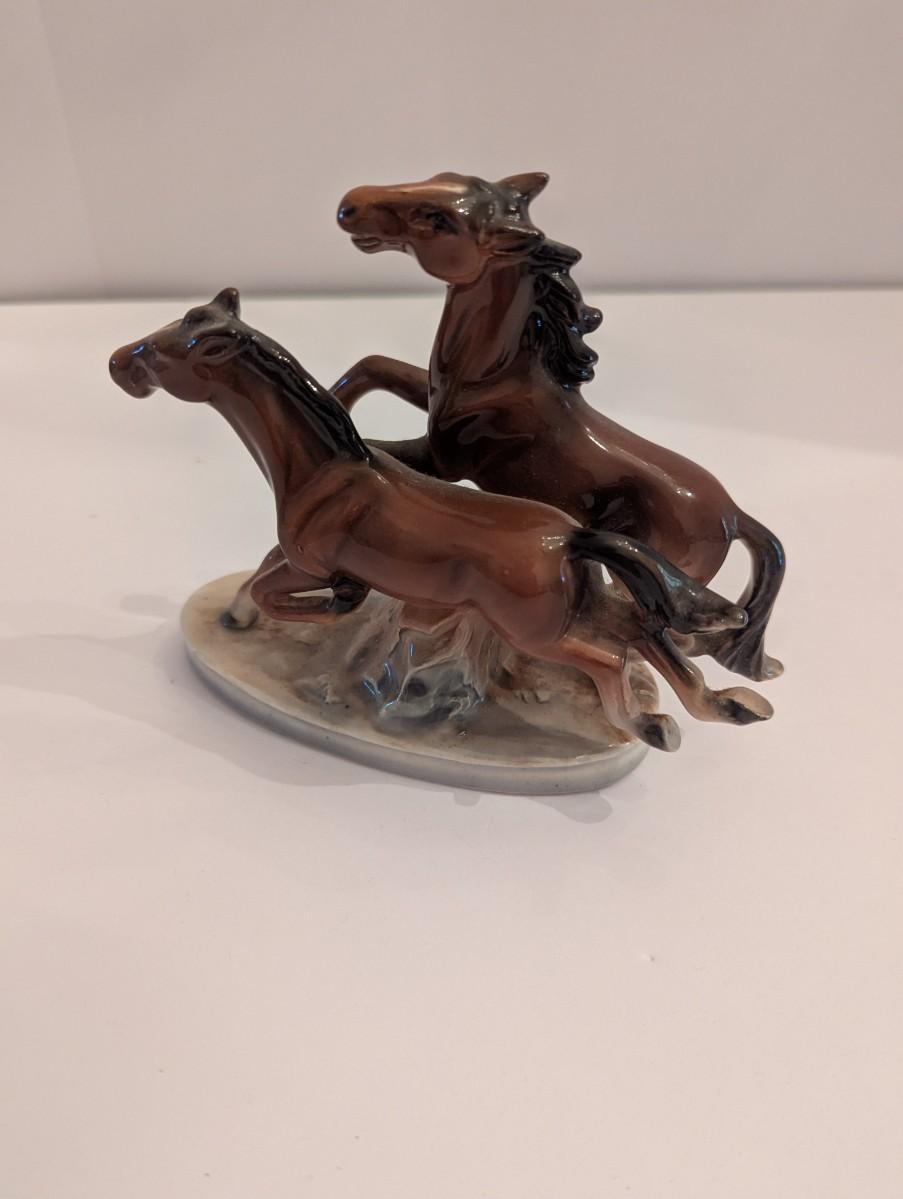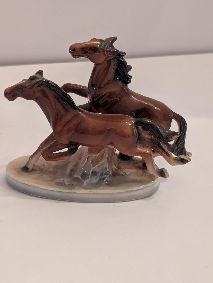 Vintage Porcelain Horse Figurine 5 1/2" x 6" Approx Running Horses