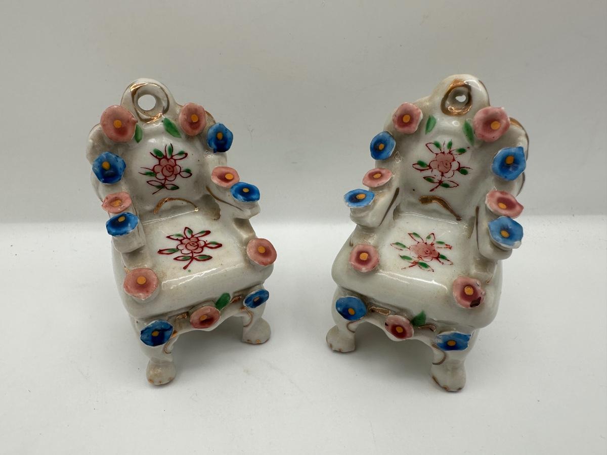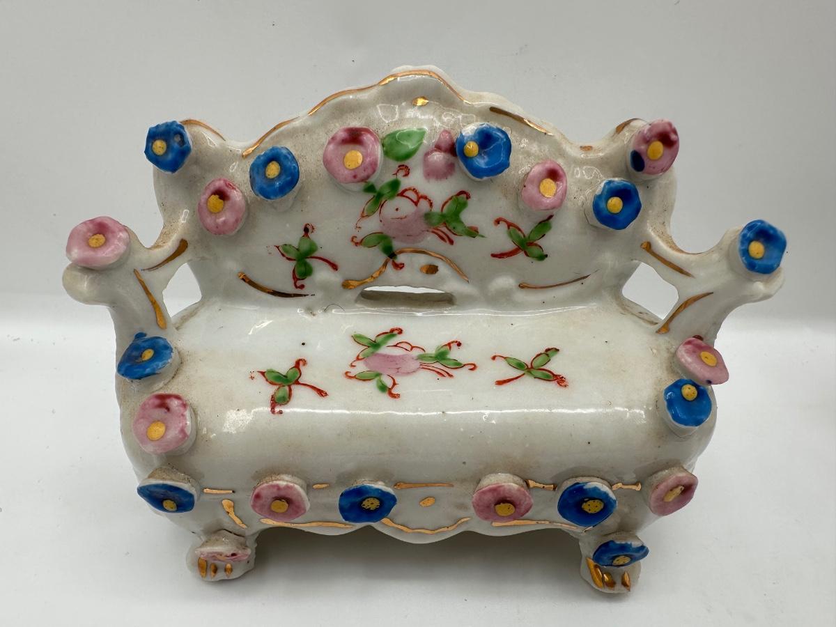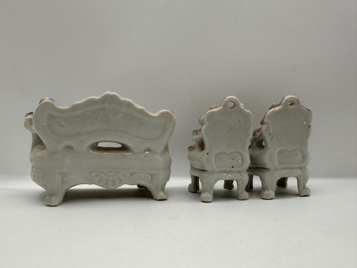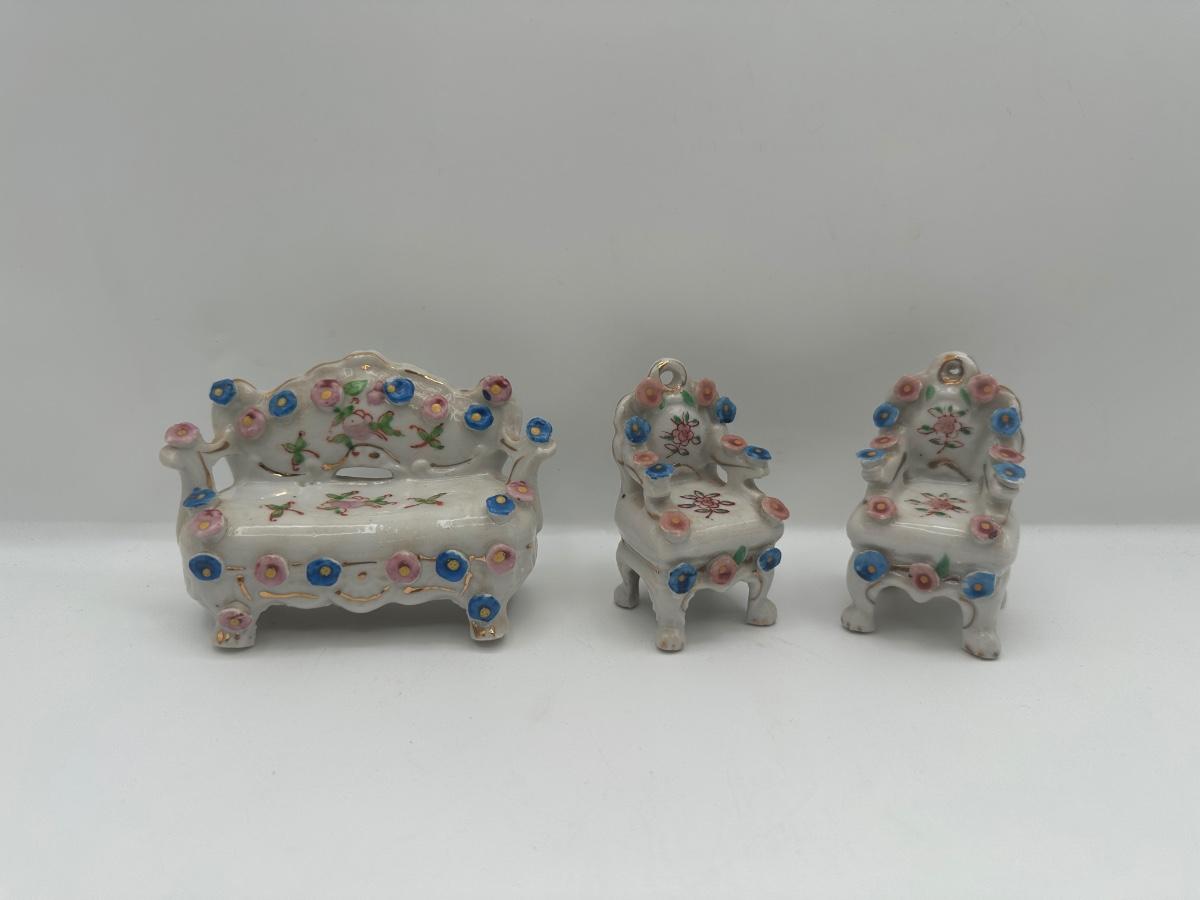 Vintage Porcelain Miniature Couch & Chairs - Occupied Japan Dollhouse Decor