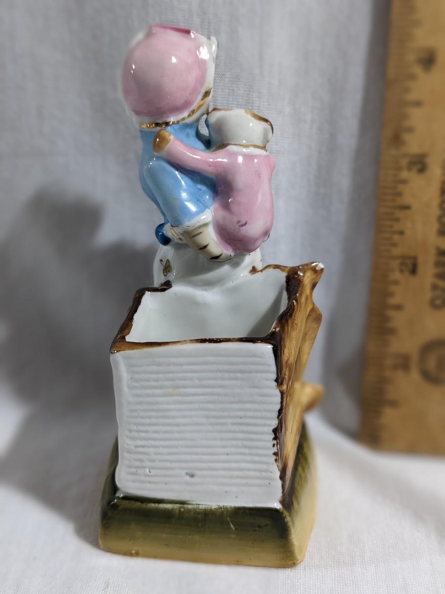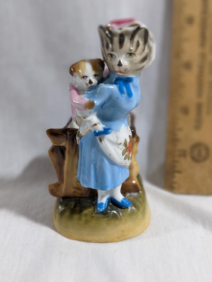 Vintage Porcelain Mother Cat and Kitten Match Holder and Striker