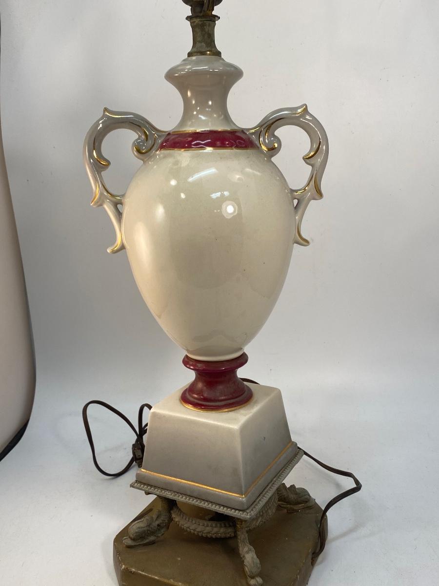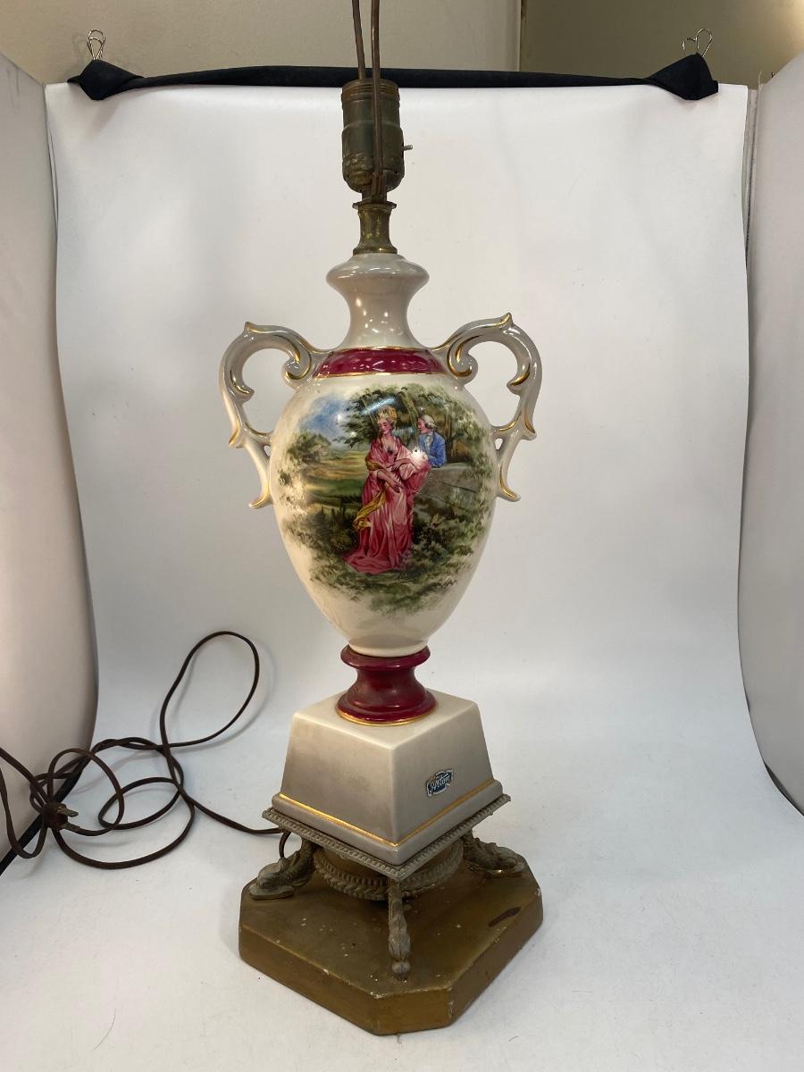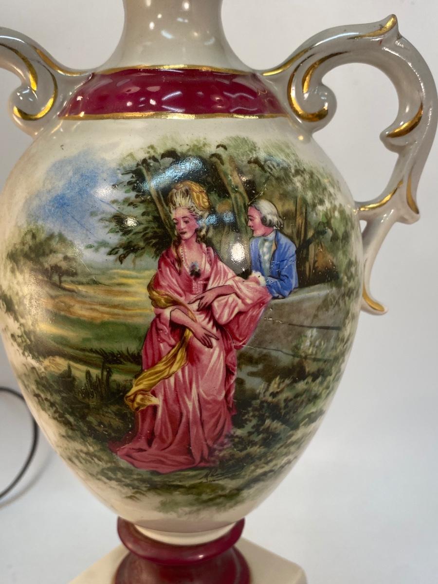 Vintage Porcelain Table Lamp Lovers Scene Double Handle Urn Style