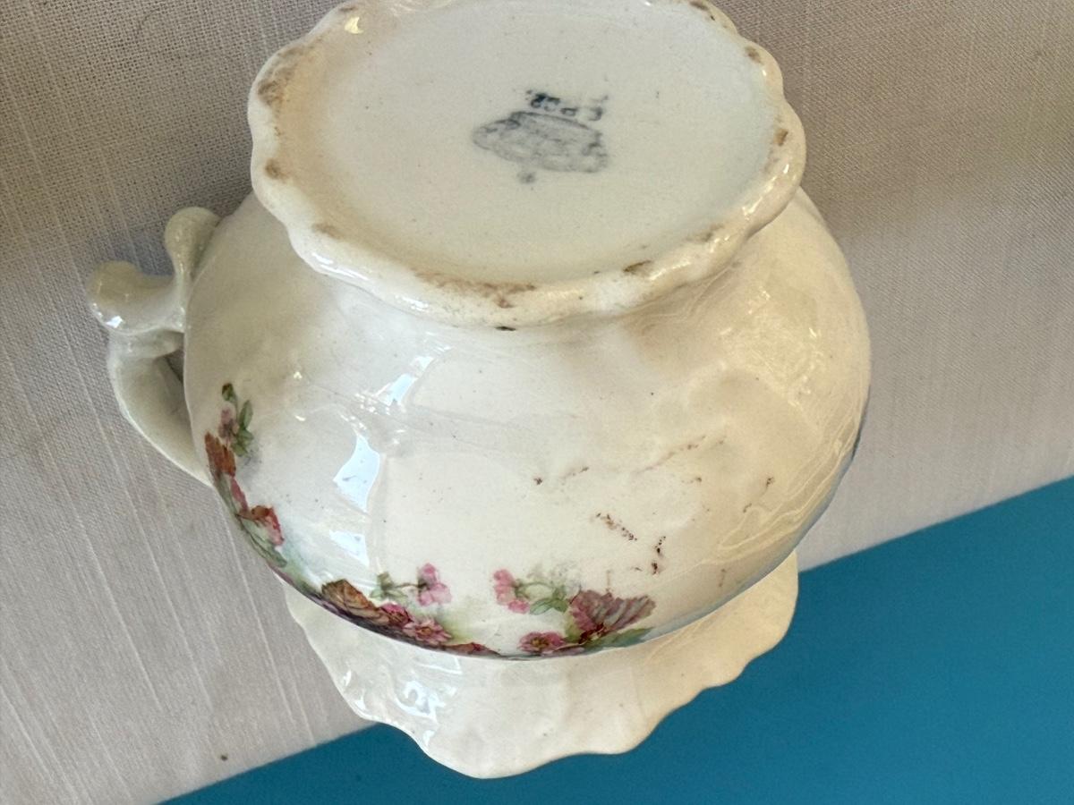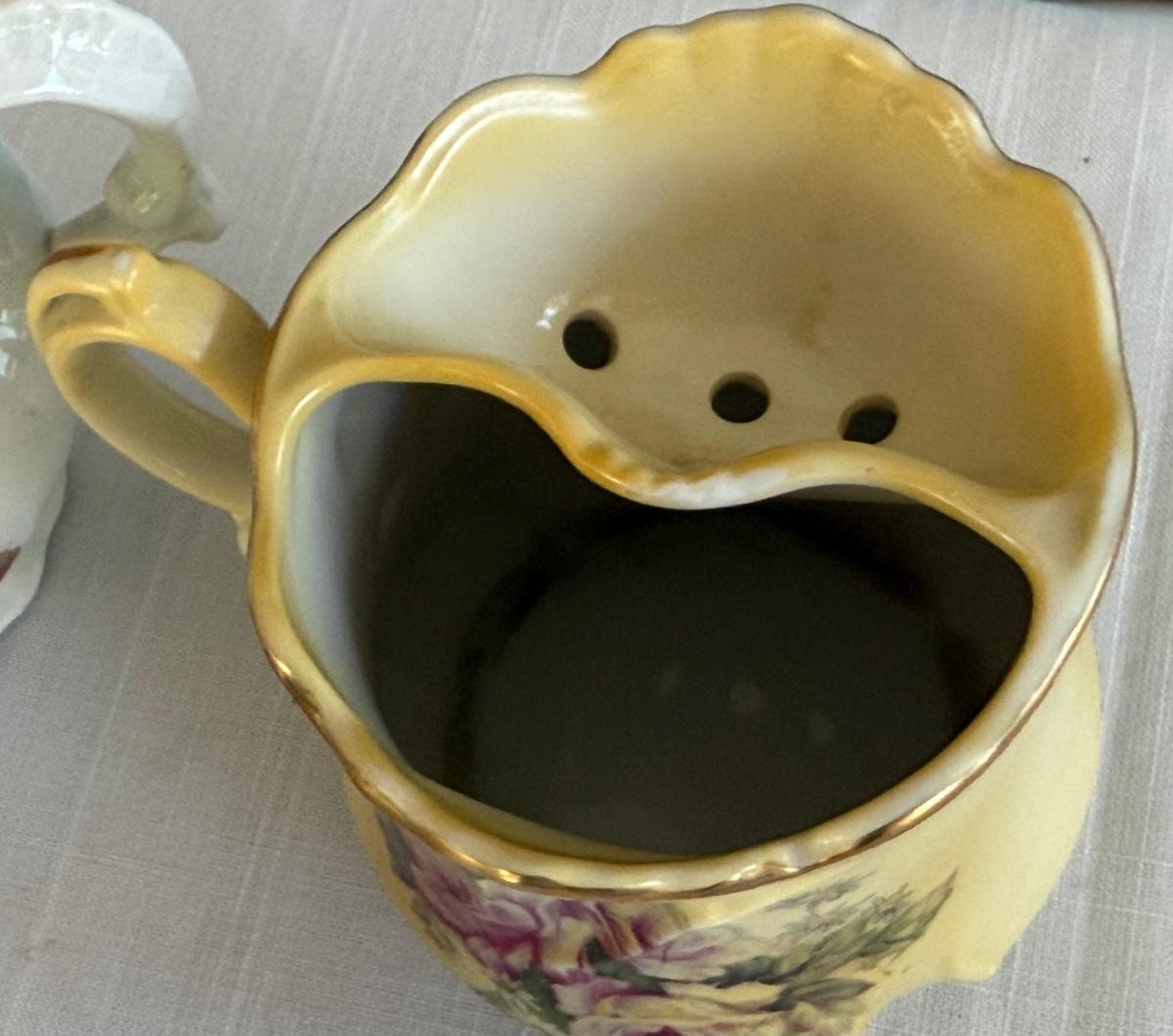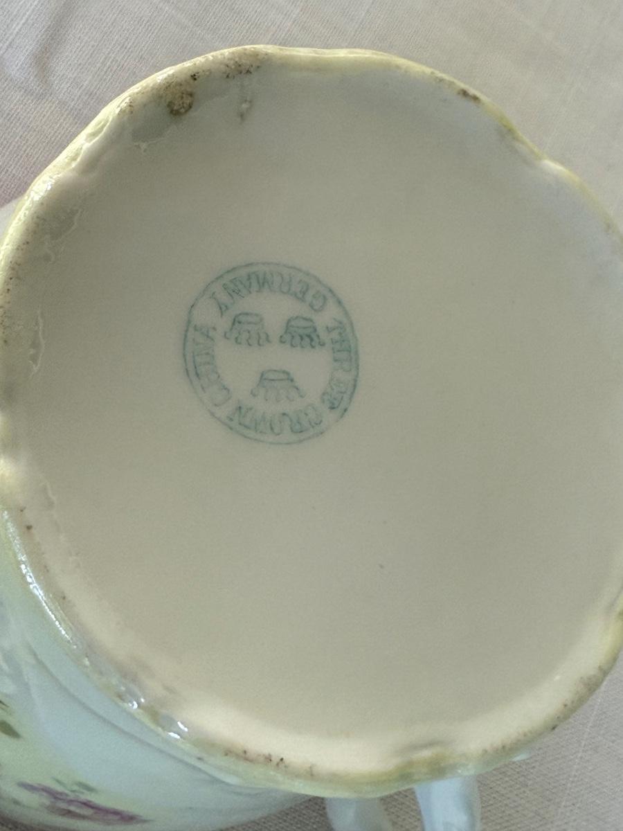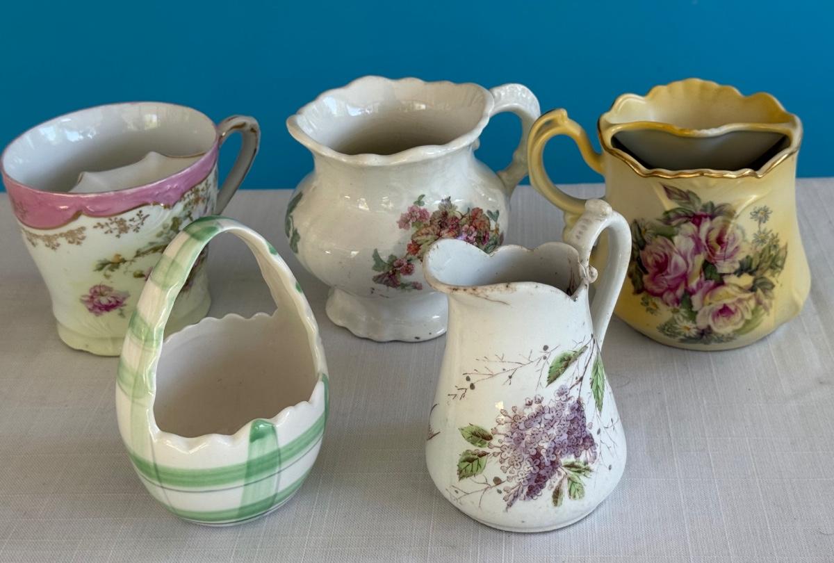 Vintage porcelain tea cup, shaving mug, sugar/creamer containers