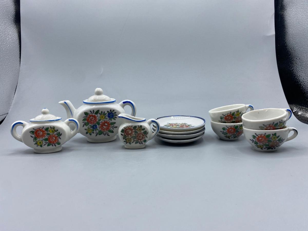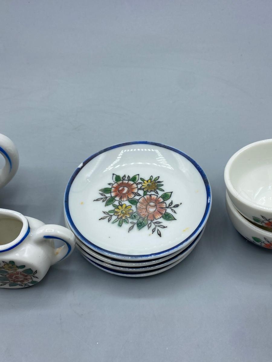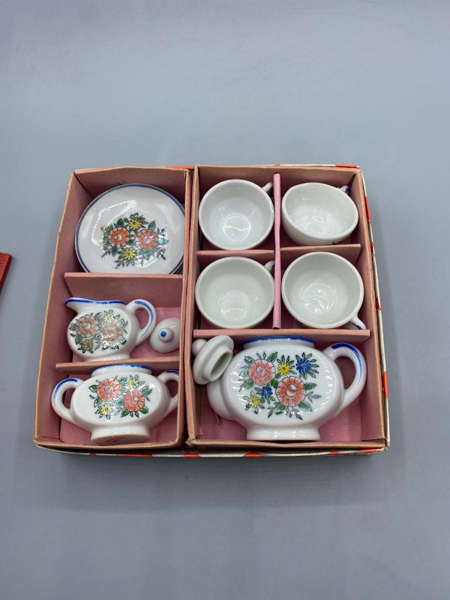 Vintage Porcelain Toy Tea Set Floral Pattern with Box Japan