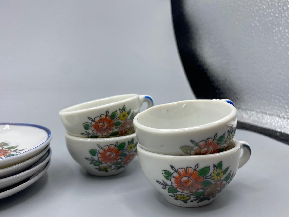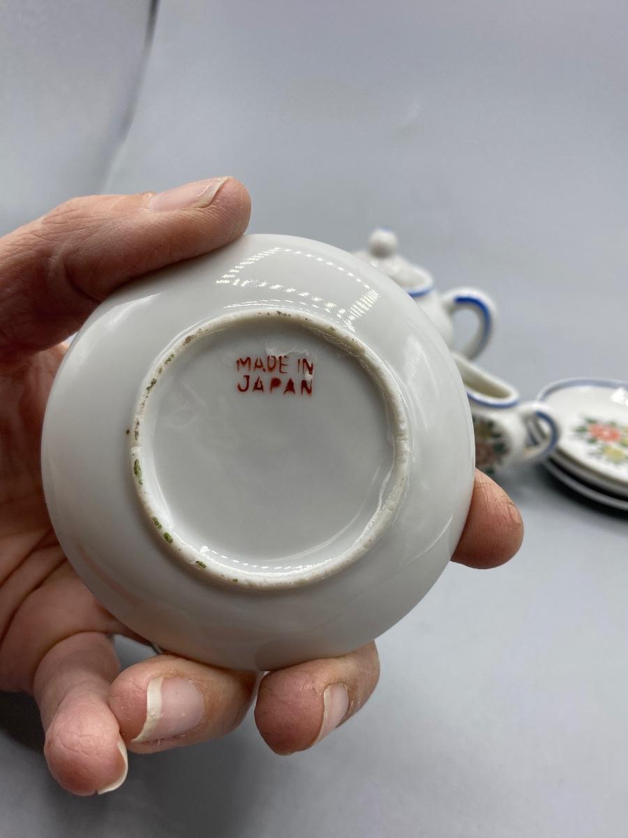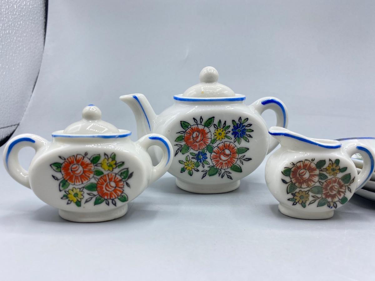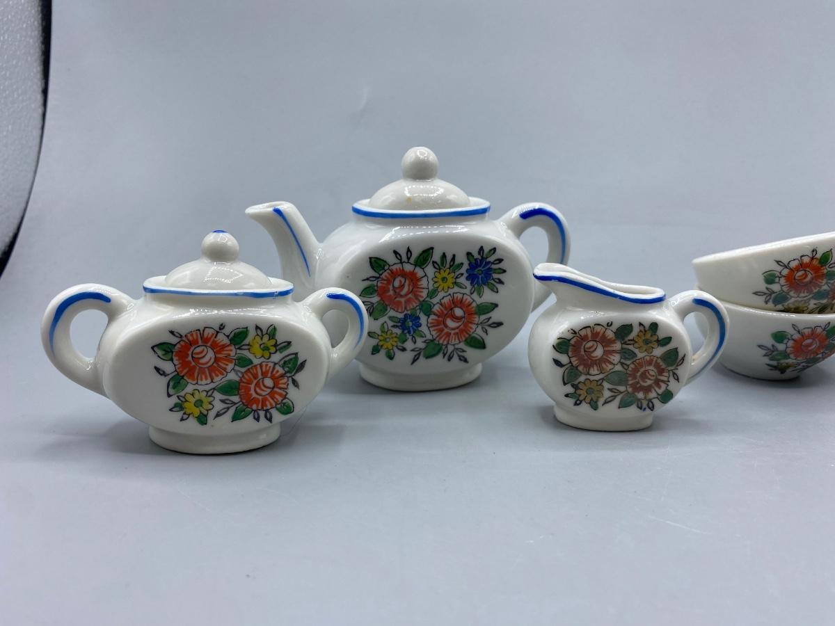 Vintage Porcelain Toy Tea Set Floral Pattern with Box Japan