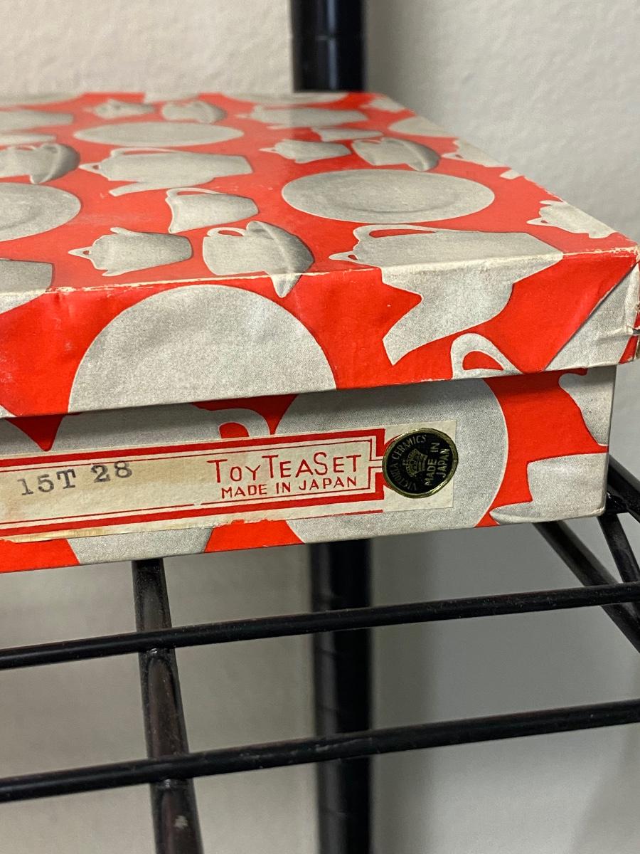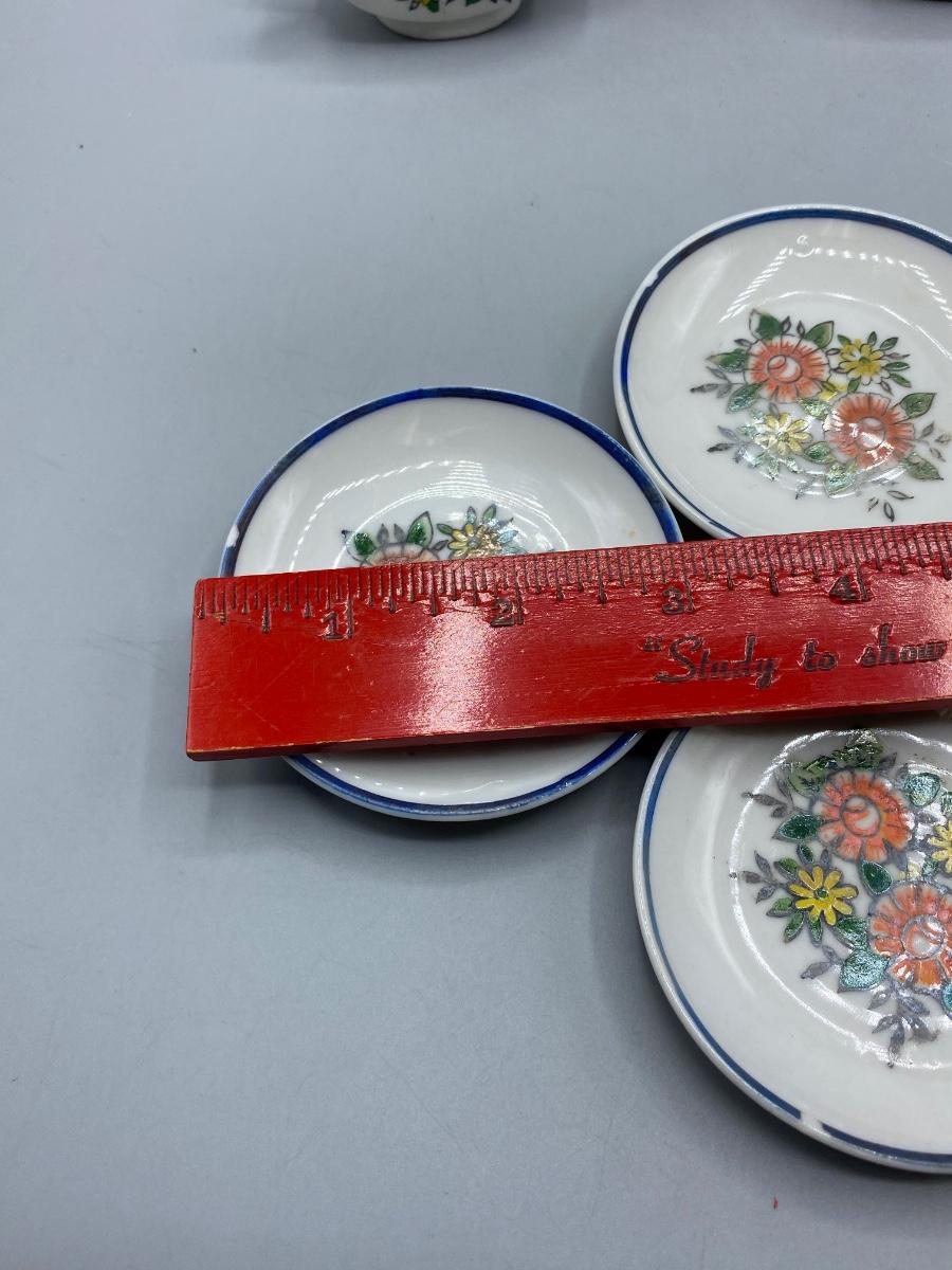 Vintage Porcelain Toy Tea Set Floral Pattern with Box Japan. In good vintage condition. Some light wear from age but no chipped pieces noticed. Colorful flower pattern. Original box has wear.