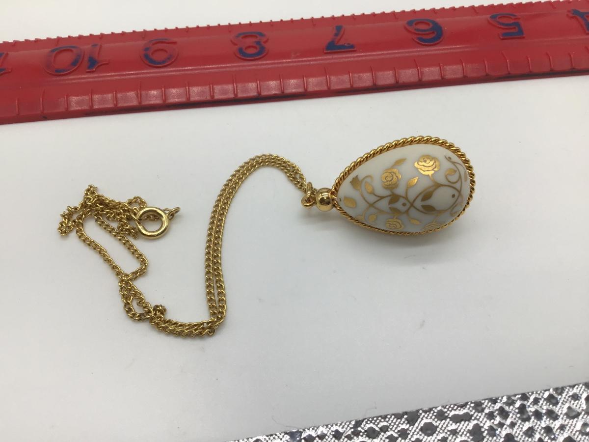 Vintage Porcelain W/Gold Trim Pendant Necklace. Marked DTD 78