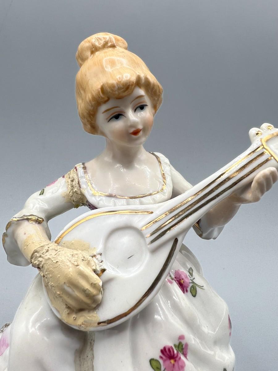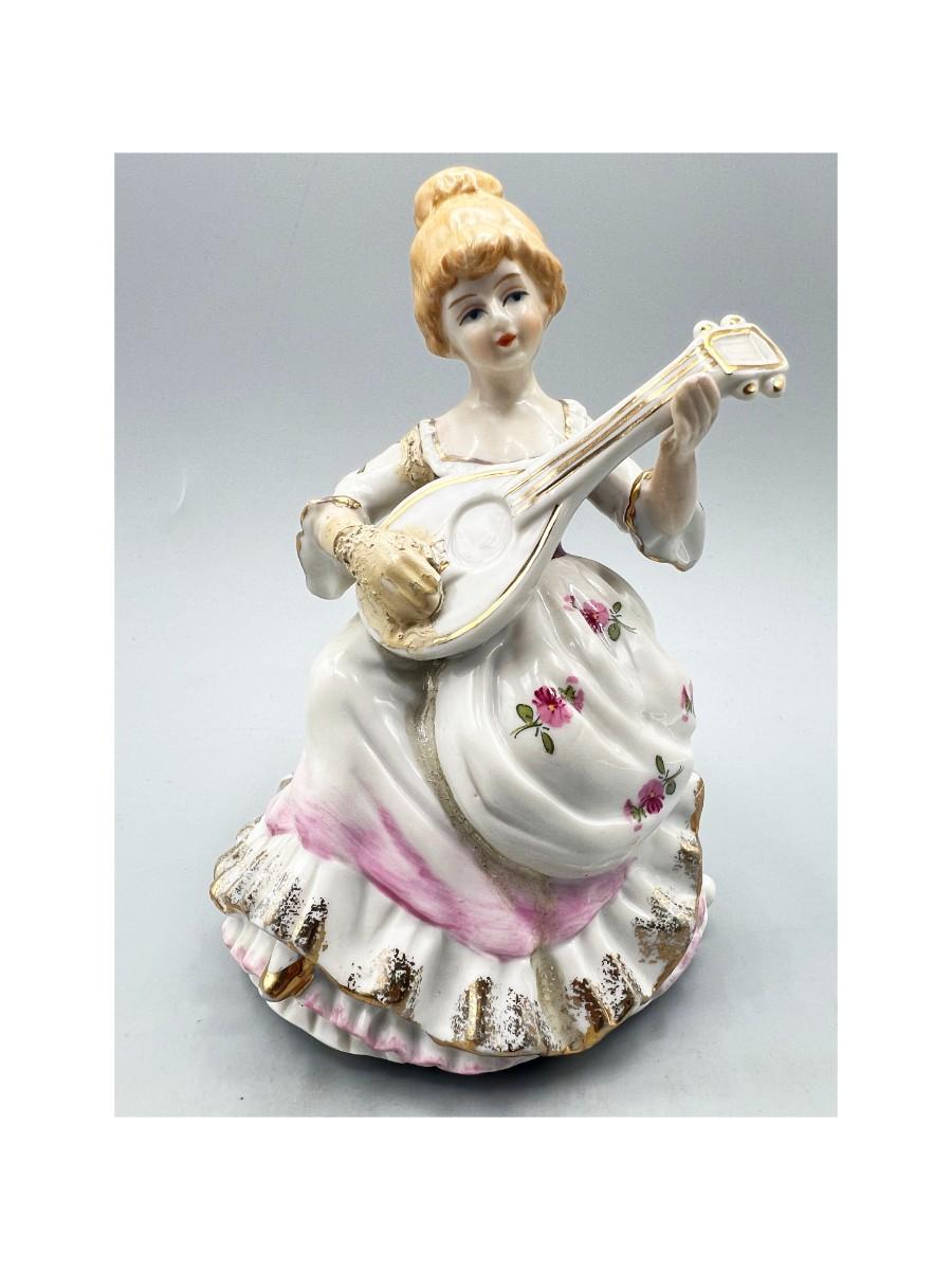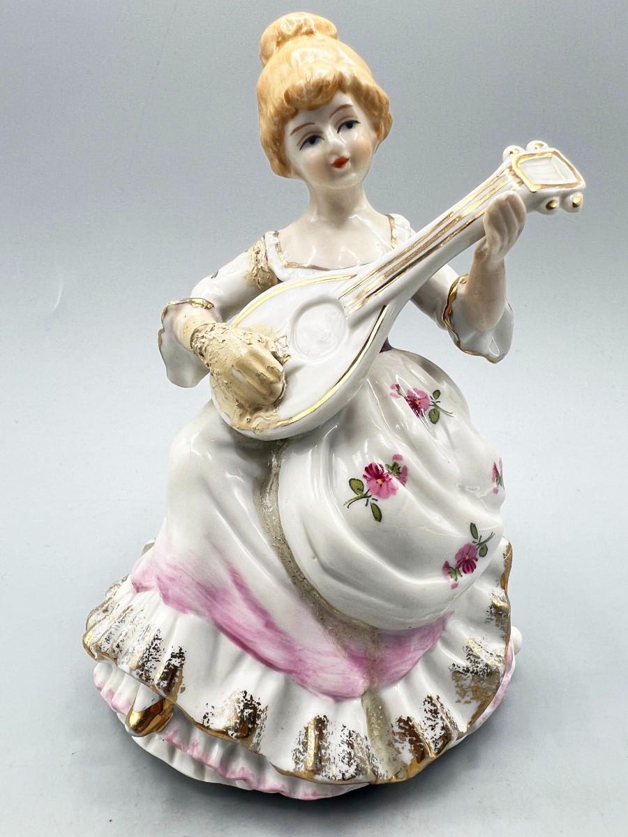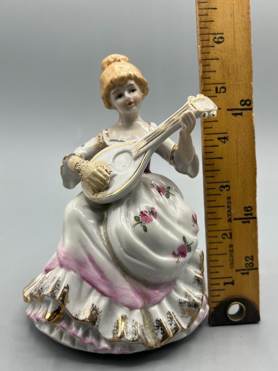 Vintage Porcelain Woman Playing Mandolin Japan Music Box Figurine