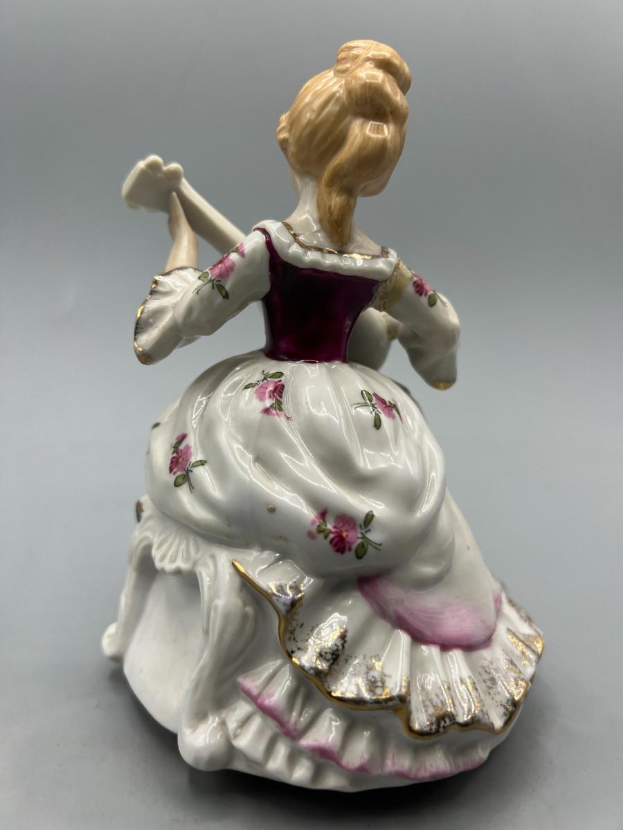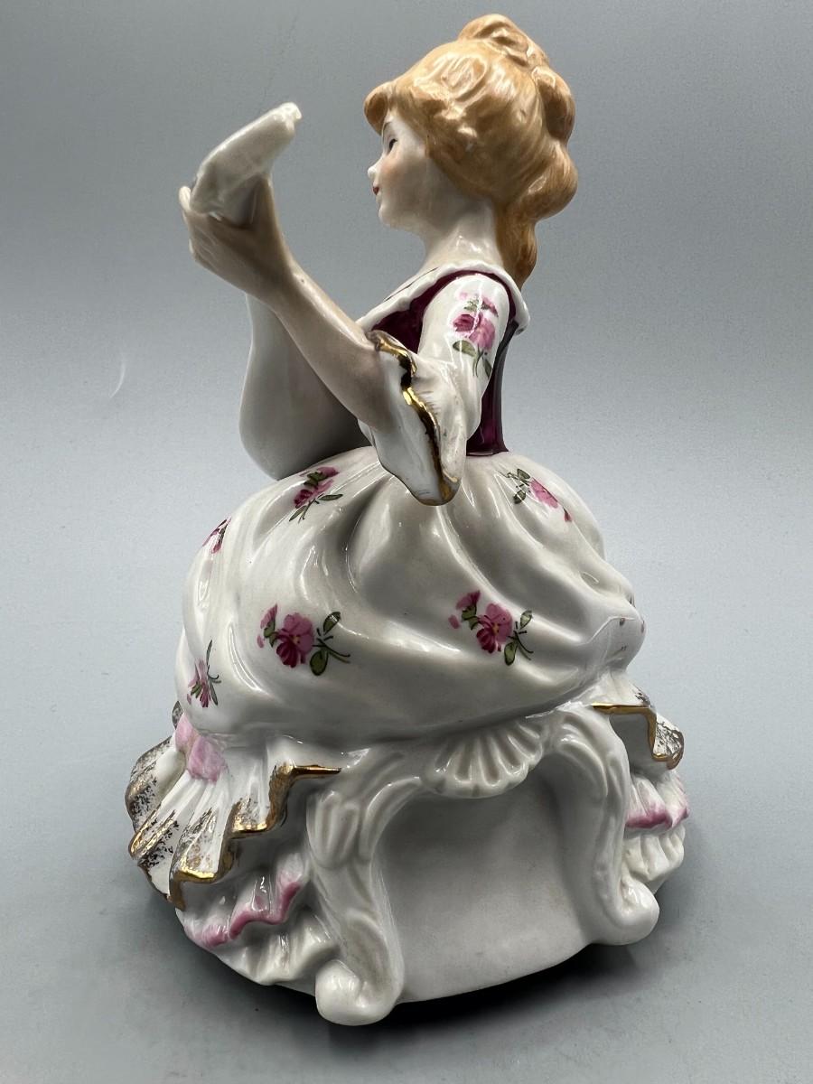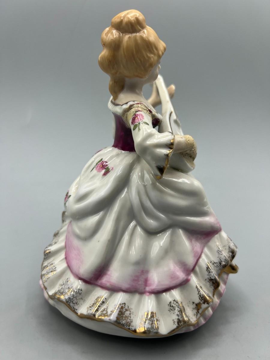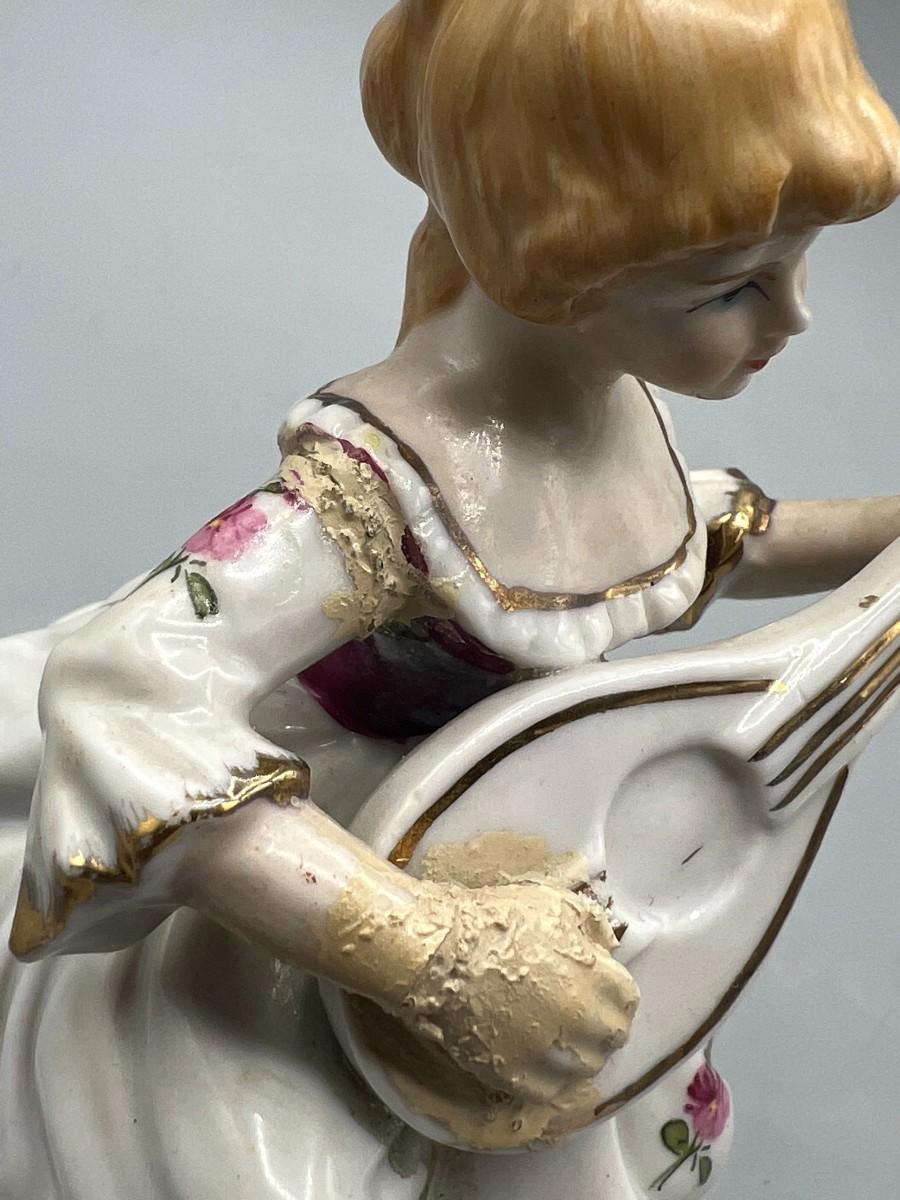 Vintage Porcelain Woman Playing Mandolin Japan Music Box Figurine