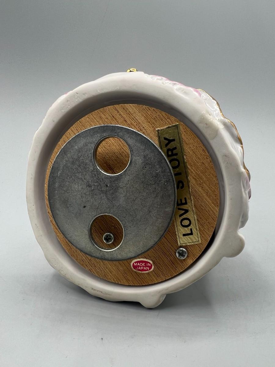 It looks like there is a repair on the right arm of the figurine, but there is no other significant damage and is in overall fair vintage condition. The music box works perfectly and spins around, check pictures for more details and for sizing.