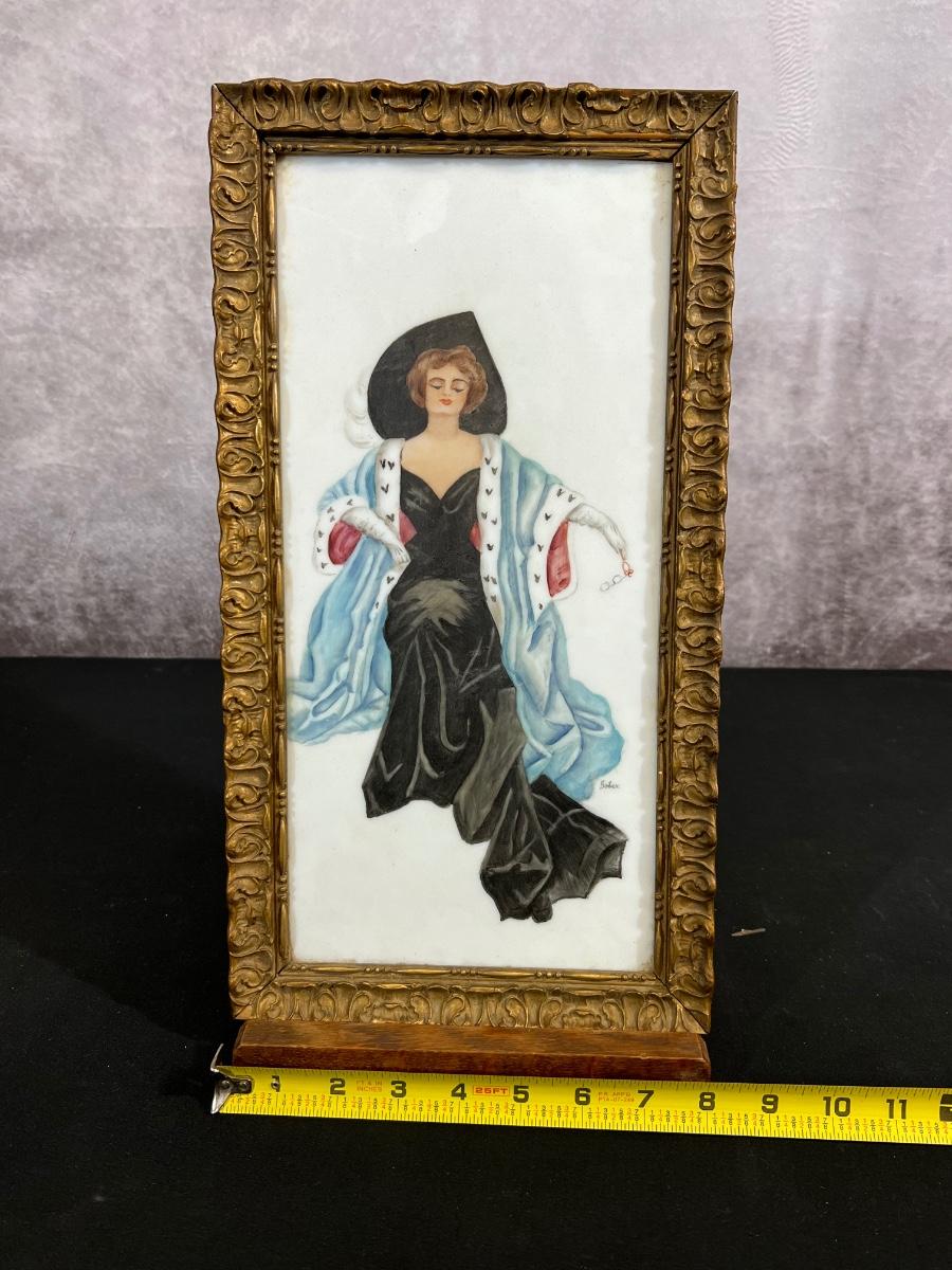 Vintage Porcelian Framed Art signed Bobek